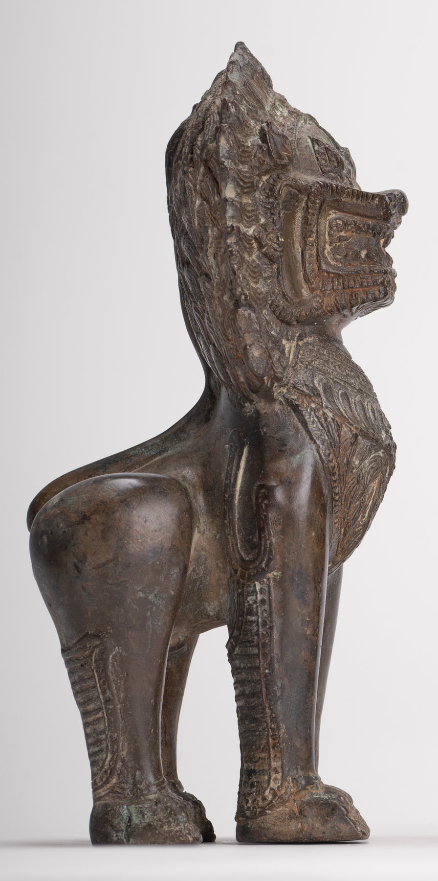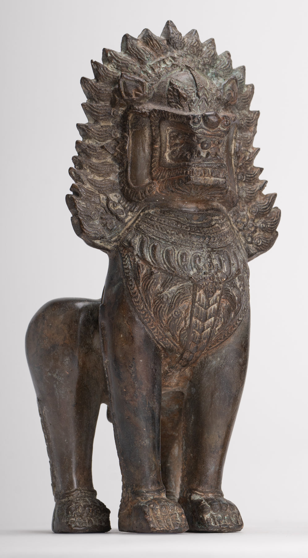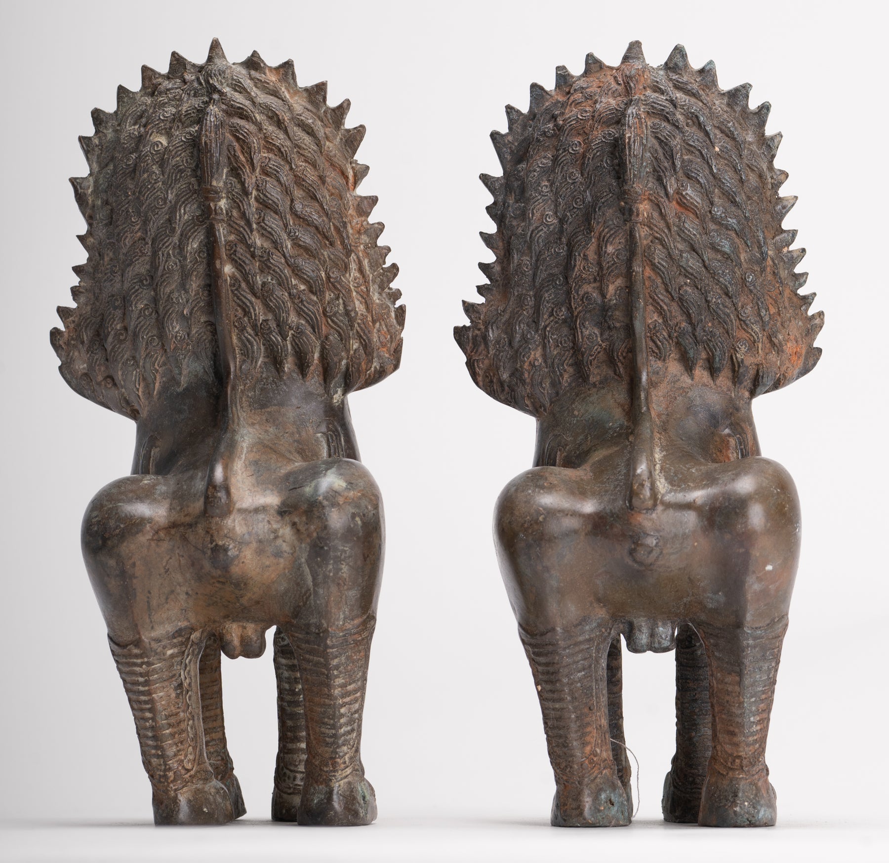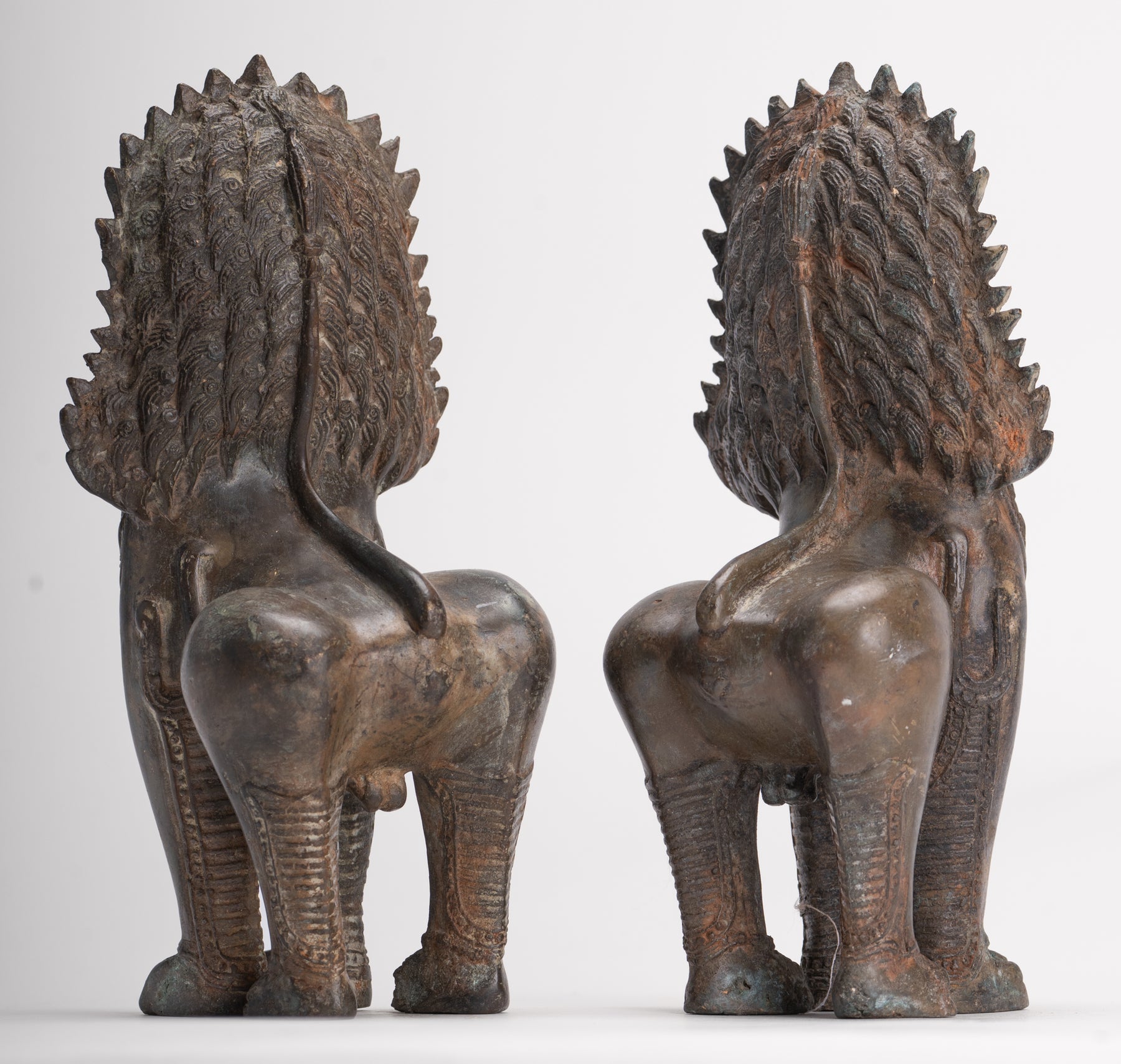 León del Templo - Leones o Guardianes del Templo Singha de Pie de Bronce Antiguo de Estilo Tailandés - 19 cm/8" (Par)