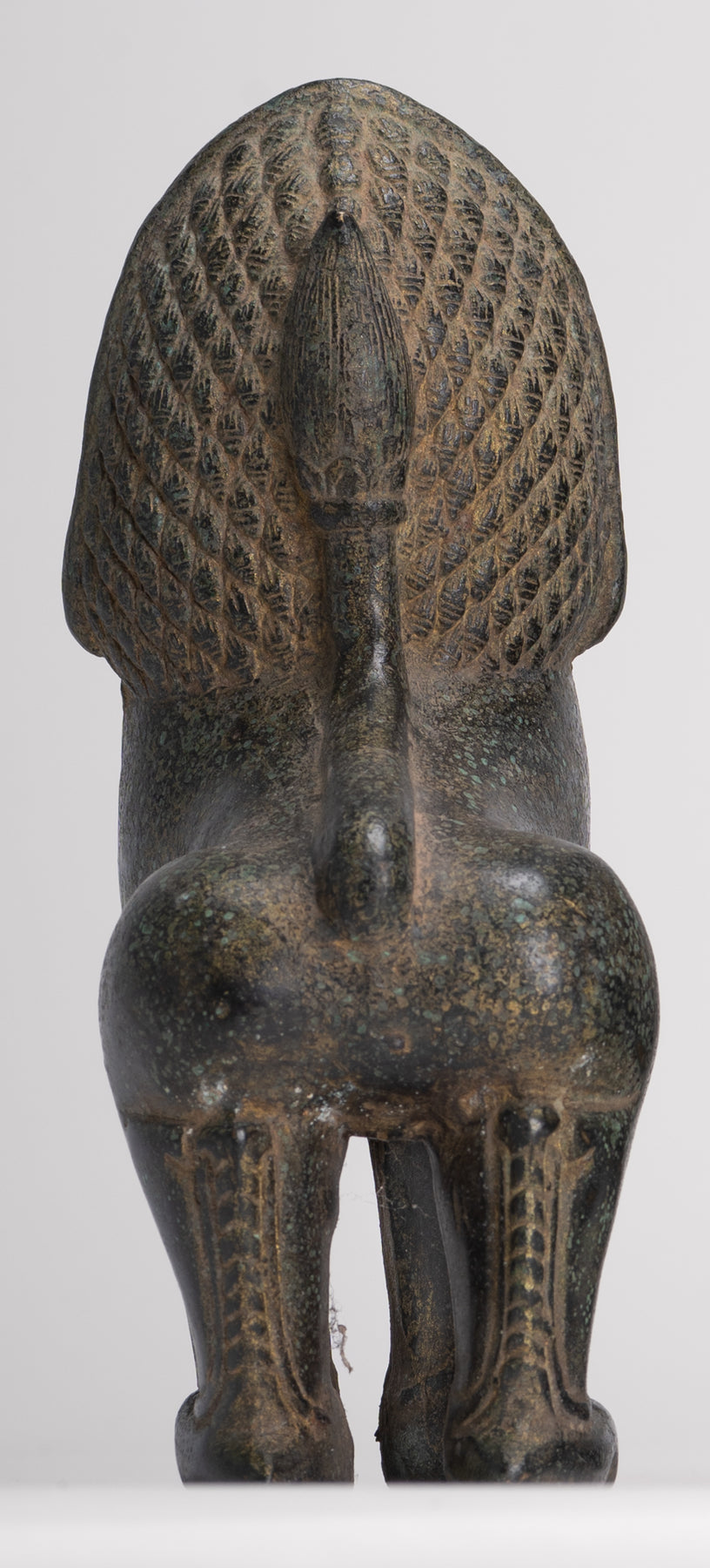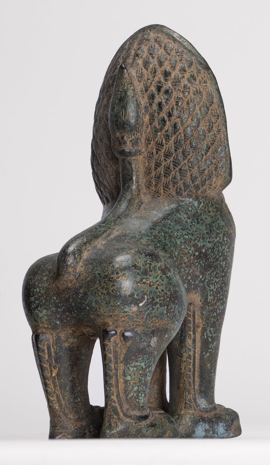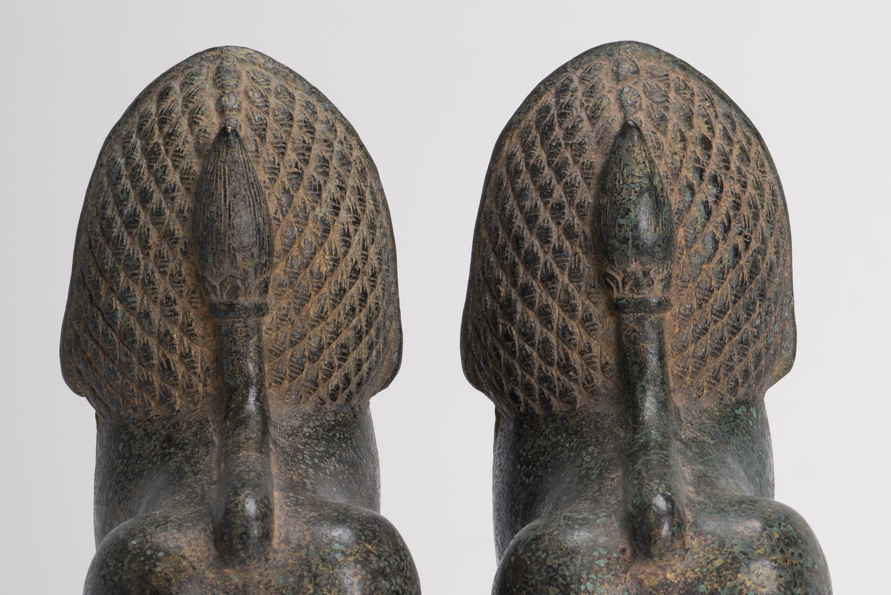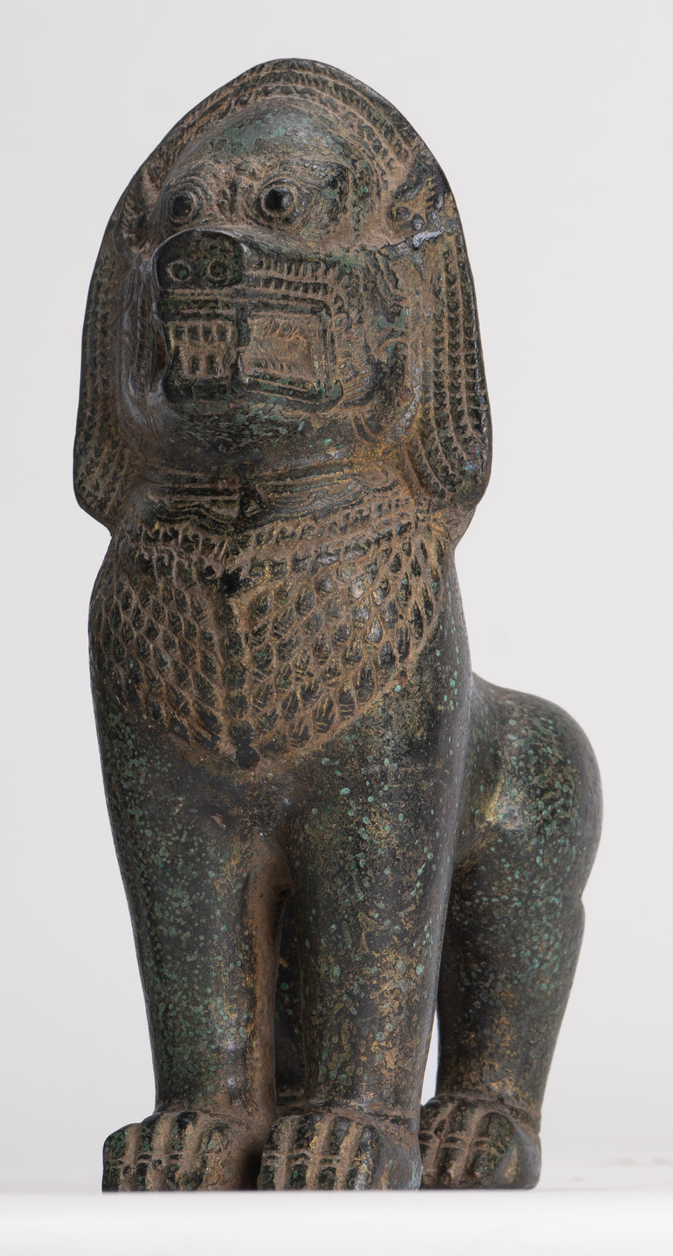 Guardián o leones del templo de pie de bronce estilo jemer antiguo (par) - 20 cm/8"