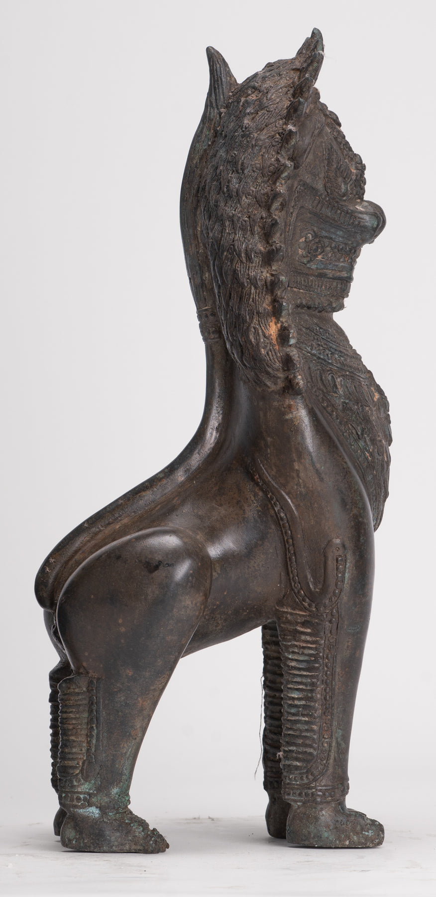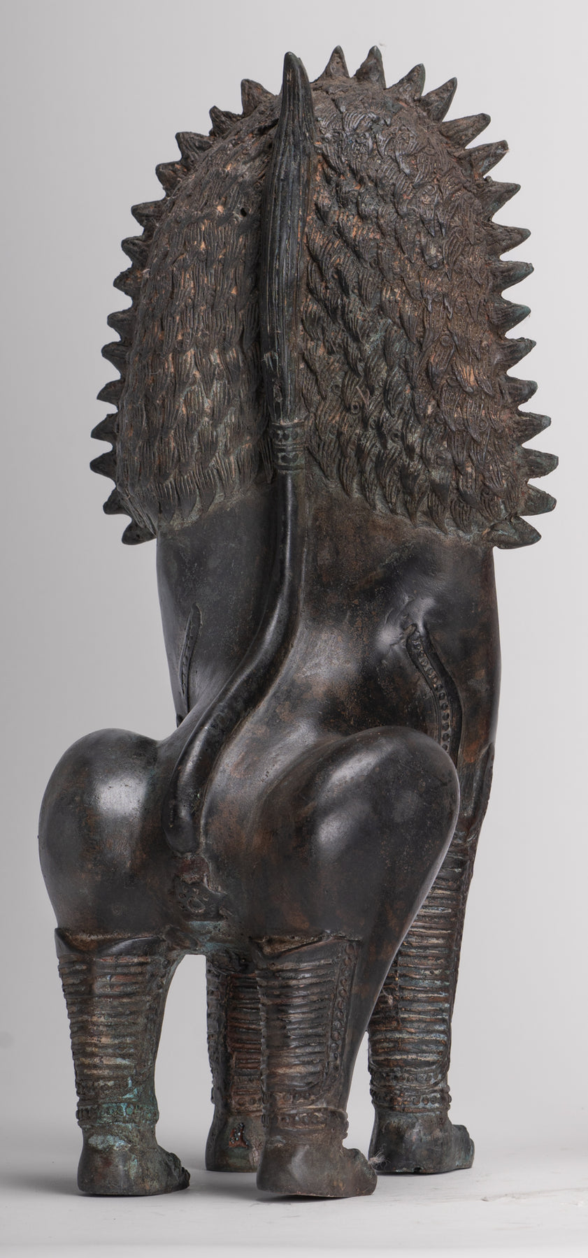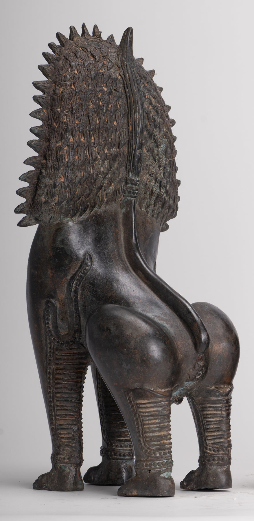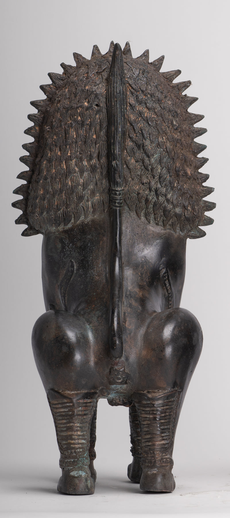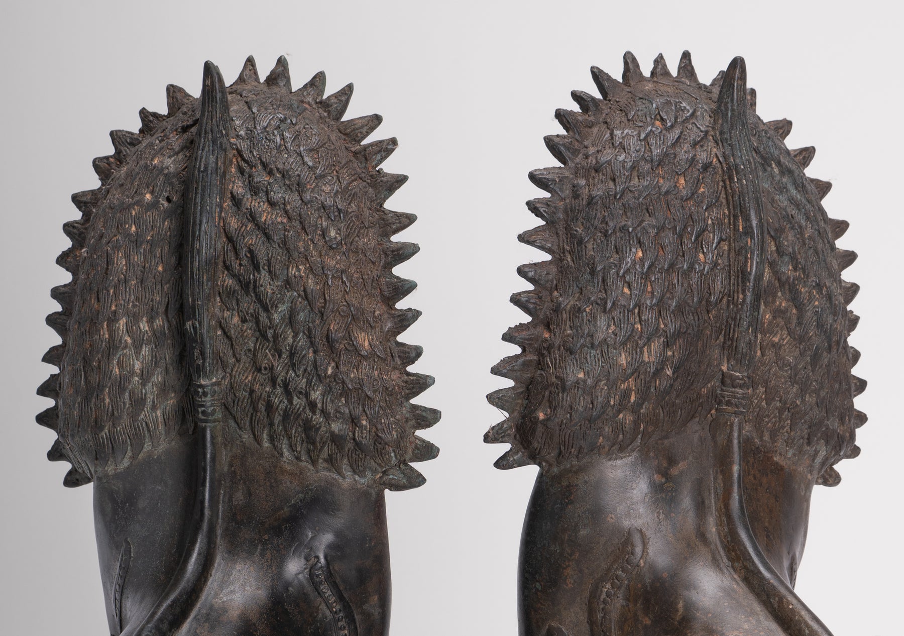 León del templo - Leones o guardianes del templo Singha de pie de bronce estilo tailandés antiguo - 41 cm/16" (par)