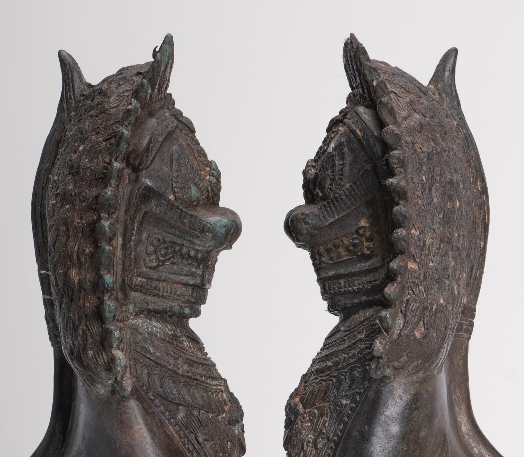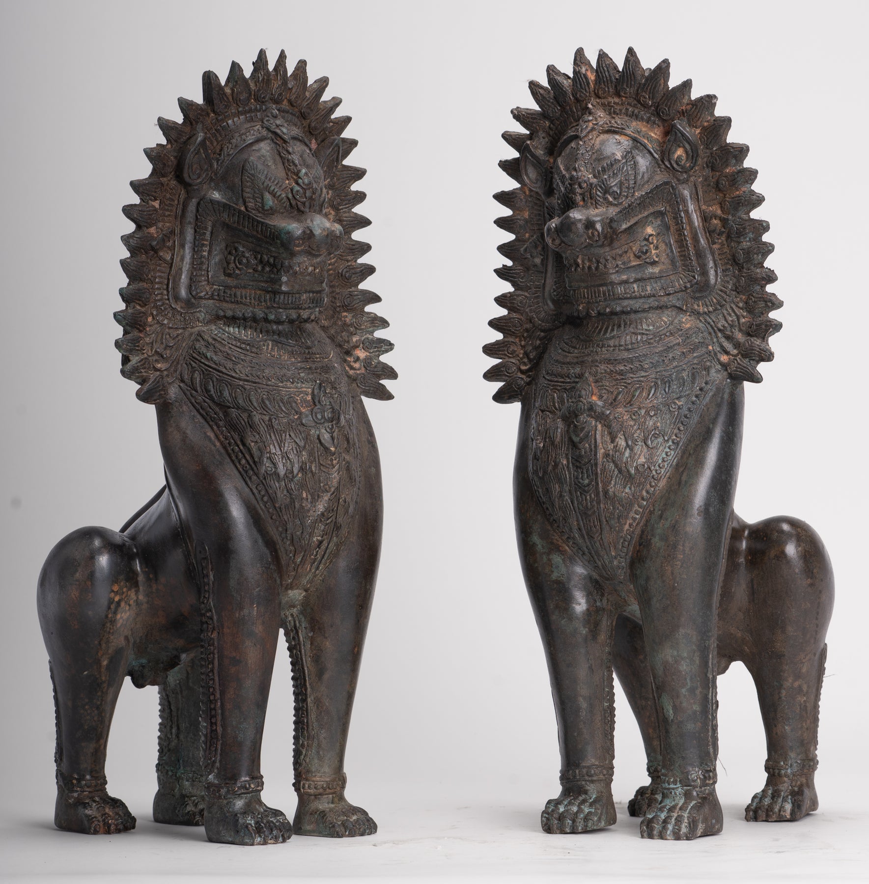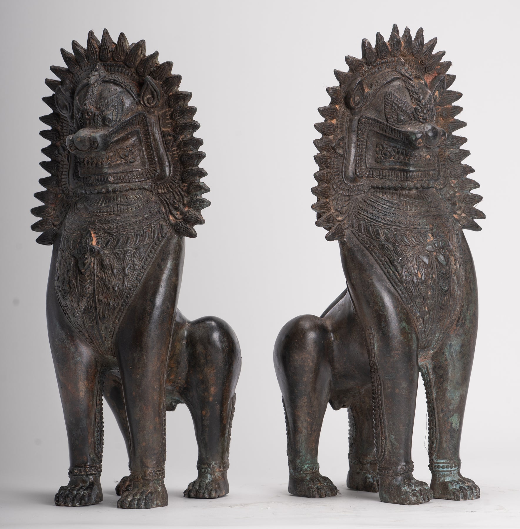 Un precioso par de figuras antiguas de estilo tailandés de Temple Guardian o León/Singha.