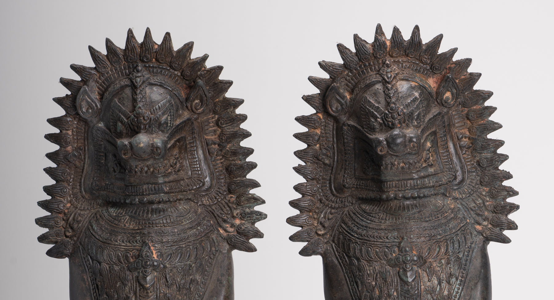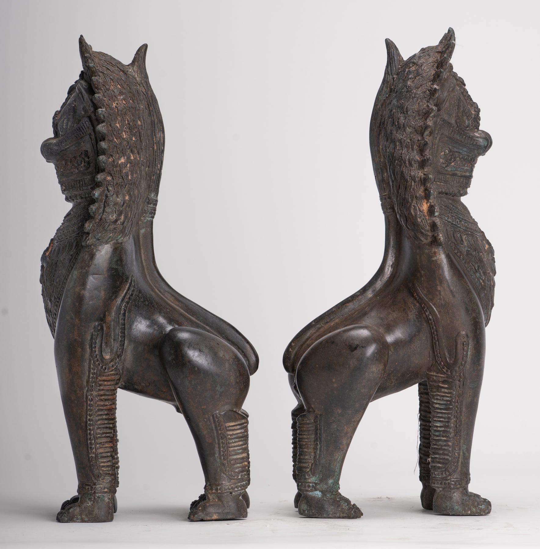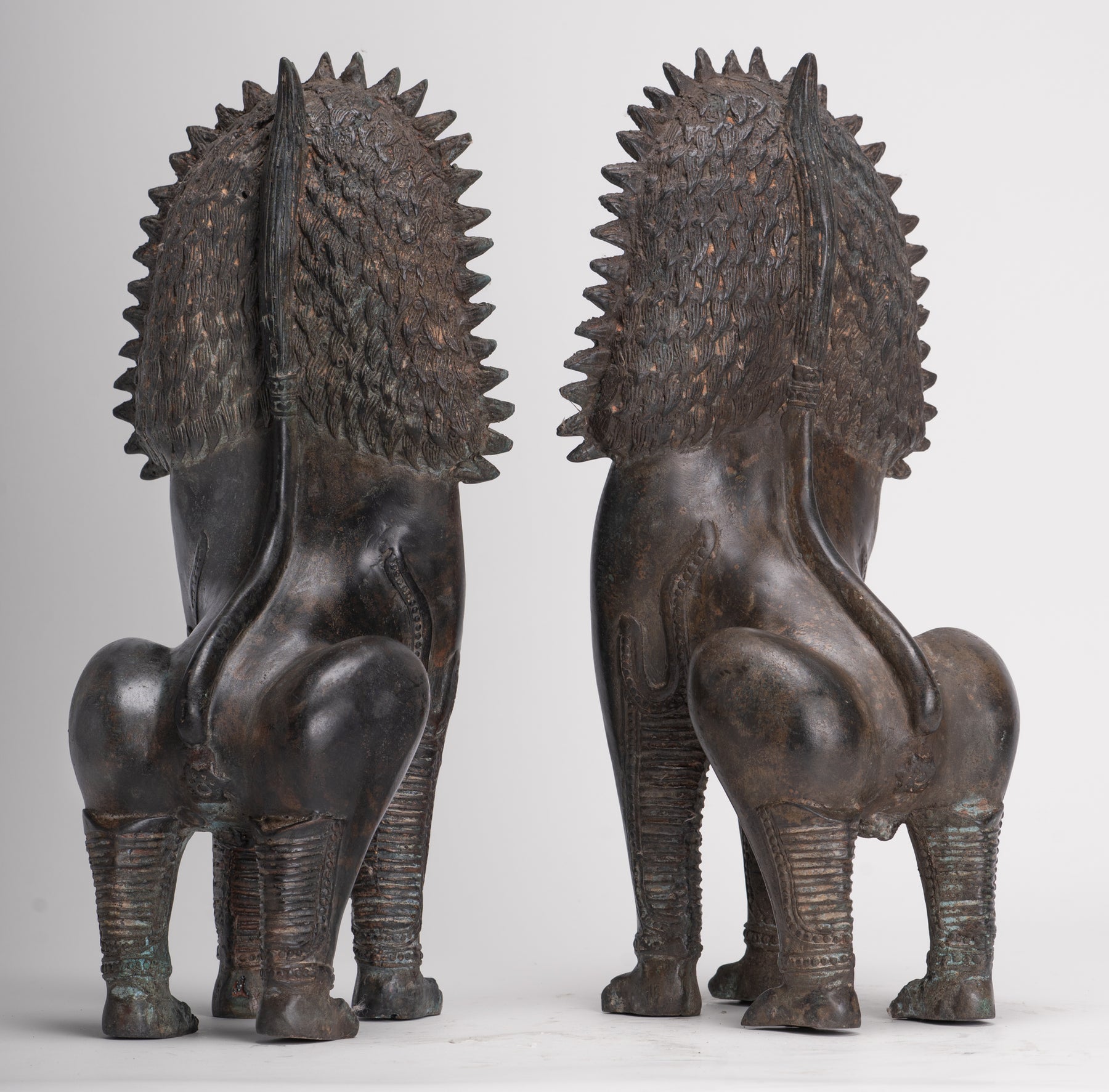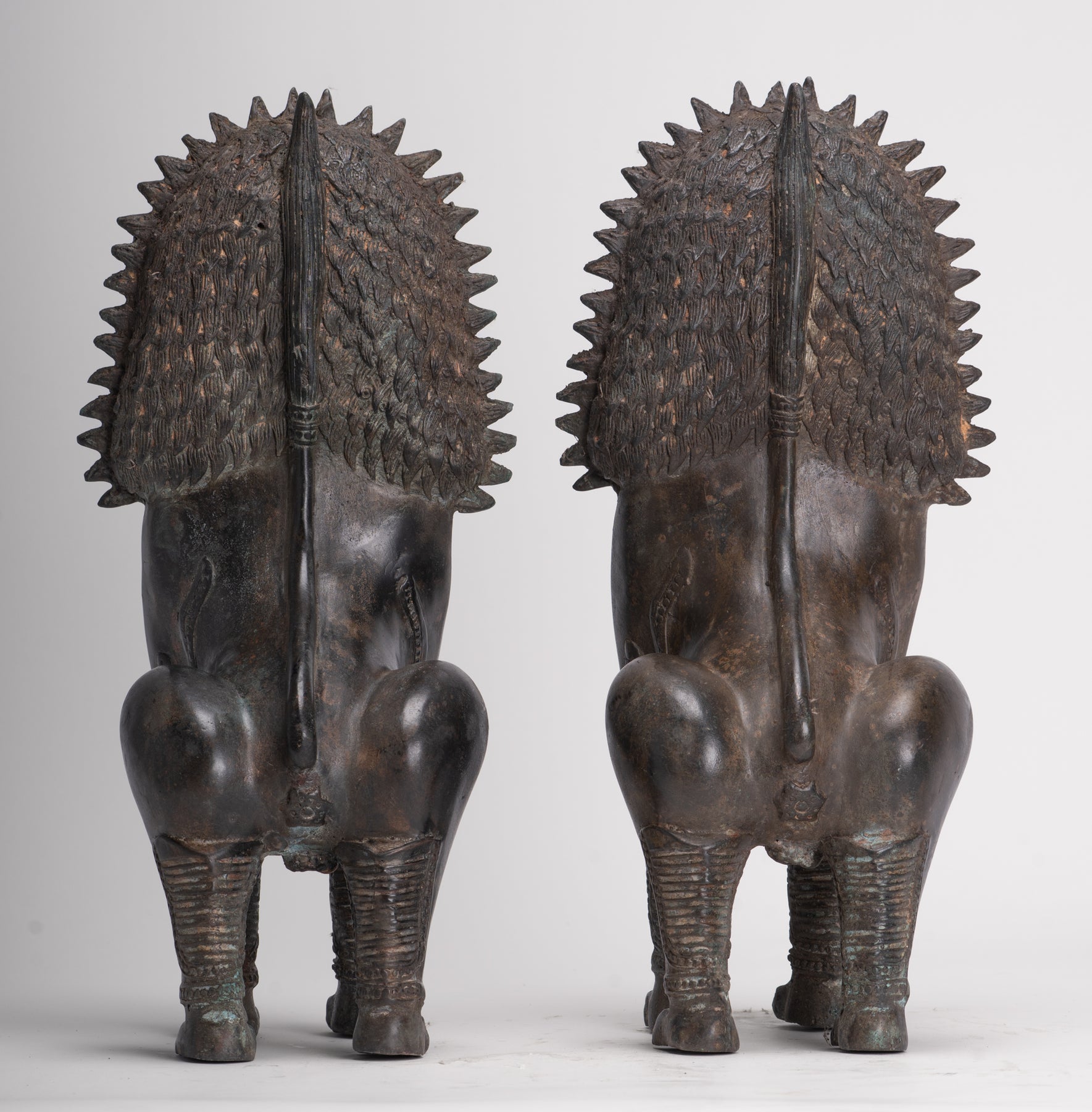 Un precioso par de figuras antiguas de estilo tailandés de Temple Guardian o León/Singha.