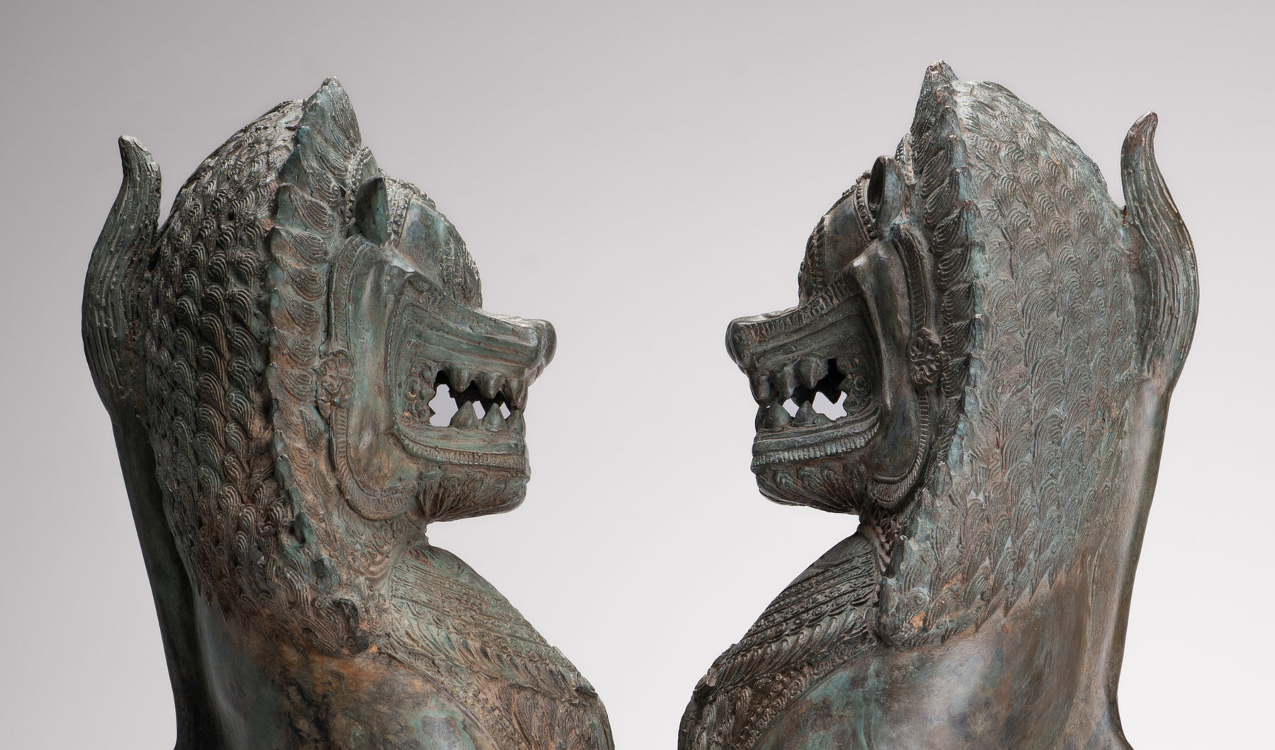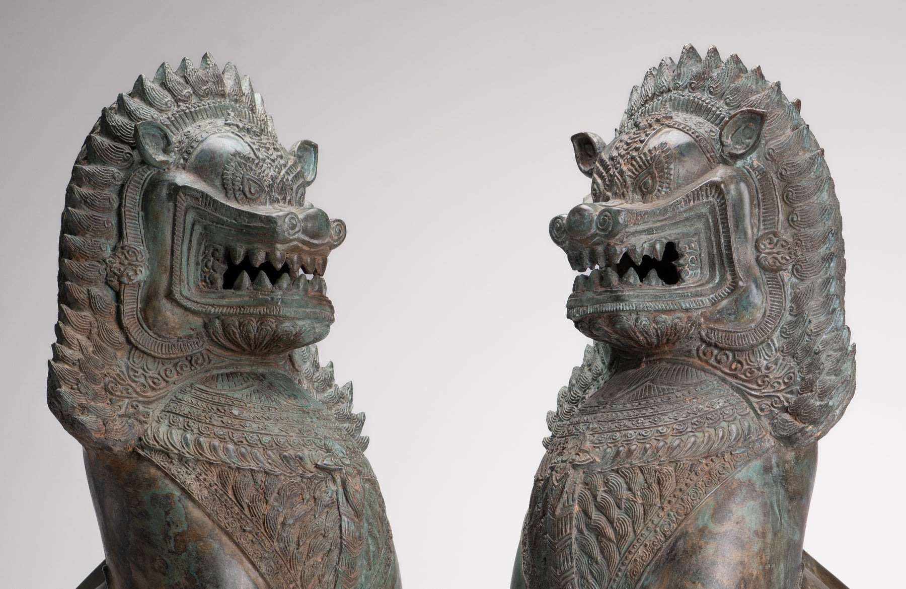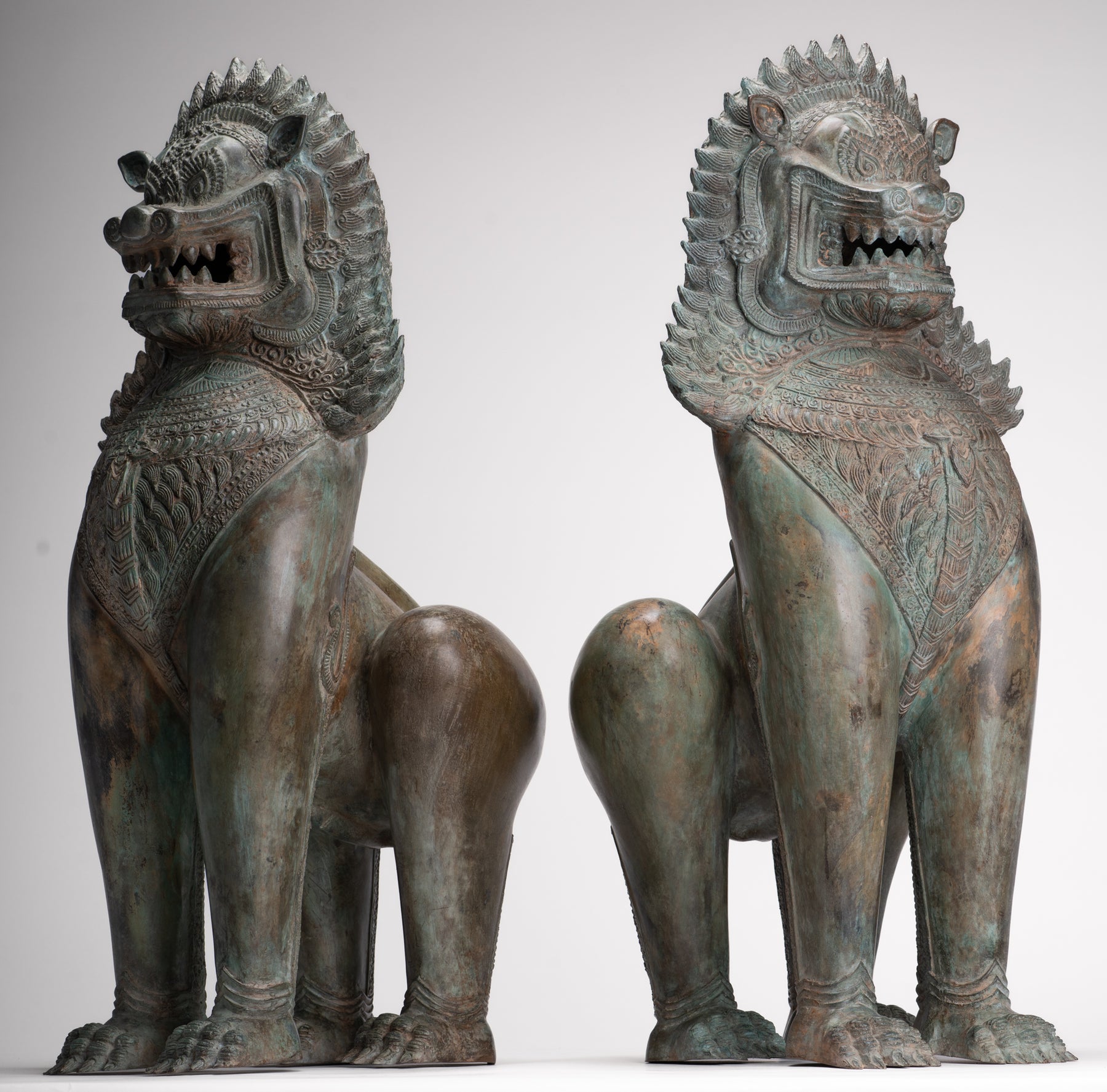 Un imponente par de figuras de tutor de templo o de estilo antiguo de Temple o Lion/Singha.