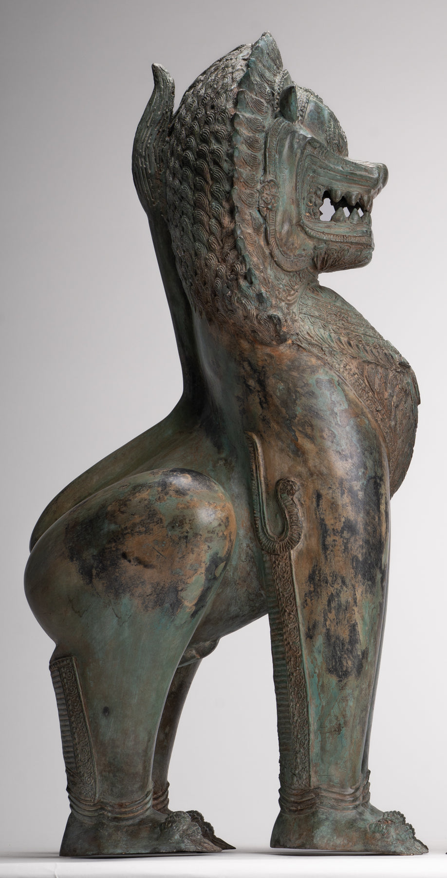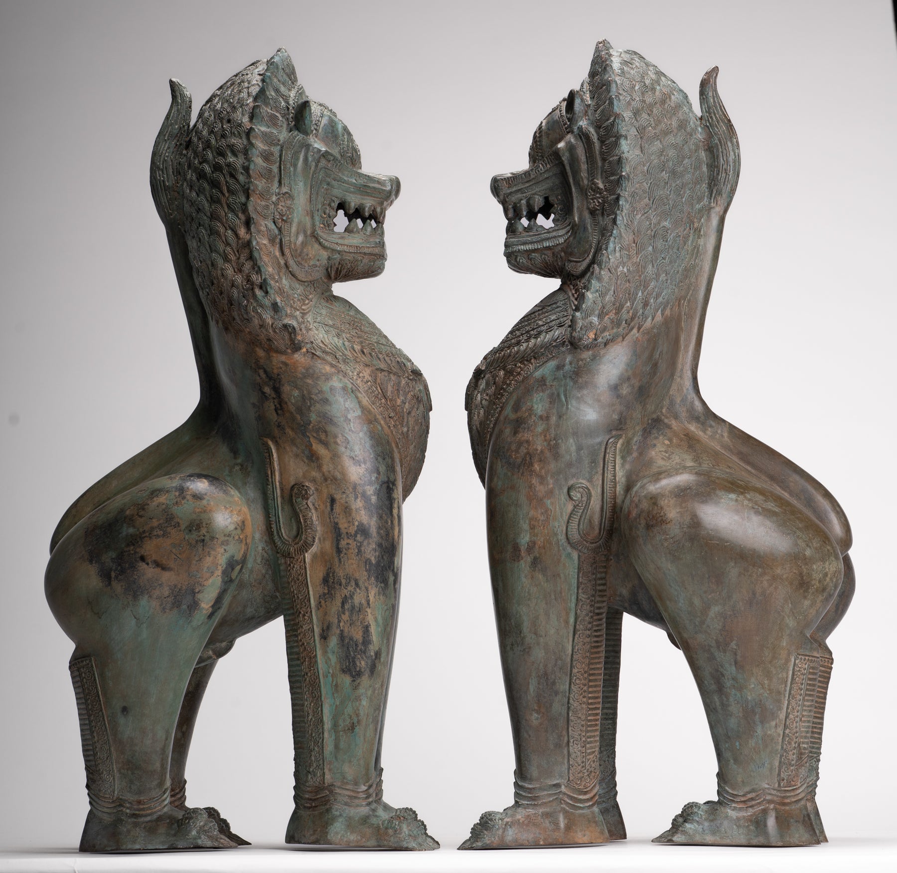 Templo Lion - Antique Thai Style Bronze Standing Singha Temple Guardianes o Lions - 61 cm/24 "(par)