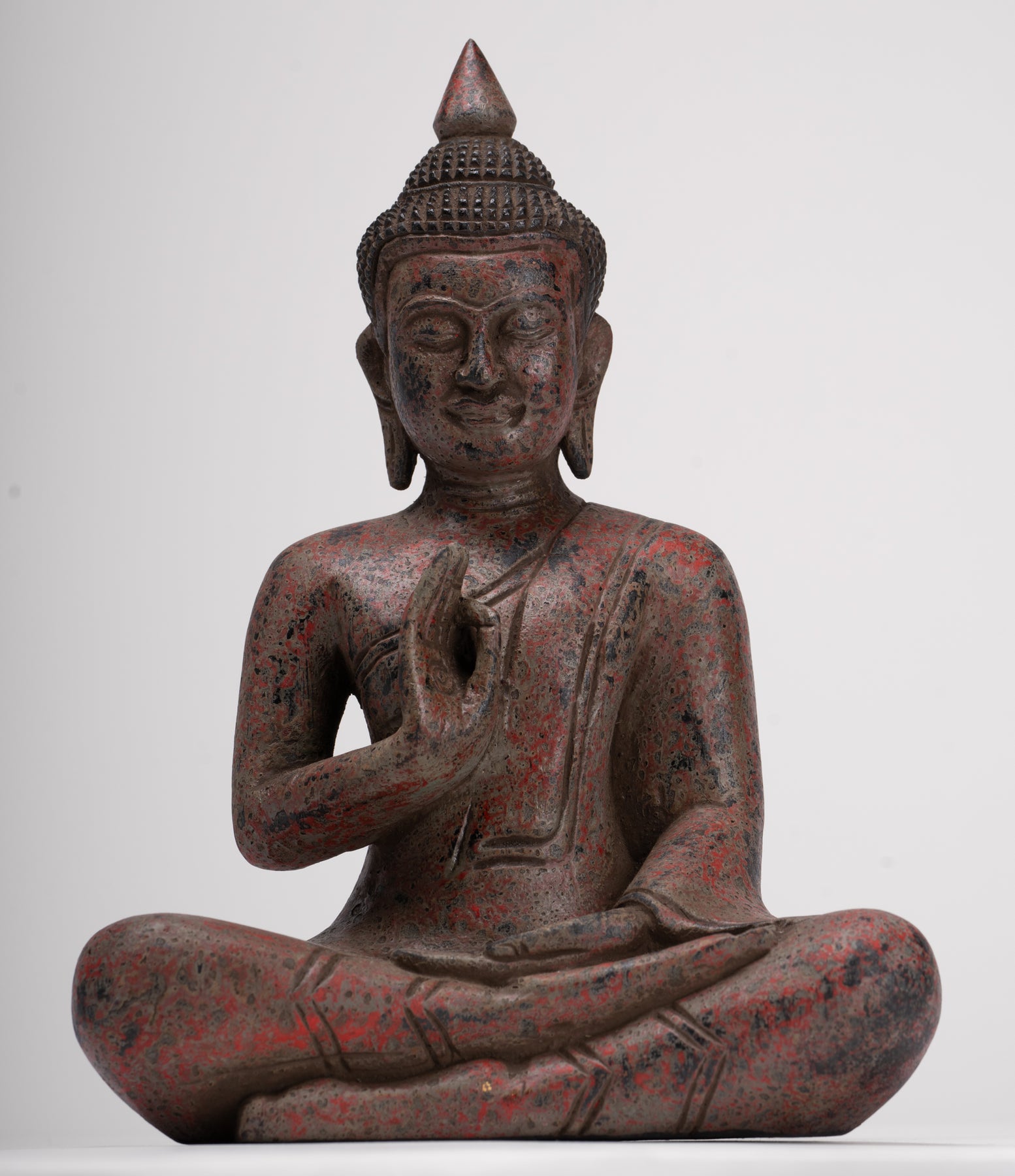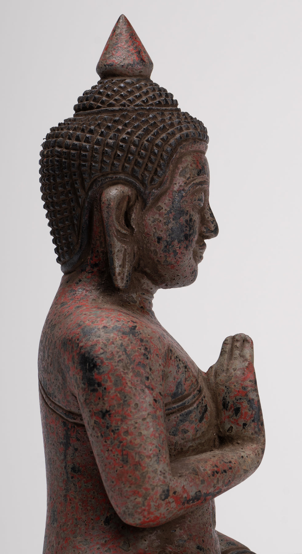 Estatua de Buda - Estatua de Buda de Madera Antigua de Camboya Camboya enseñando Mudra - 27 cm/11 "