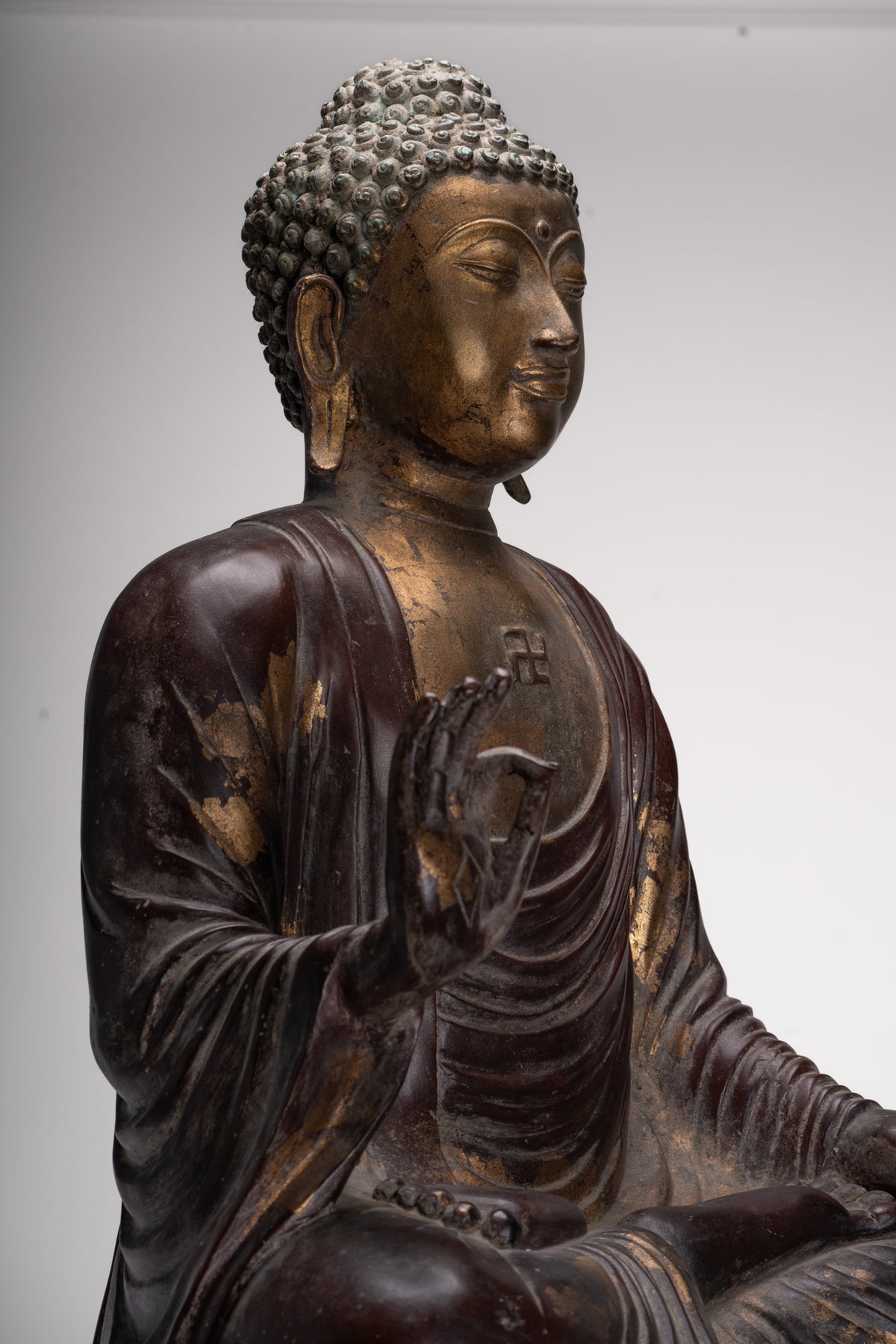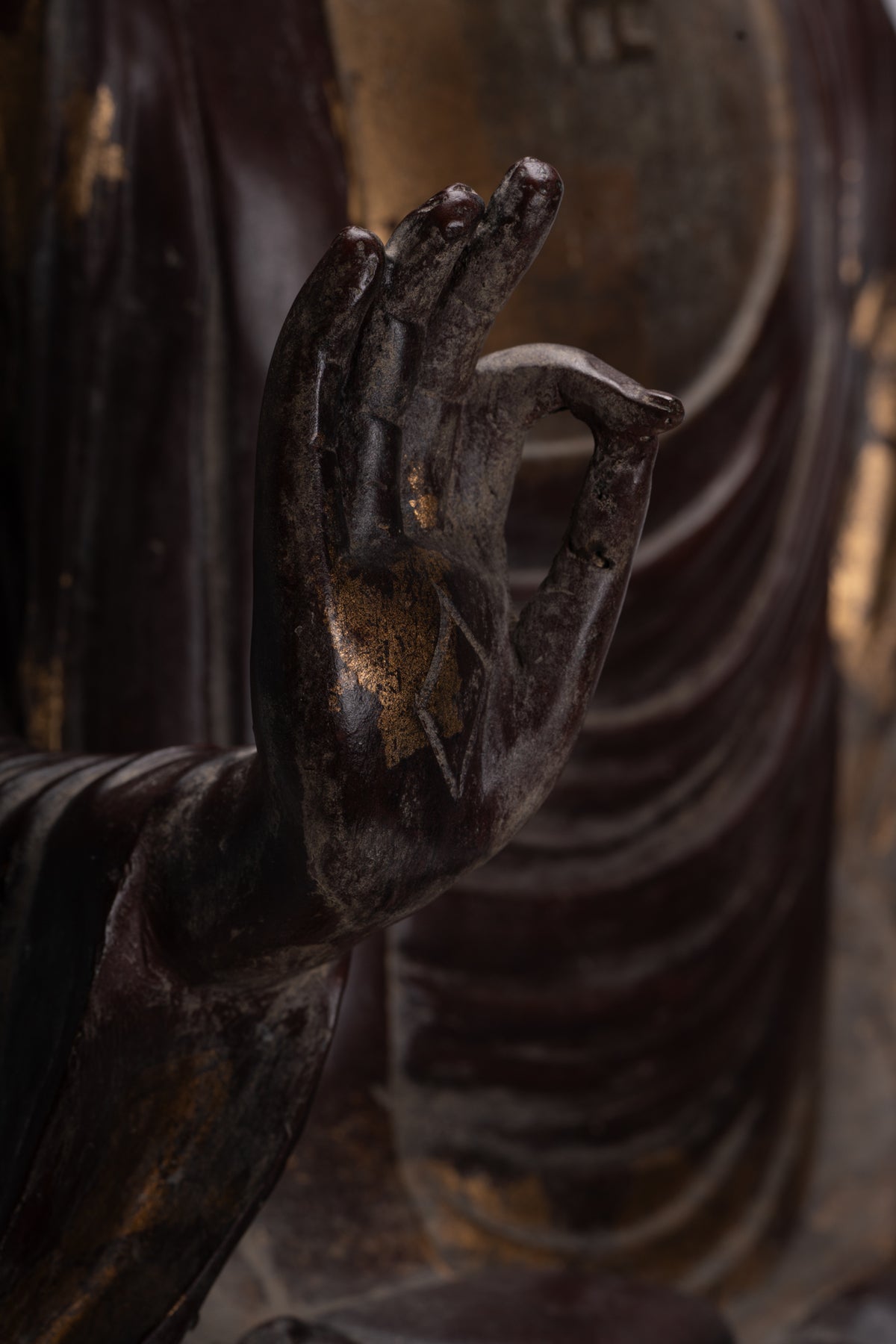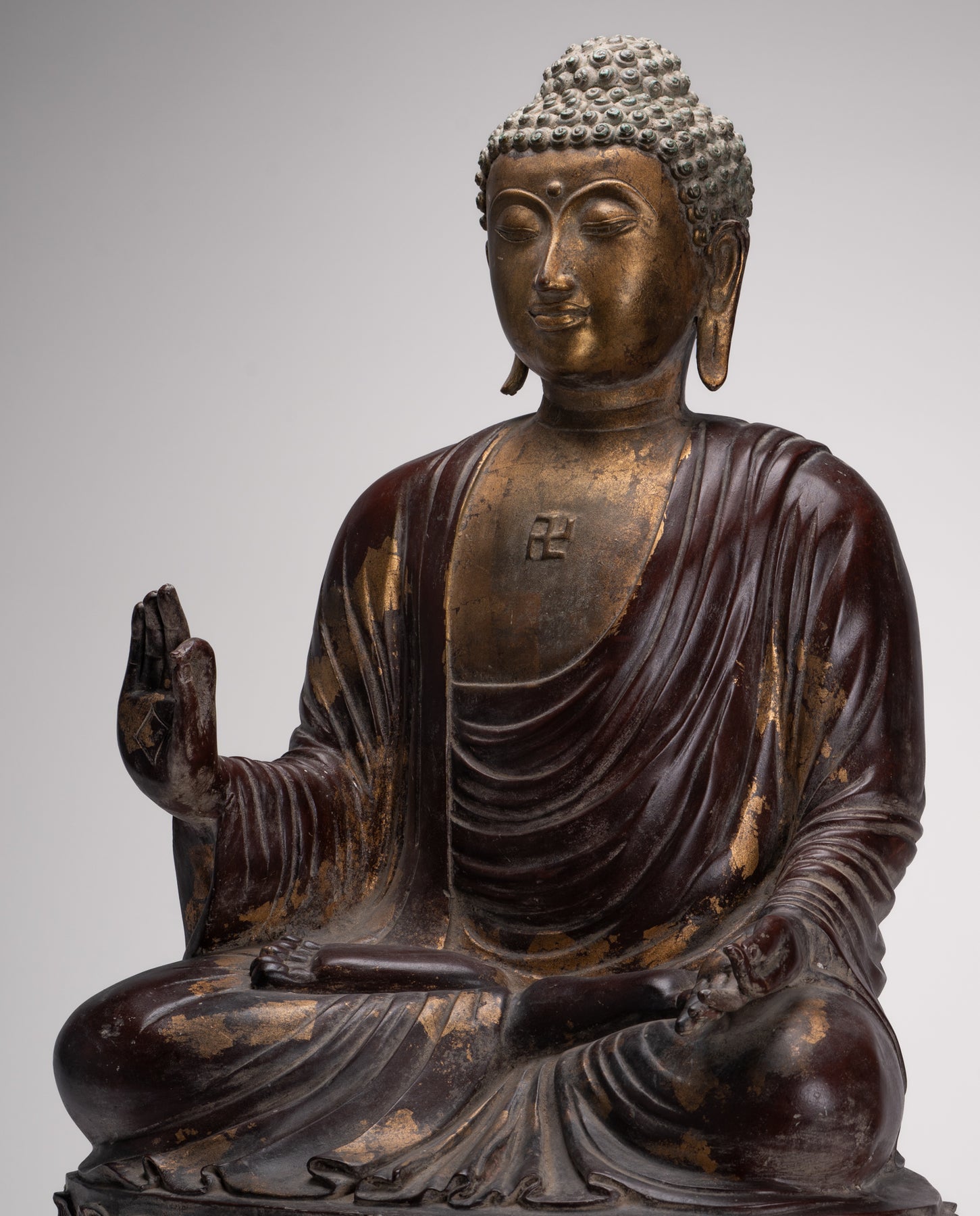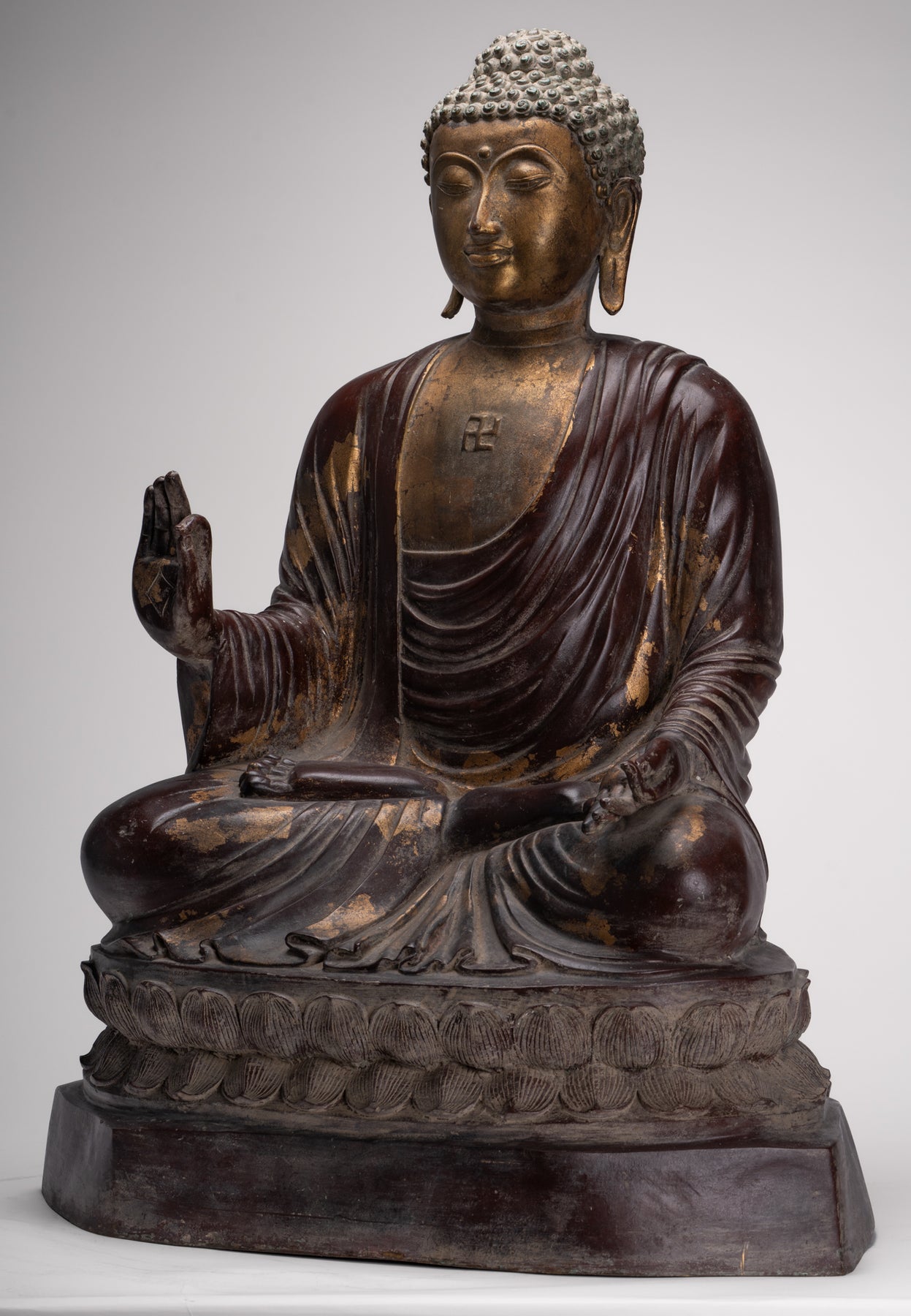 Estatua de Buda - Estatua de enseñanza sentada de estilo antiguo del Tíbet - 88 cm/35 "
