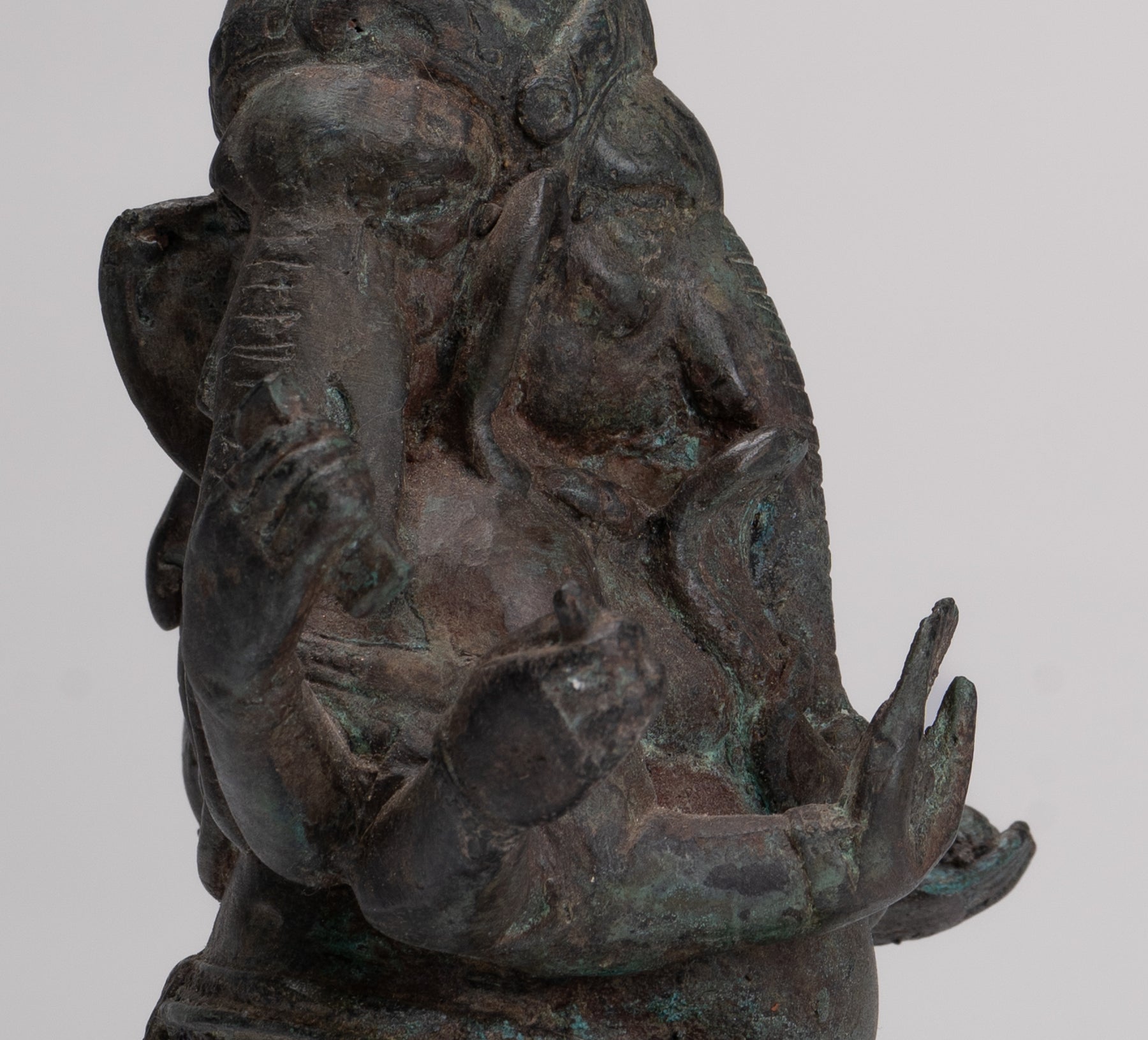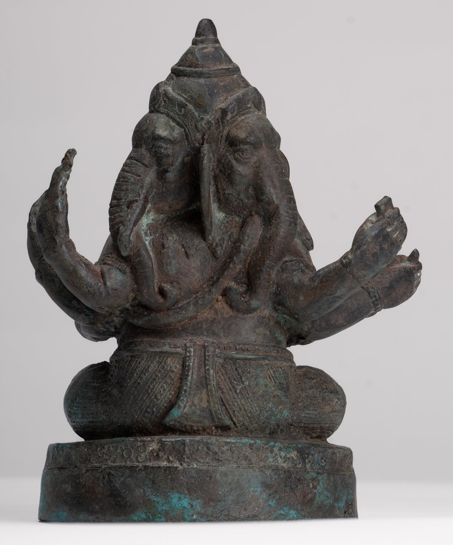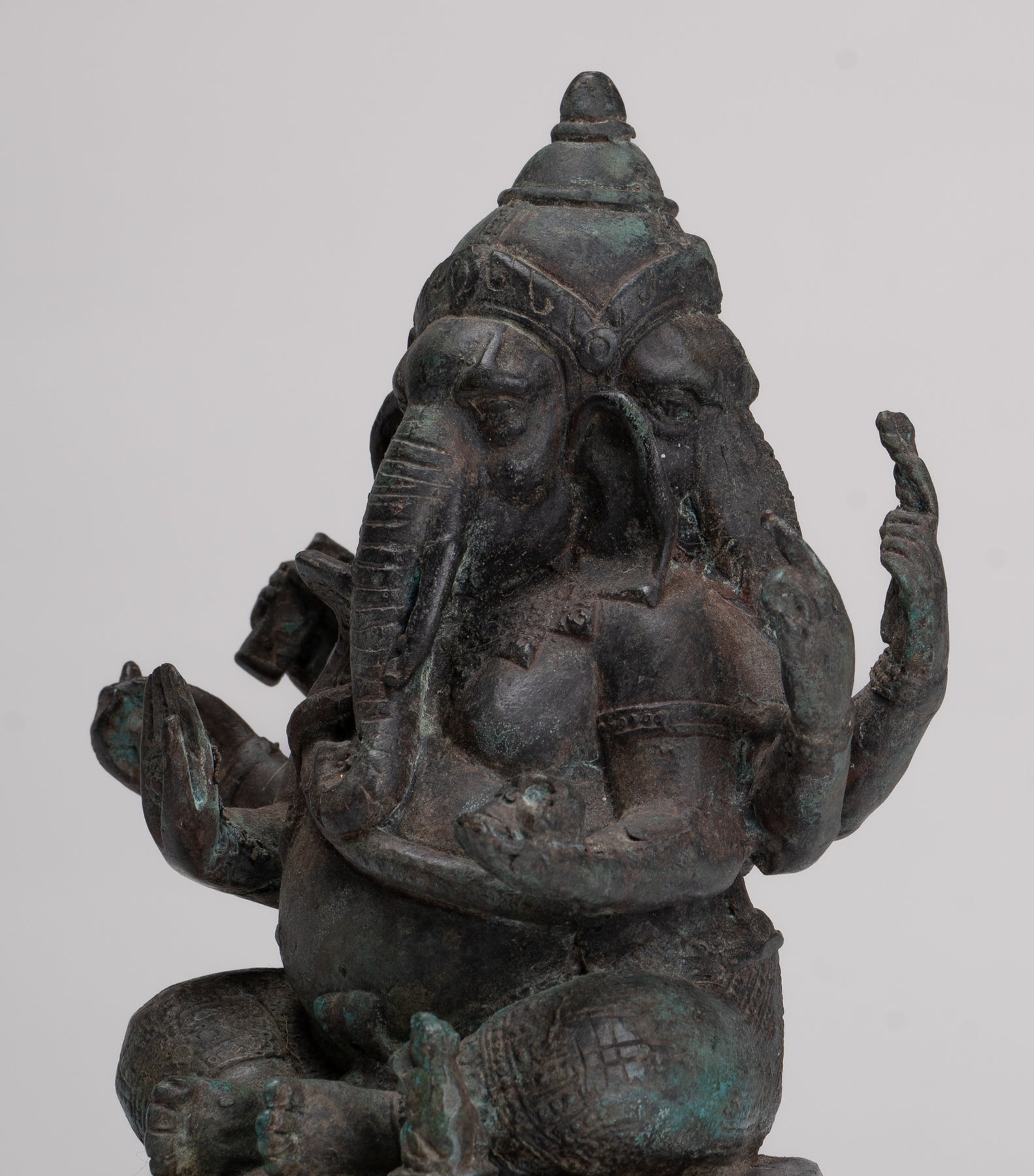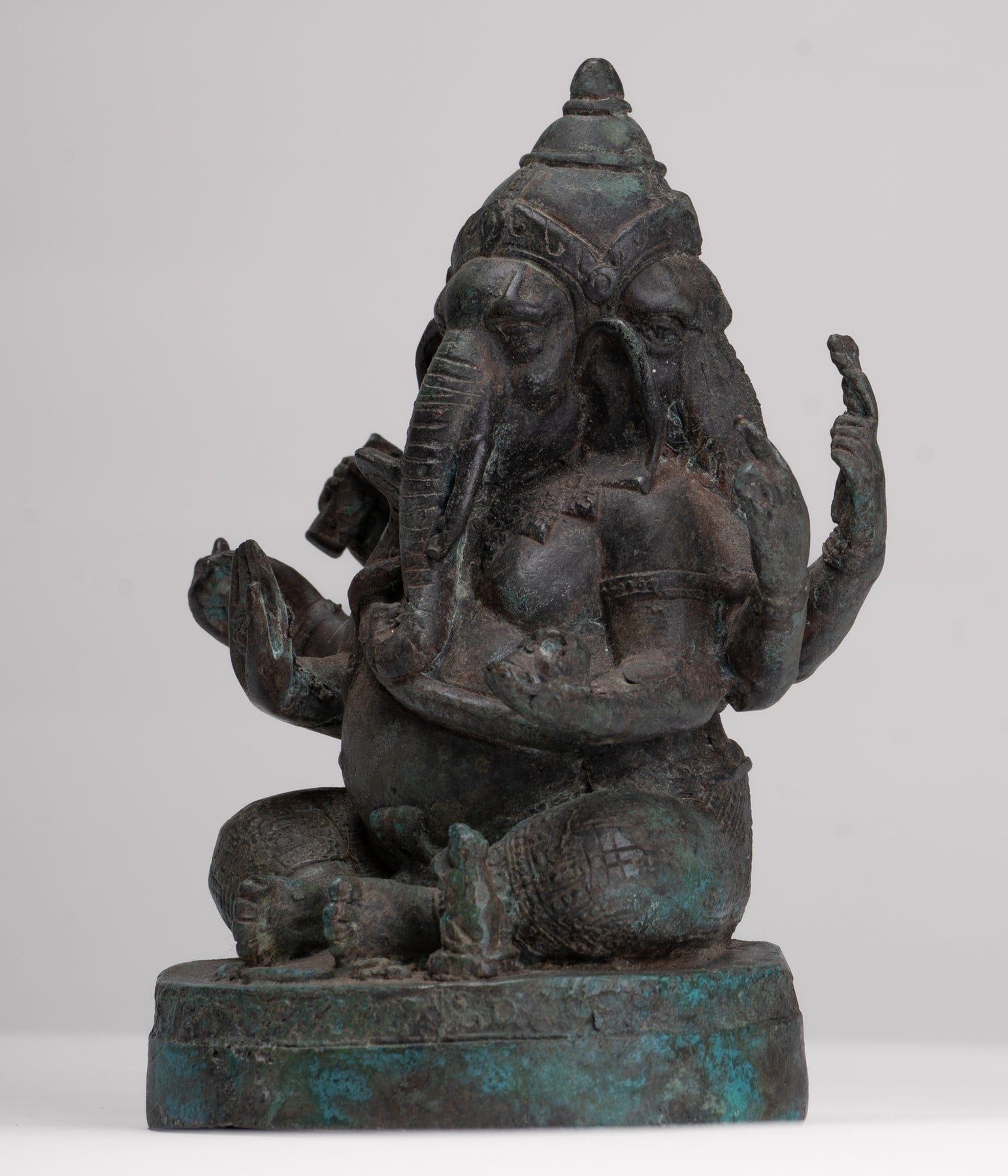 Ganesha Statue - Antique Thai Style Bronze Seated 6-Arm Ganesha Statue - 19cm/8"