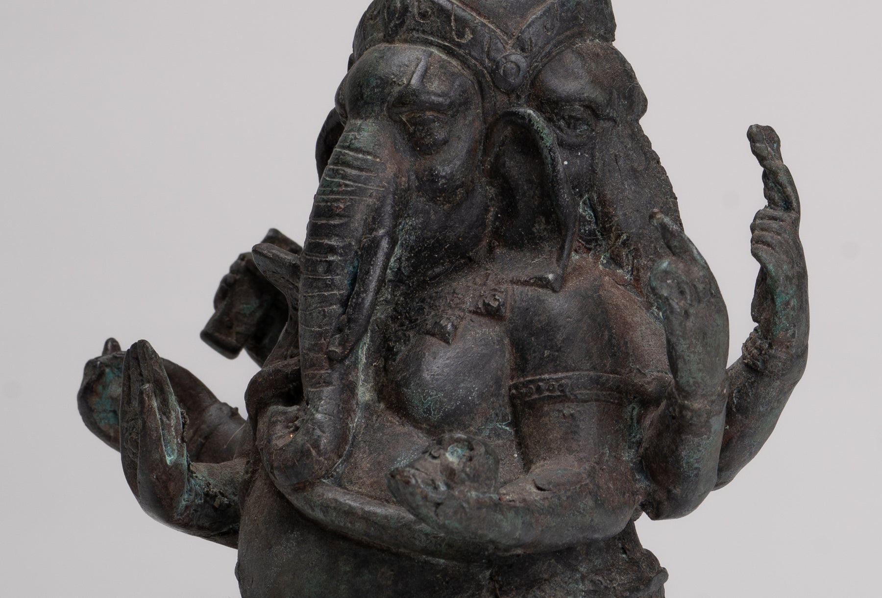• Estatua de Ganesha de 6 brazos de estilo tailandés antiguo - 17.5cm/7 "