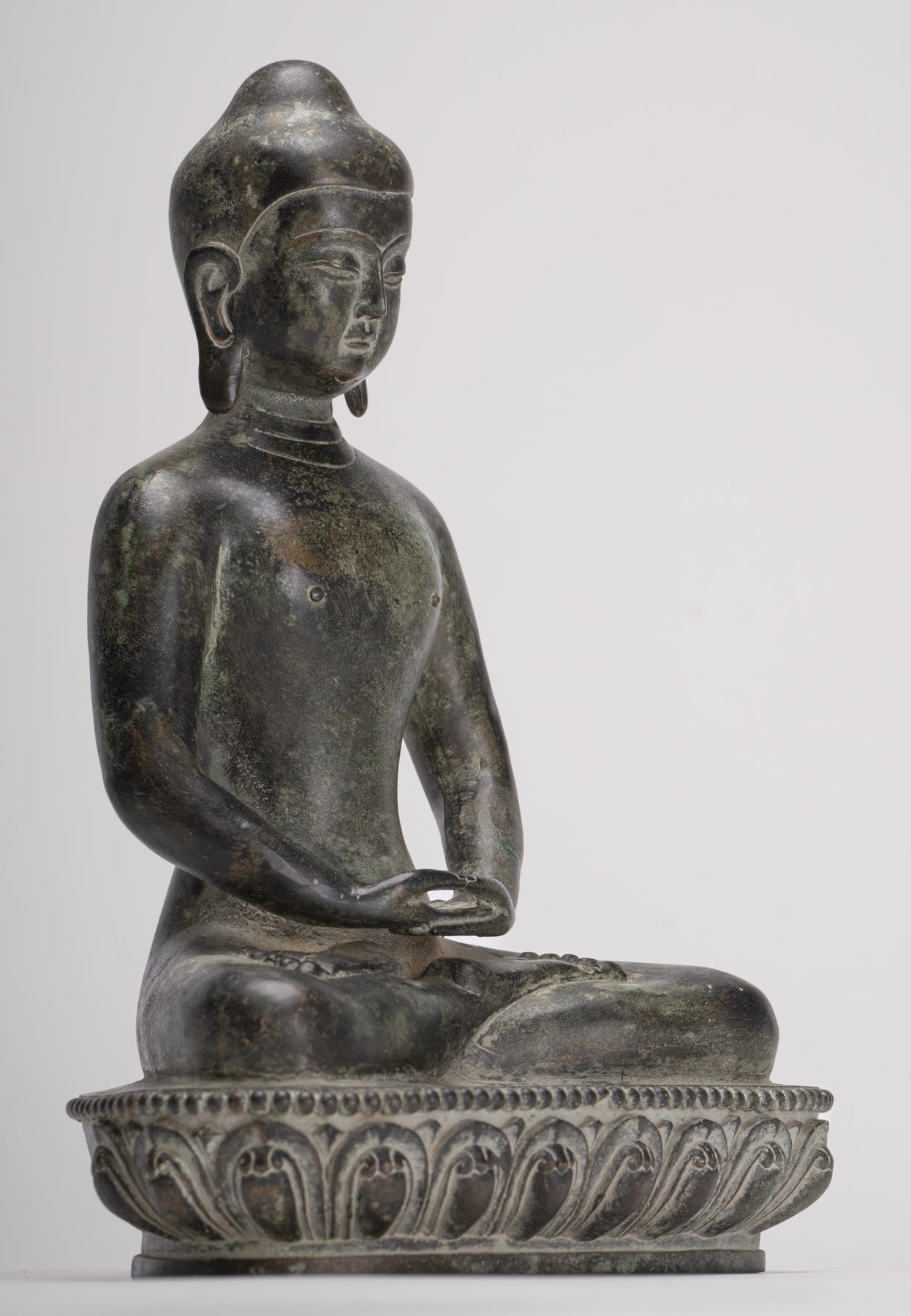 Antique Japanese Style Bronze Seated Meditation Amitabha Buddha Statue - 28cm/11"