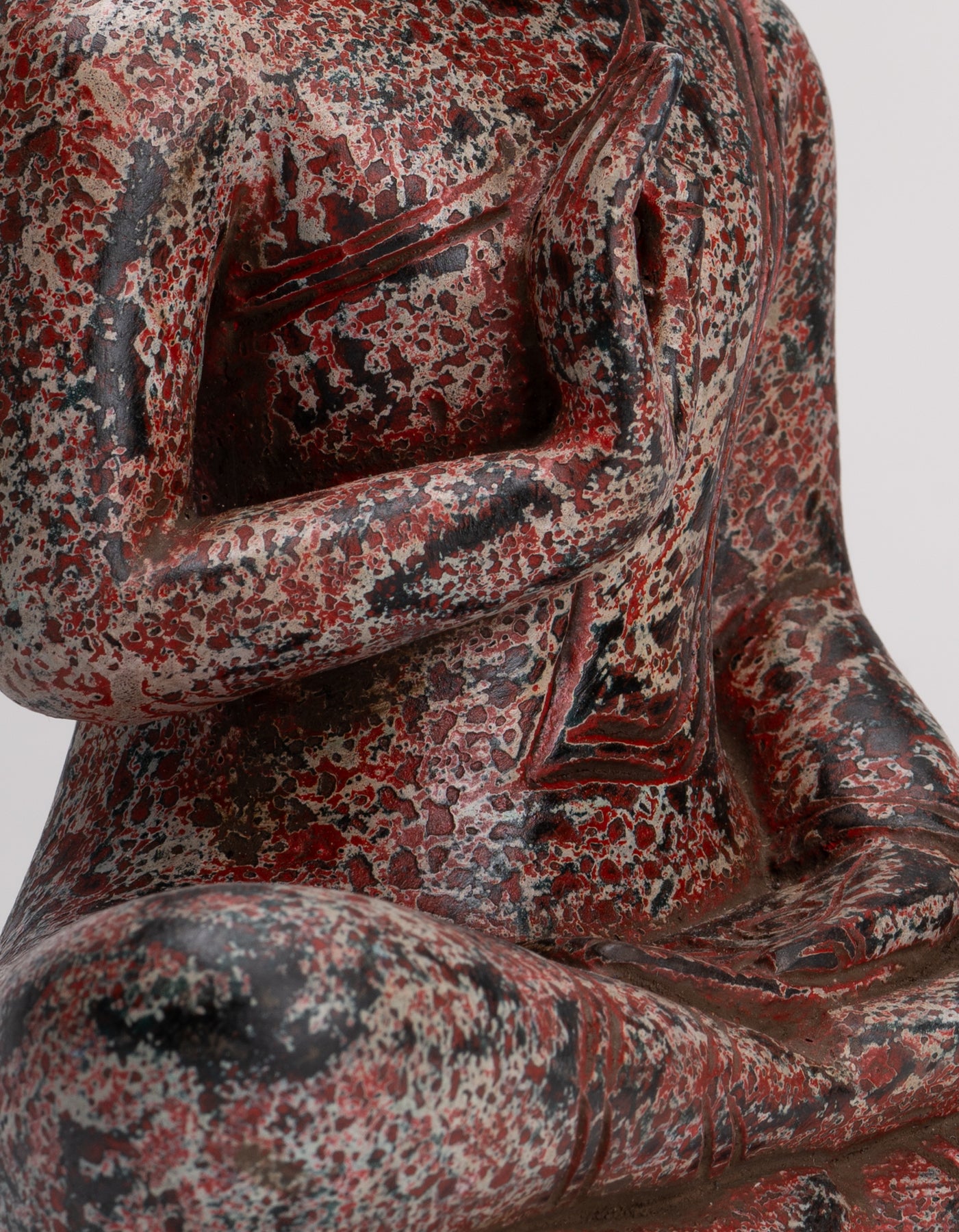 • Statue de Bouddha - style khmer antique Cambodge Statue de bouddha en bois assis enseignant Mudra - 27 cm / 11 "