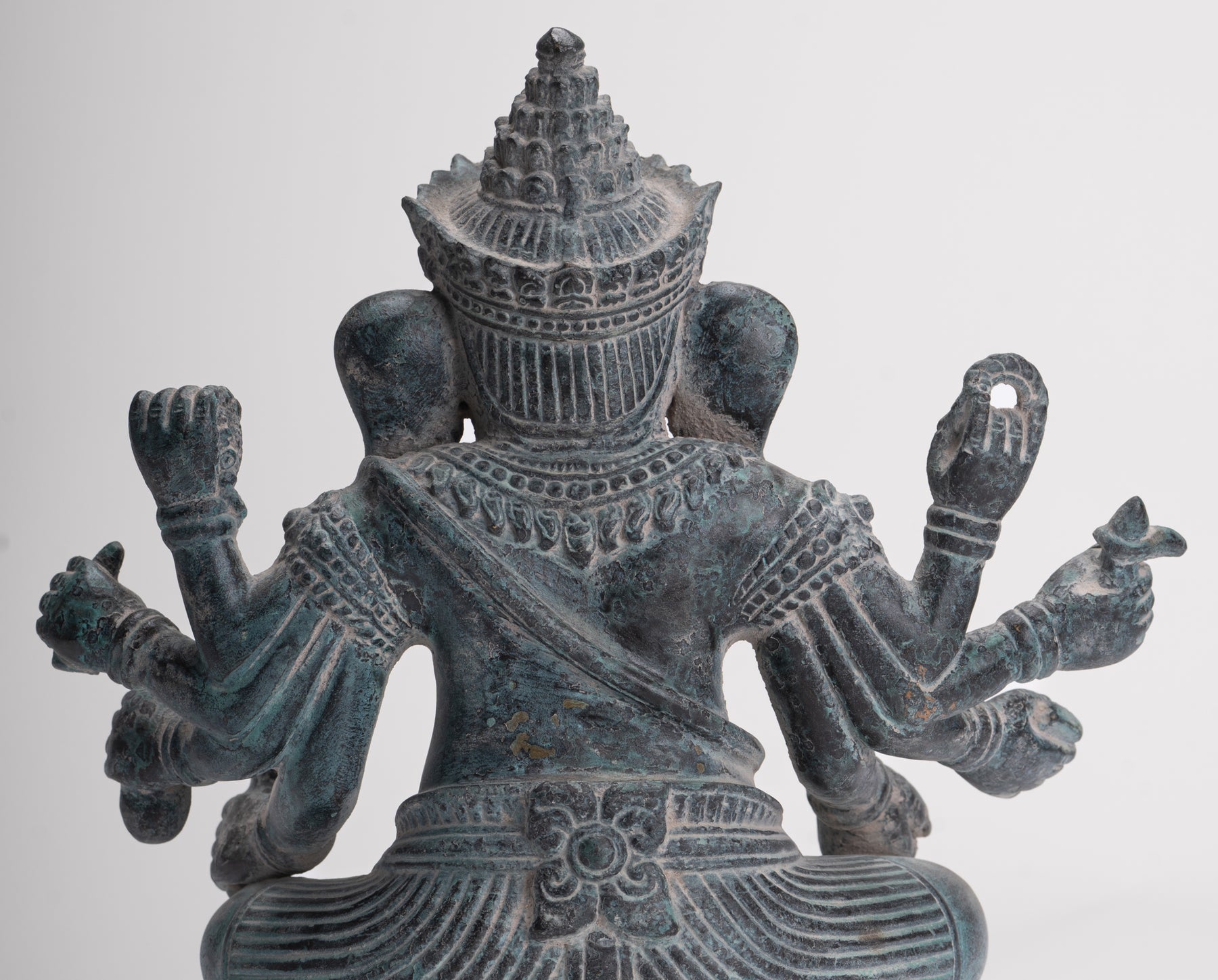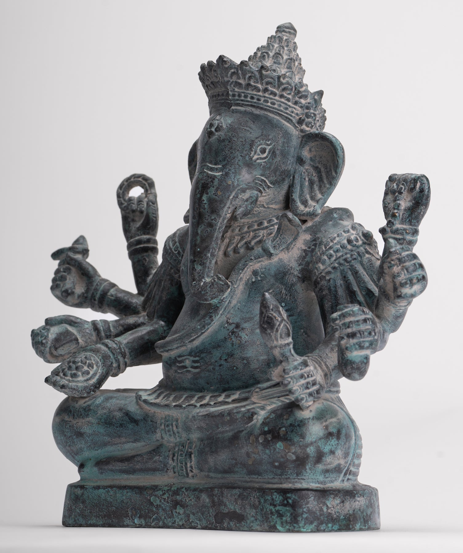 Statue antique de Ganesh à 8 bras d'Angkor Wat intronisée de style khmer - 22 cm/9"