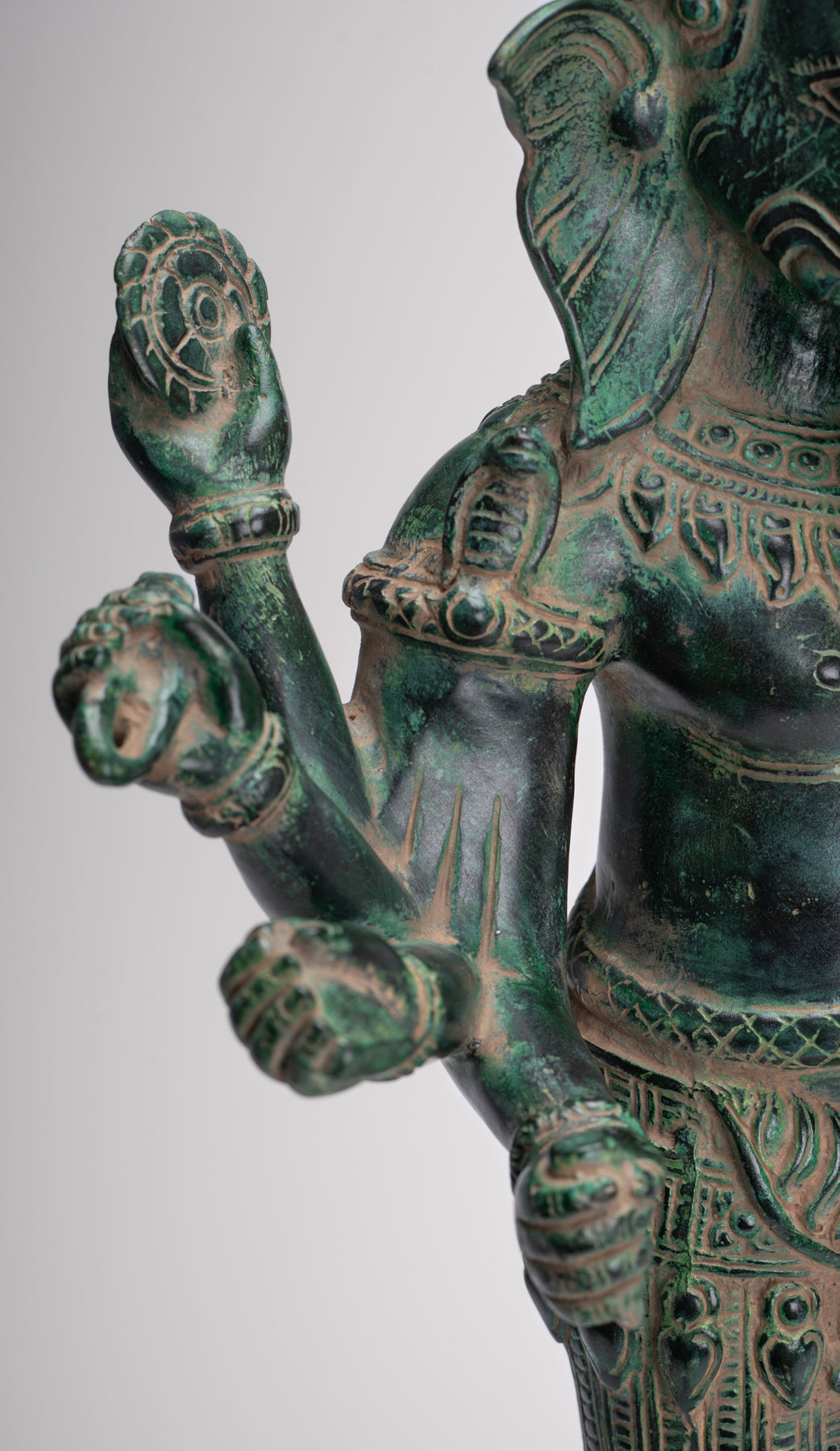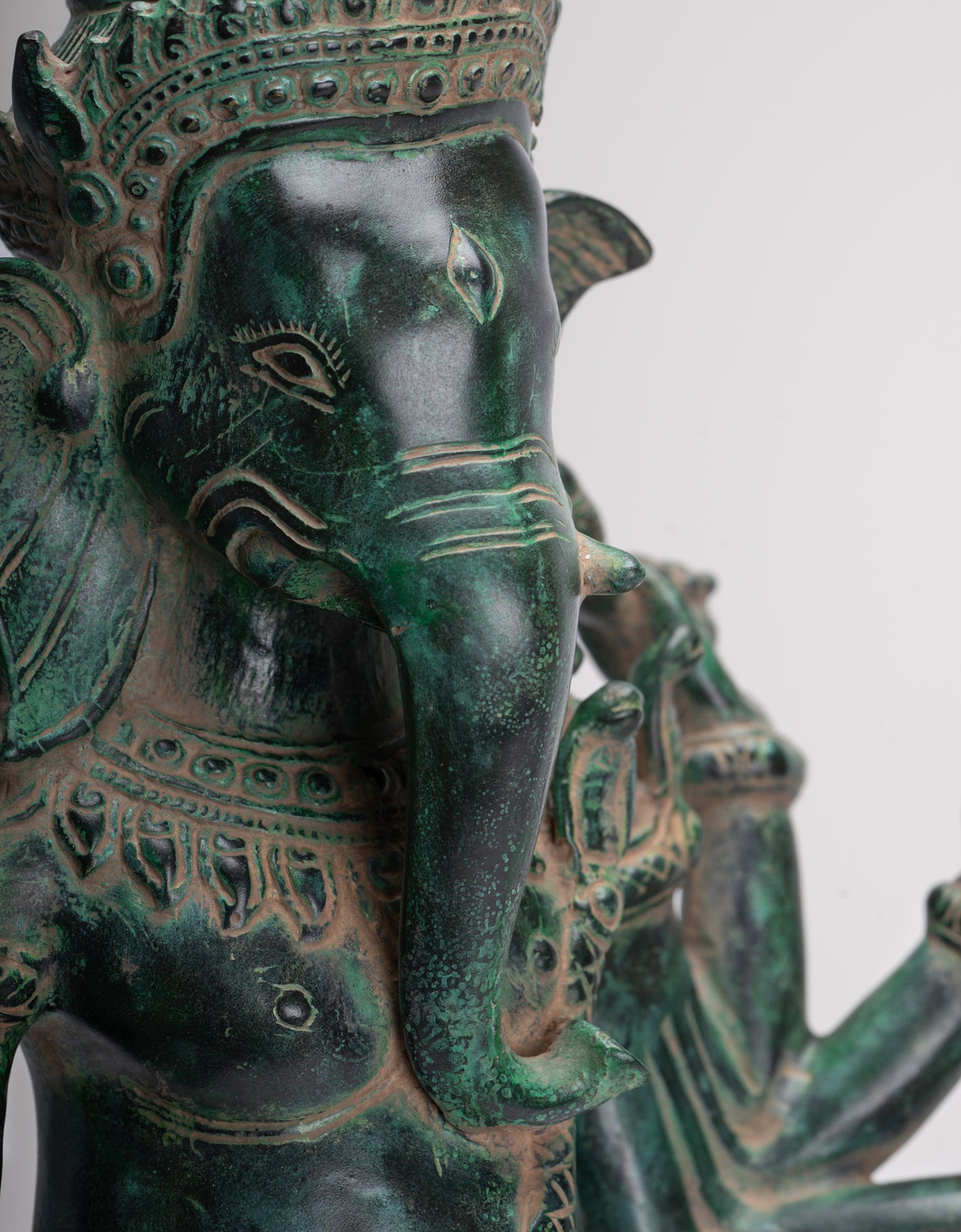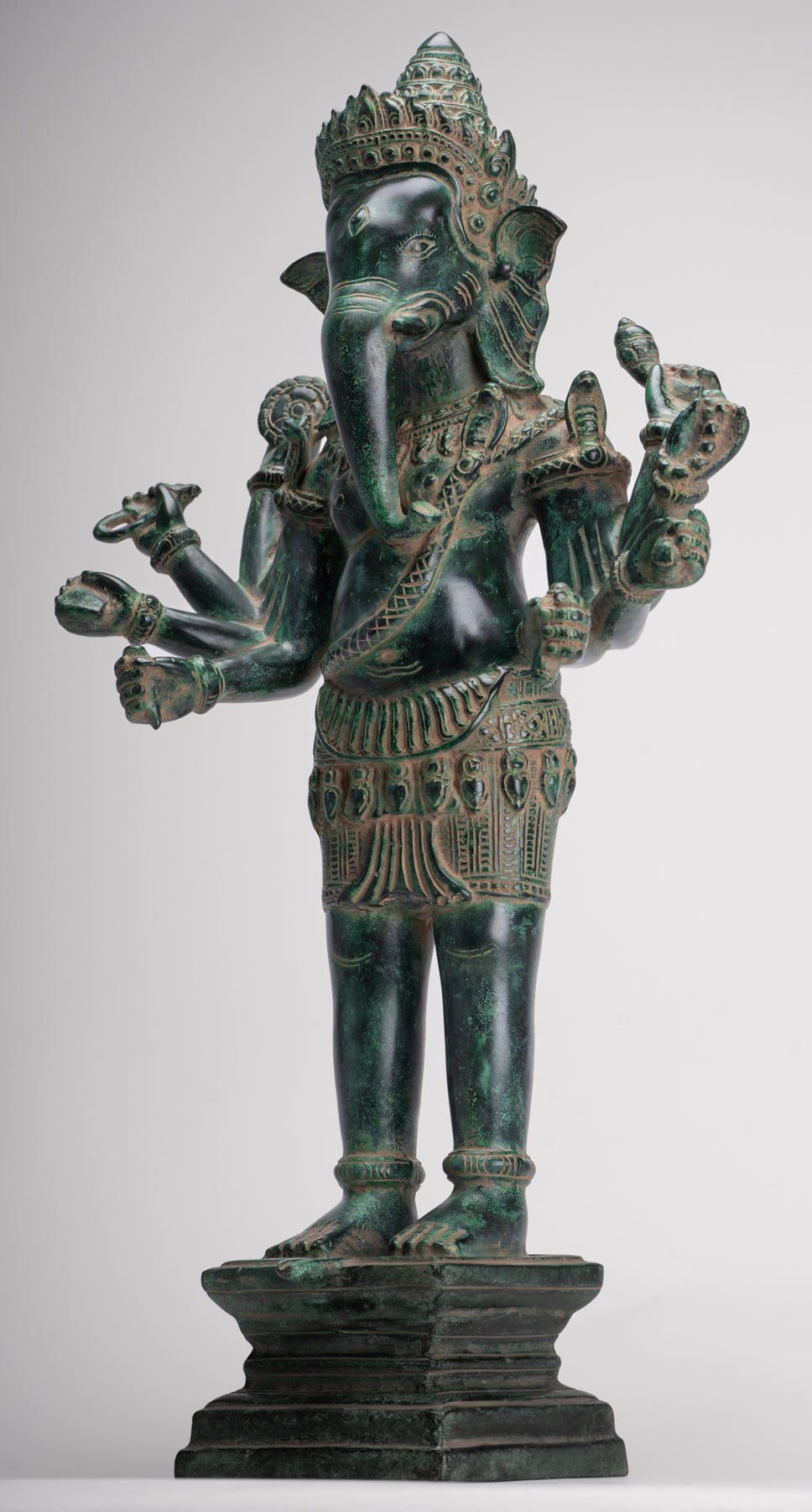 Statue antique de Ganesha d'Angkor Wat en bronze debout de style khmer sur Yoni - 55 cm/22"