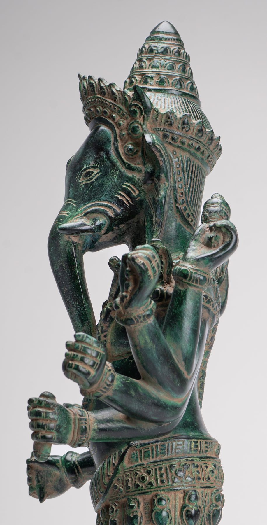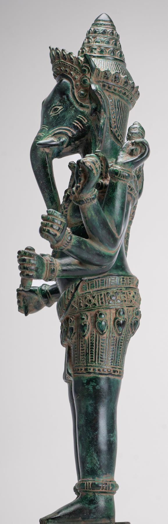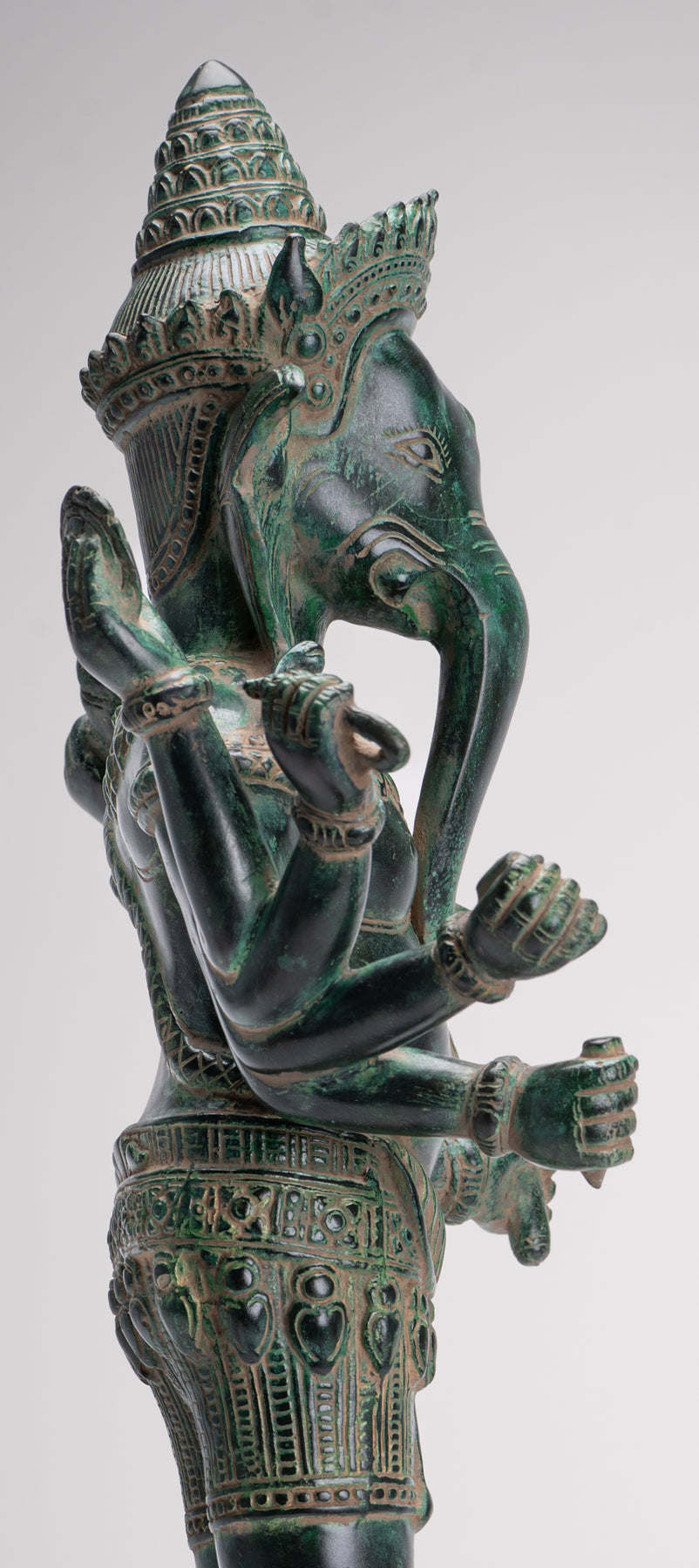 Statue antique de Ganesha d'Angkor Wat en bronze debout de style khmer sur Yoni - 55 cm/22"