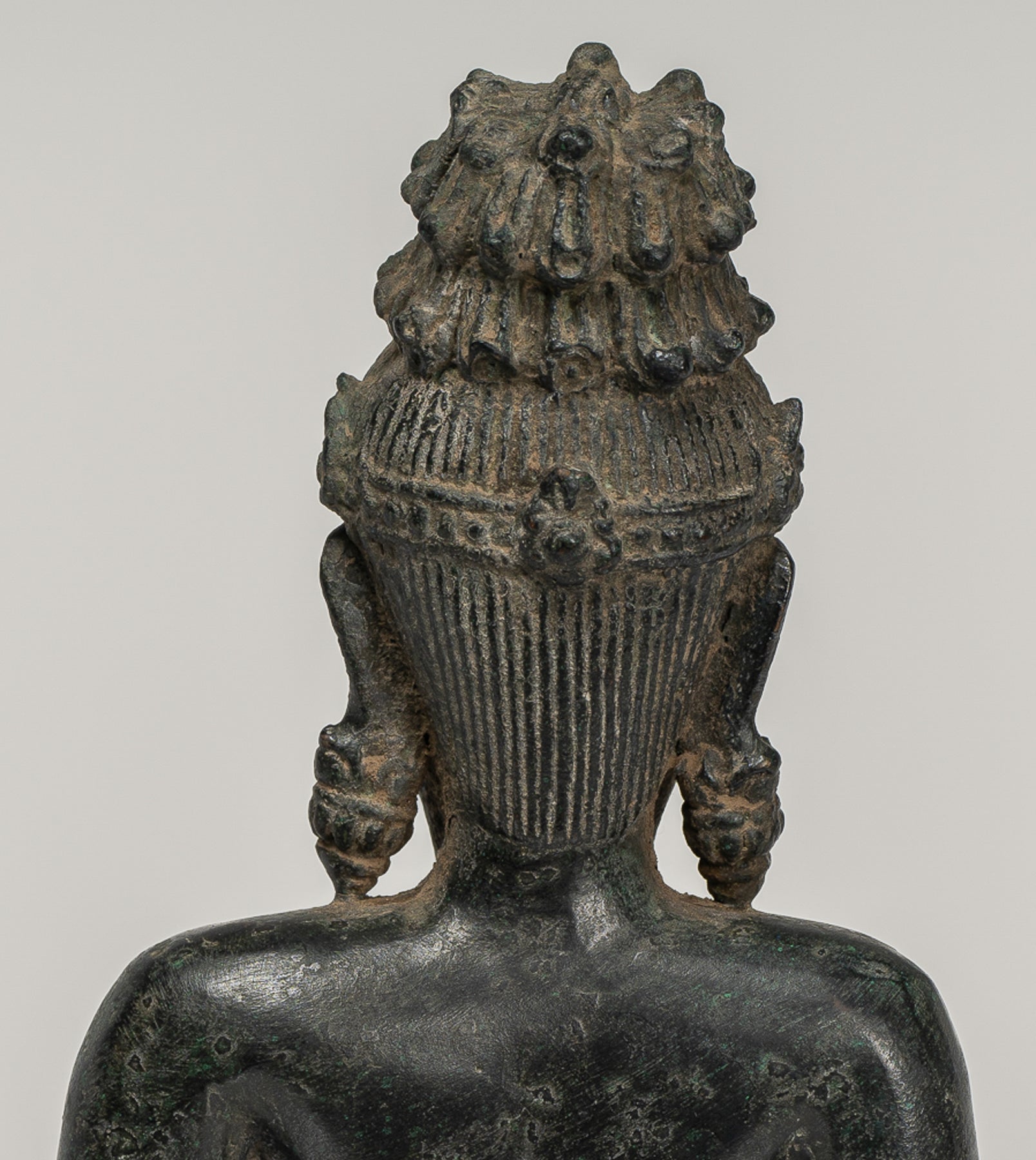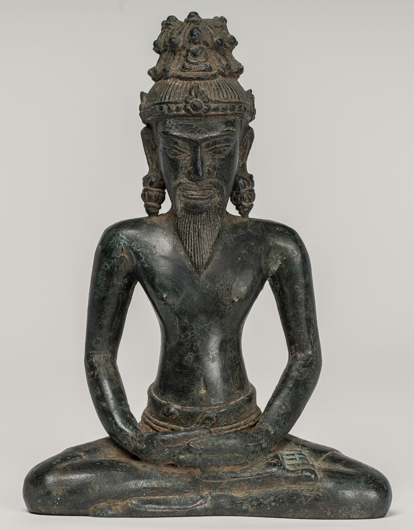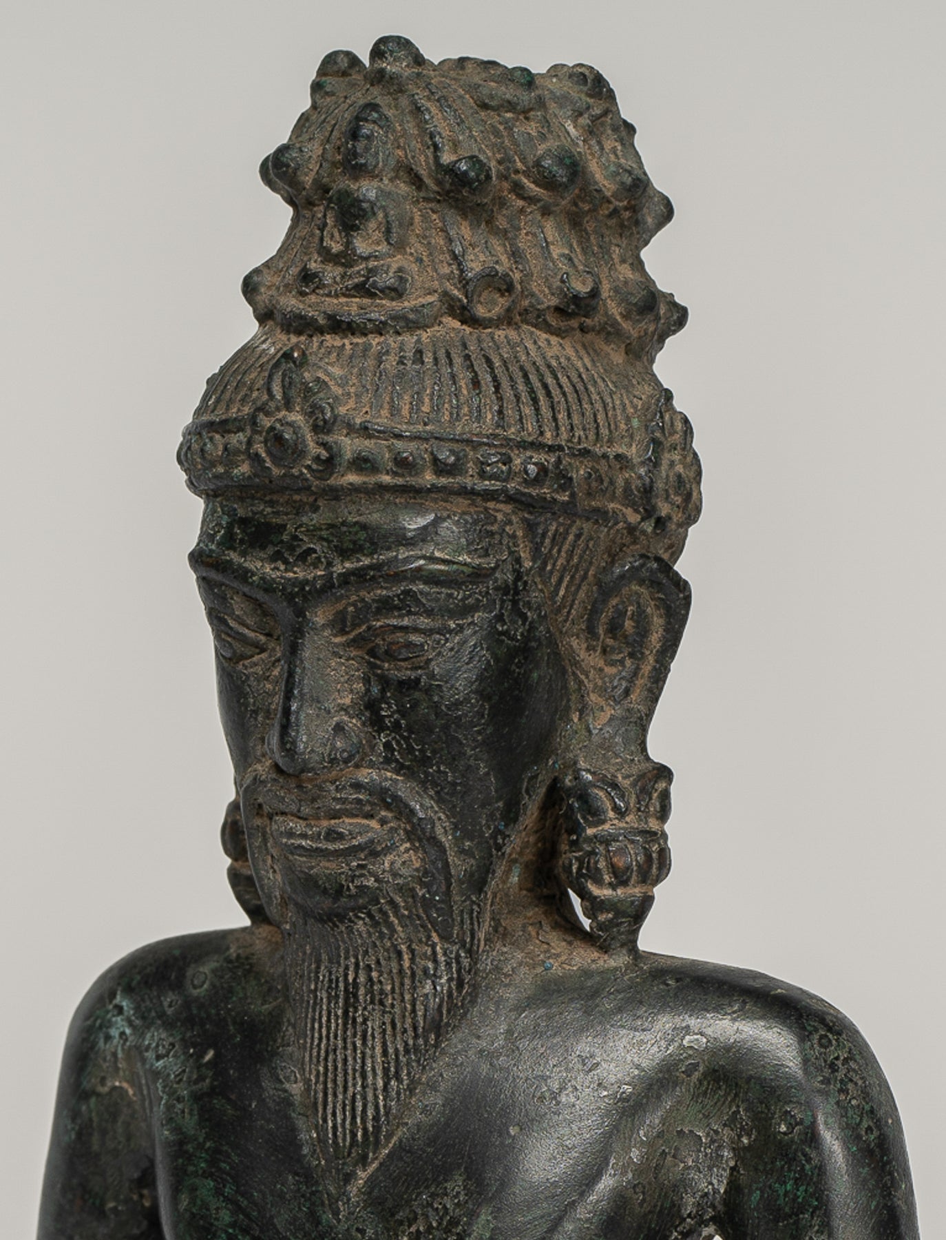 • Statue Rishi – Rishi ou homme sage en bronze assis de style khmer antique – 17 cm/7"