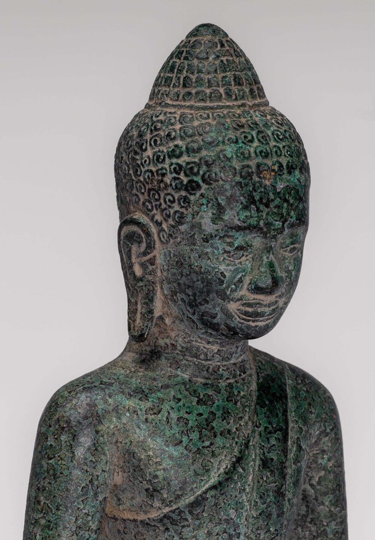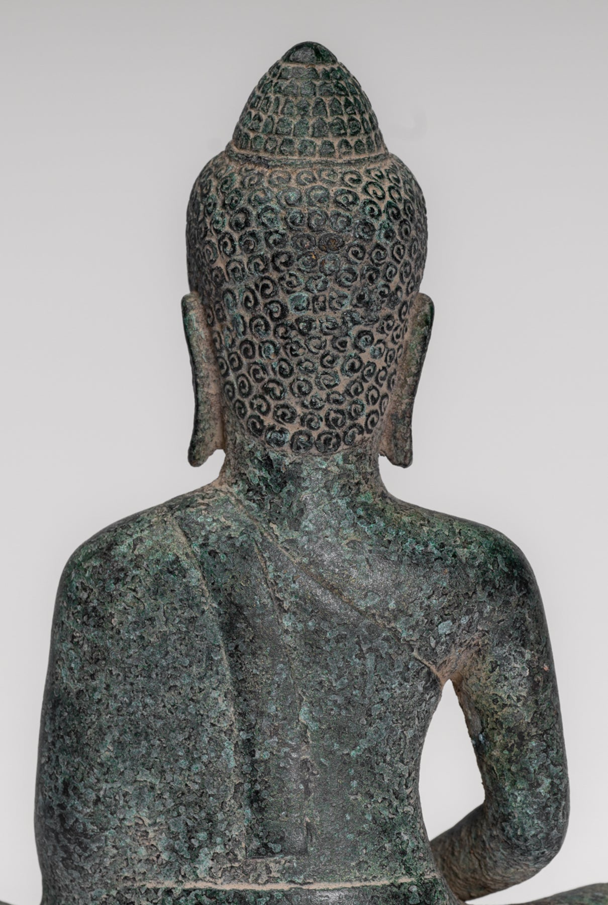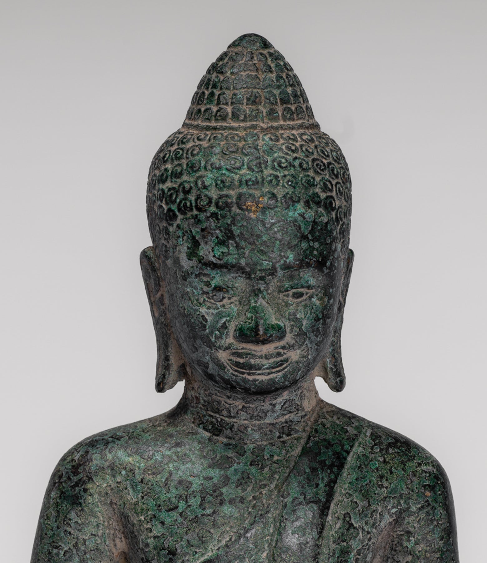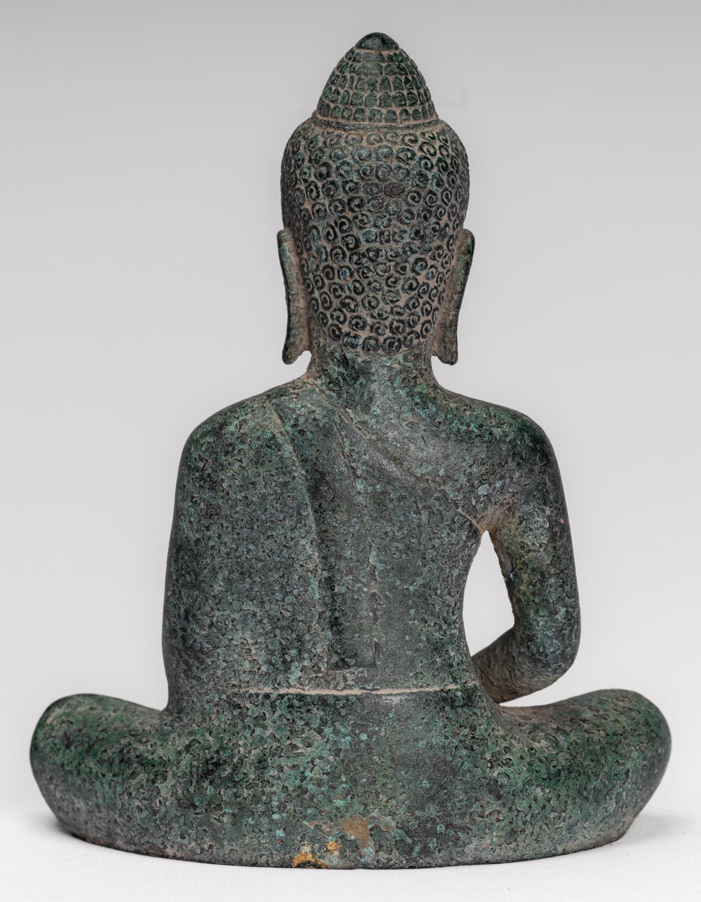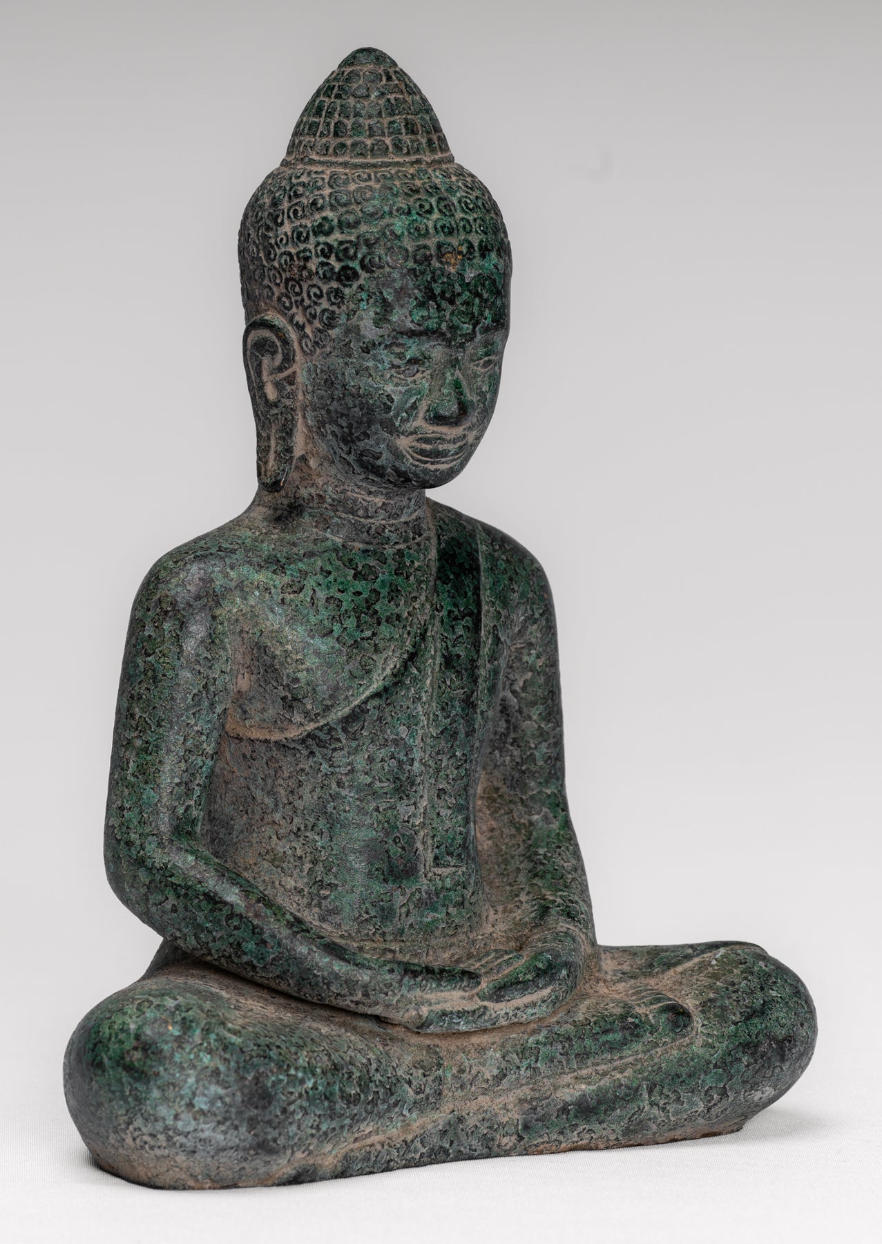 Bouddha - Bouddha méditatif en bronze de style khmer antique - 18cm / 7 "