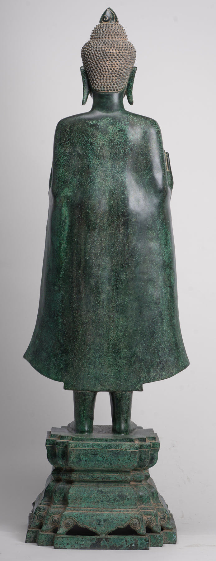 Le Bouddha se tenait Samapda sur un piédestal à feuilles de lotus double. La fleur de lotus représente la pureté, la compassion et le don d'une grande joie à tous.