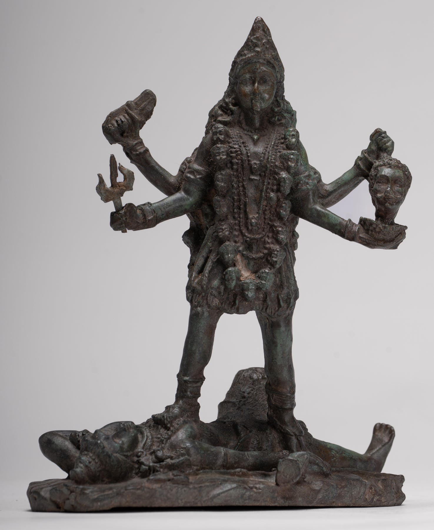 Une victoire antique de style indien posée en bronze Kali ou Mahakali sculpture dans le style Majapahit du XIIIe siècle.