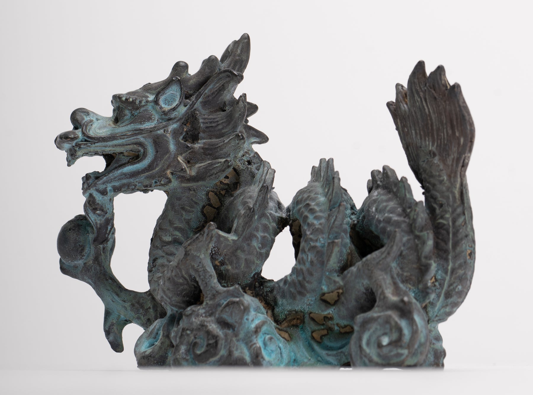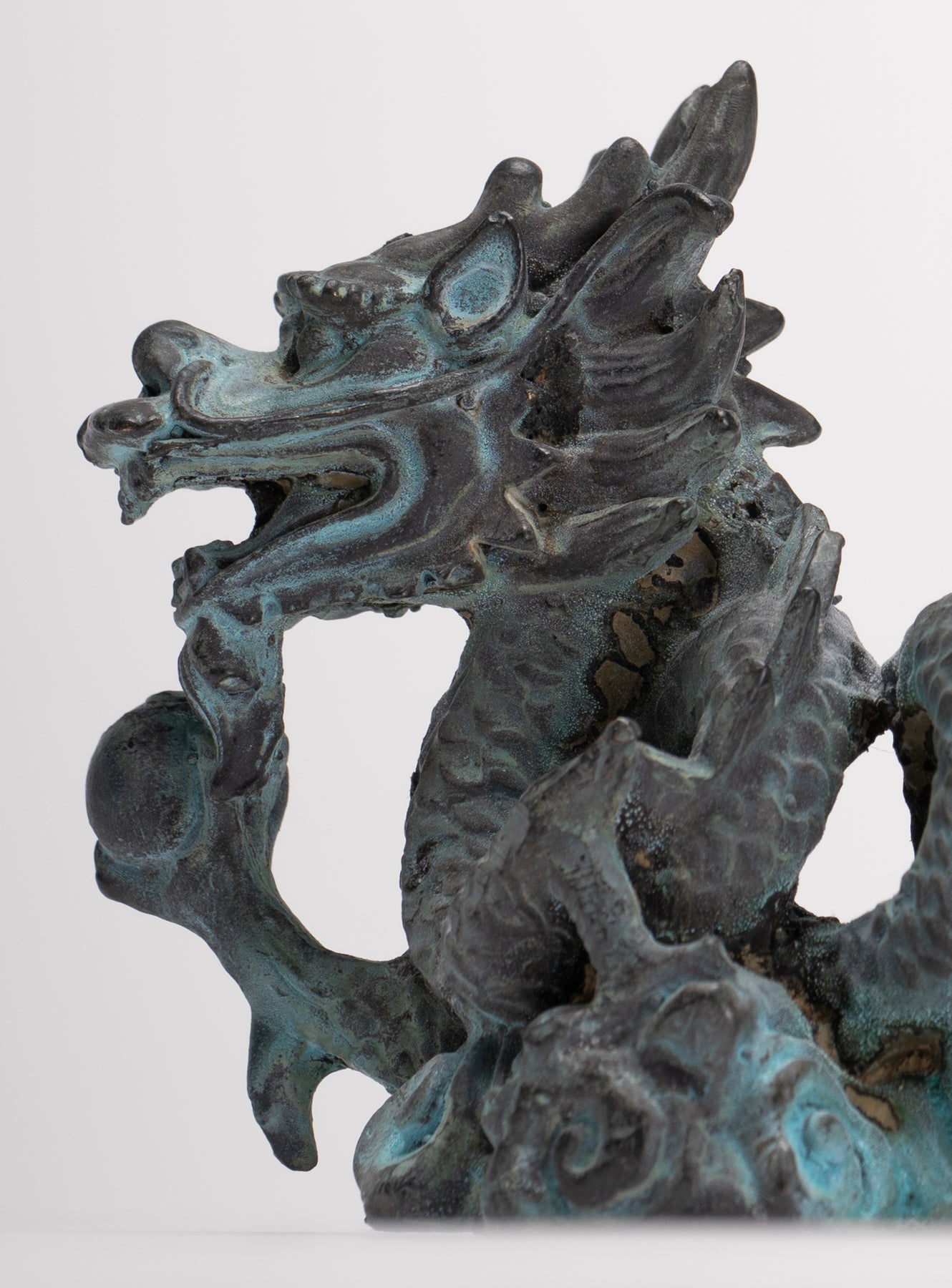 • Statue de dragon en bronze de style chinois antique - 12,5 cm