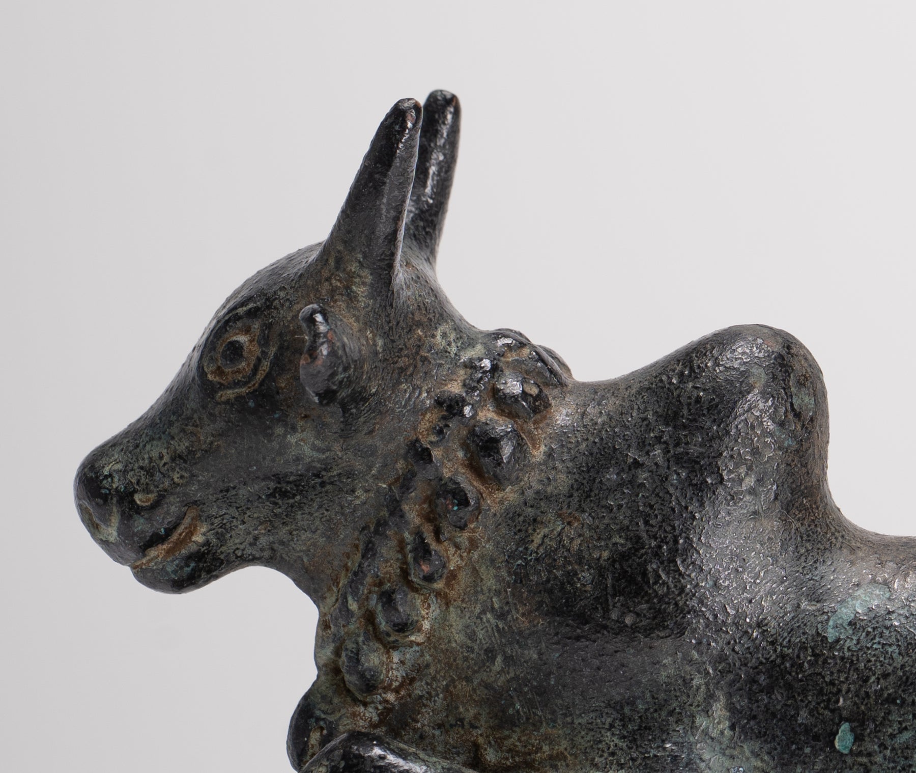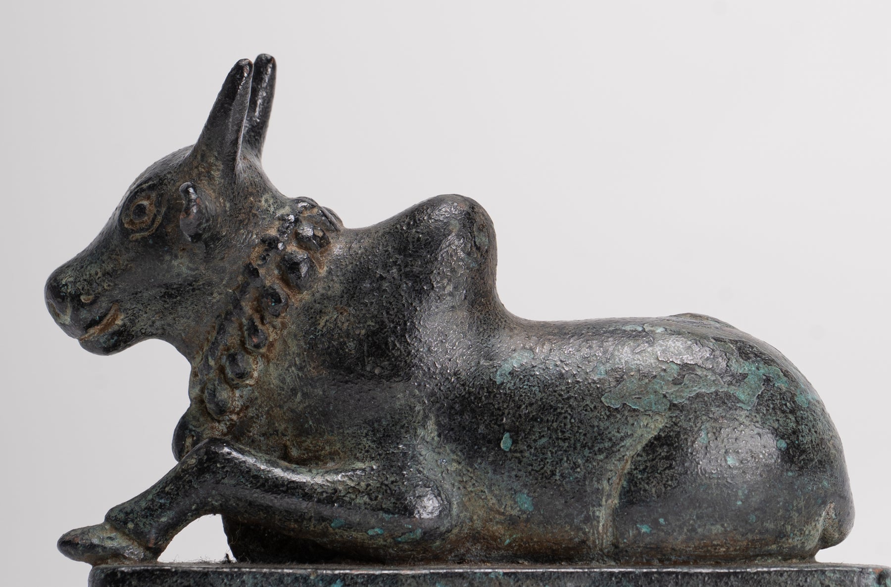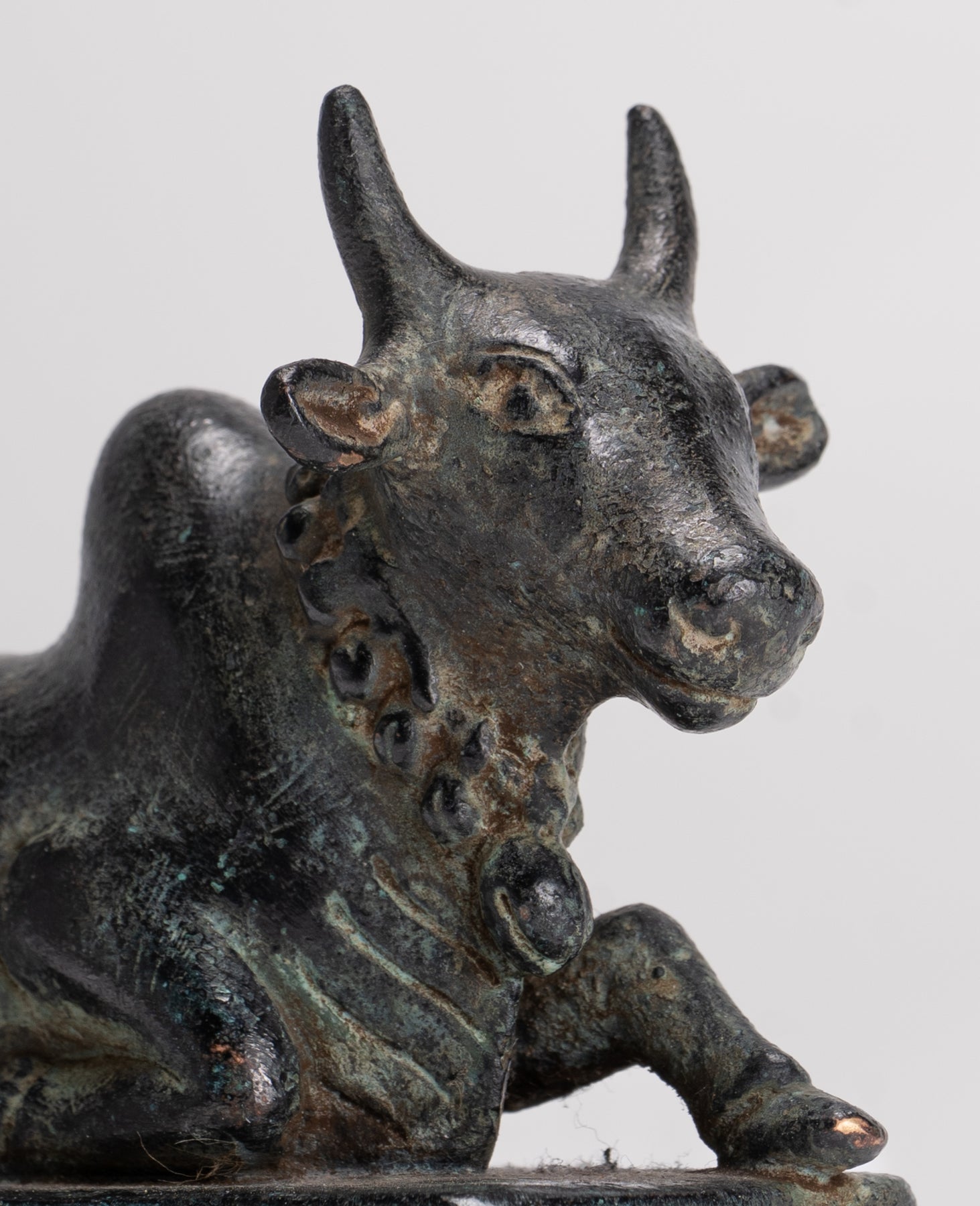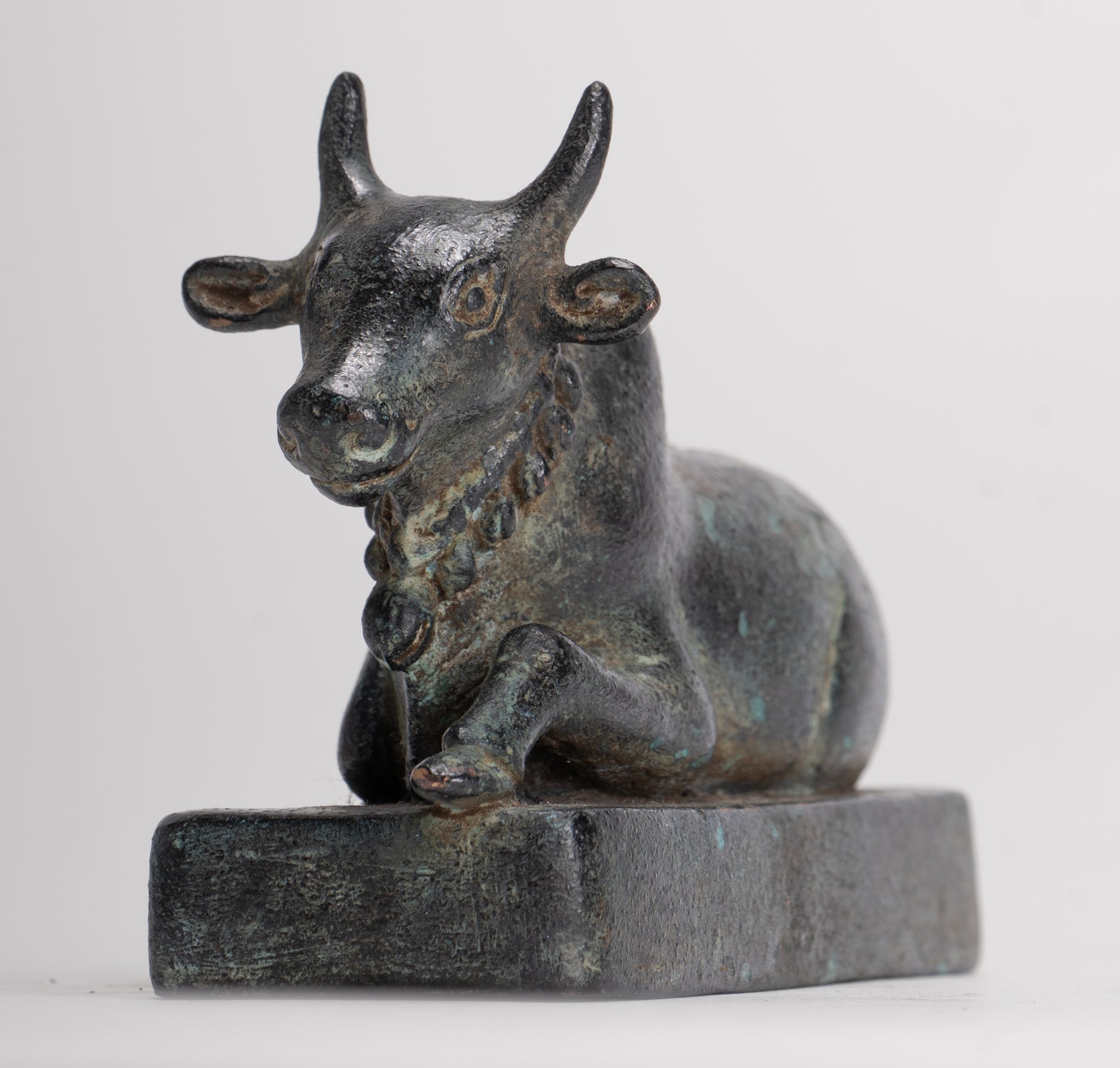 Statue Nandi en bronze de style khmer antique – Mont de Shiva – 10 cm de long