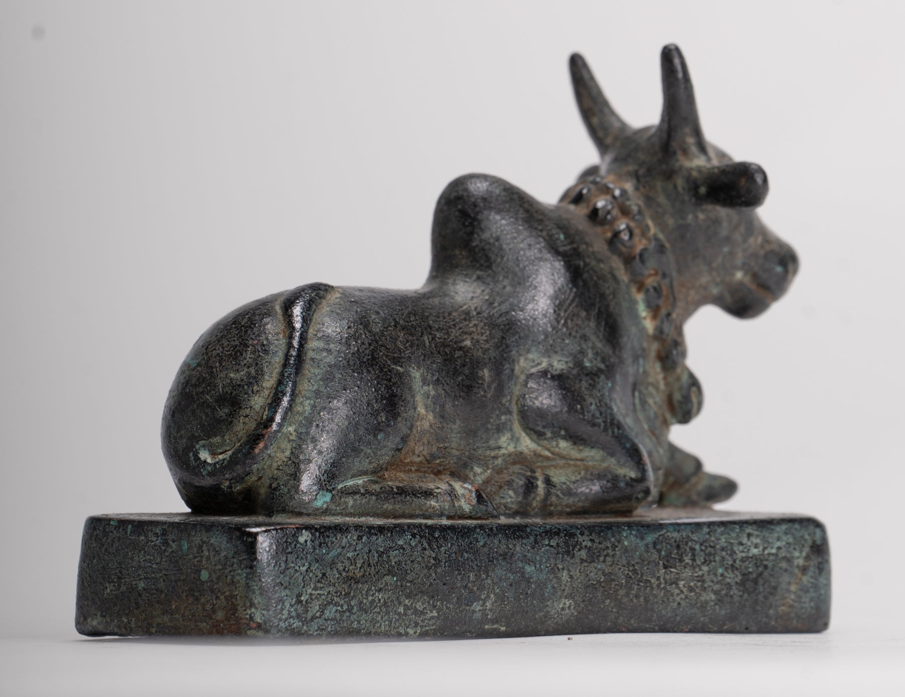 Une sculpture en bronze antique de style khmer de Nandi, la monture traditionnelle du taureau de Shiva.
