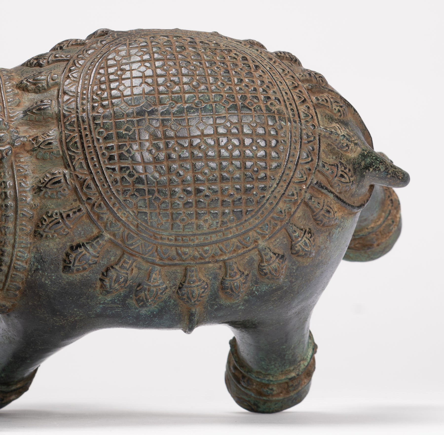 Statue d'éléphant trompette en bronze de style khmer antique - 25 cm de haut