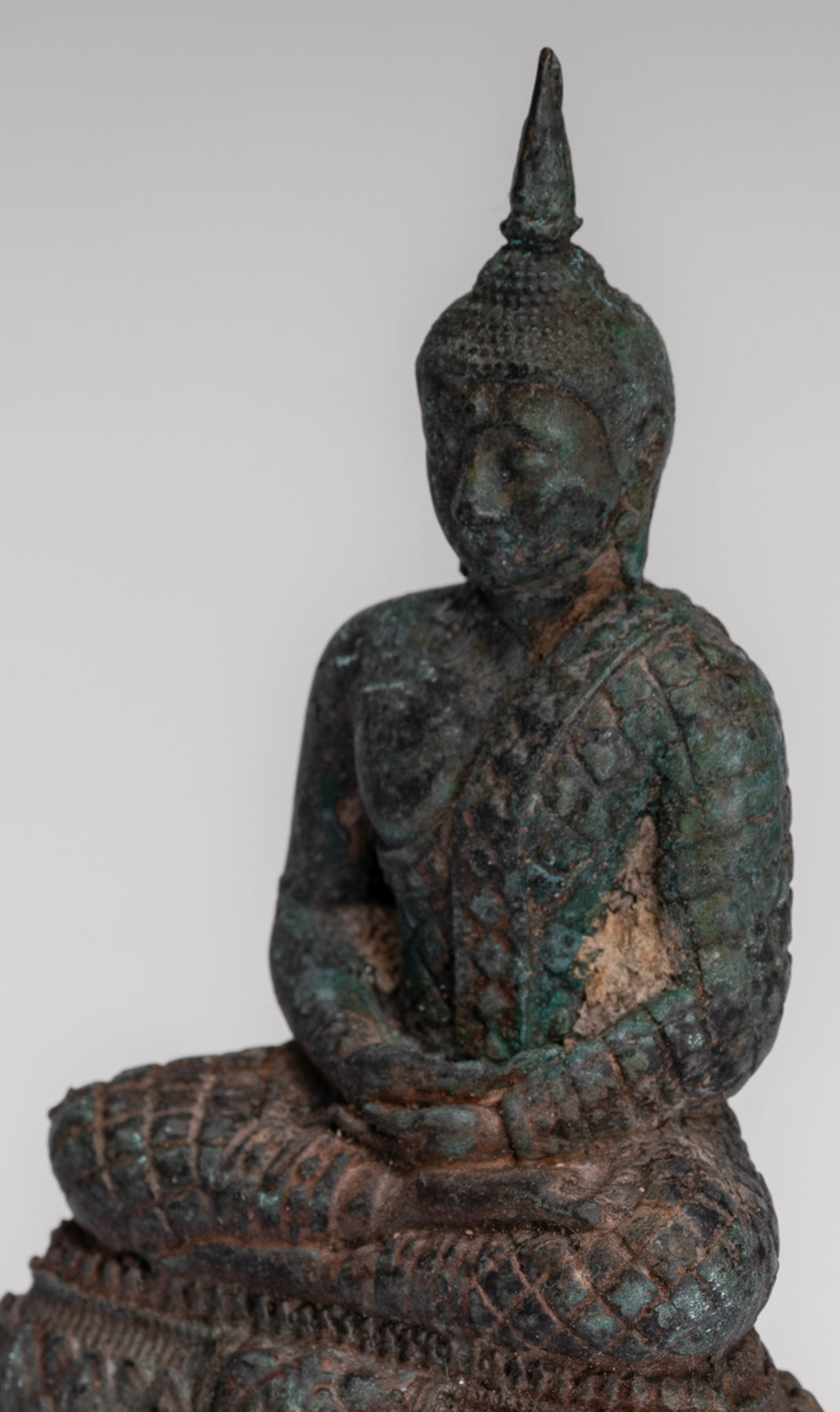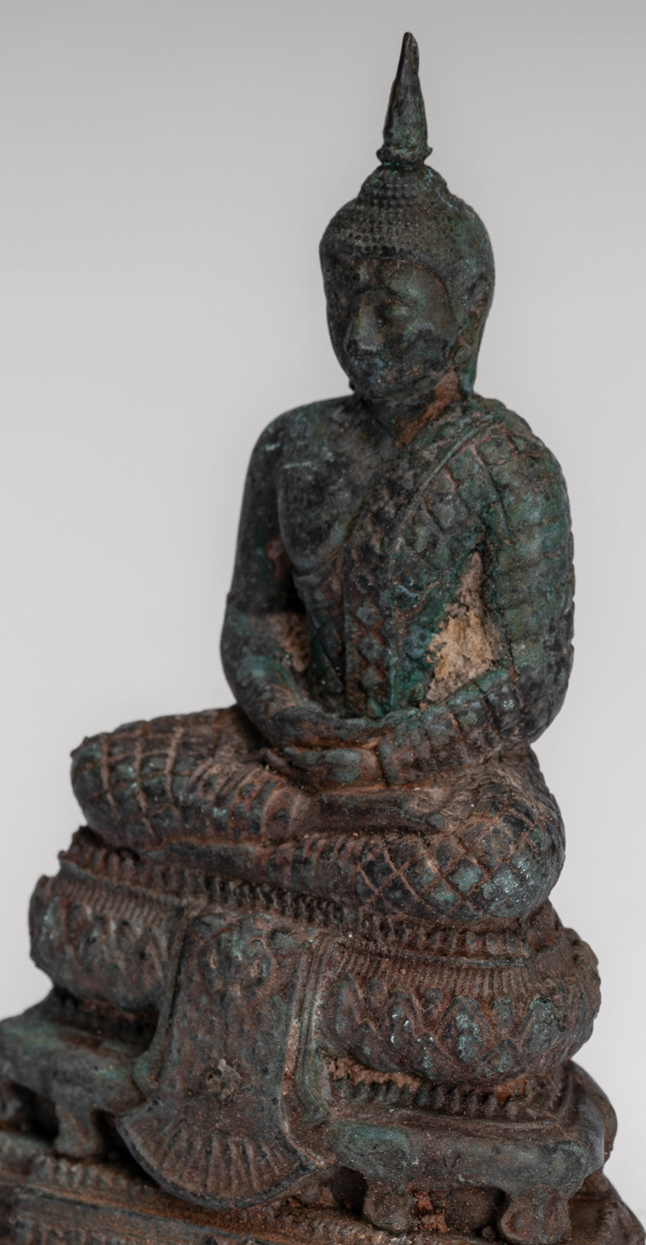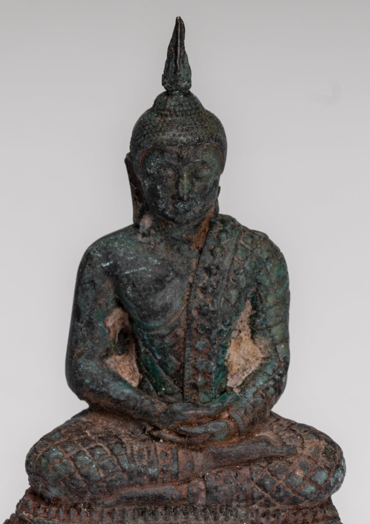 Bouddha de méditation en bronze de style thaï antique dans le style Sukhothai.