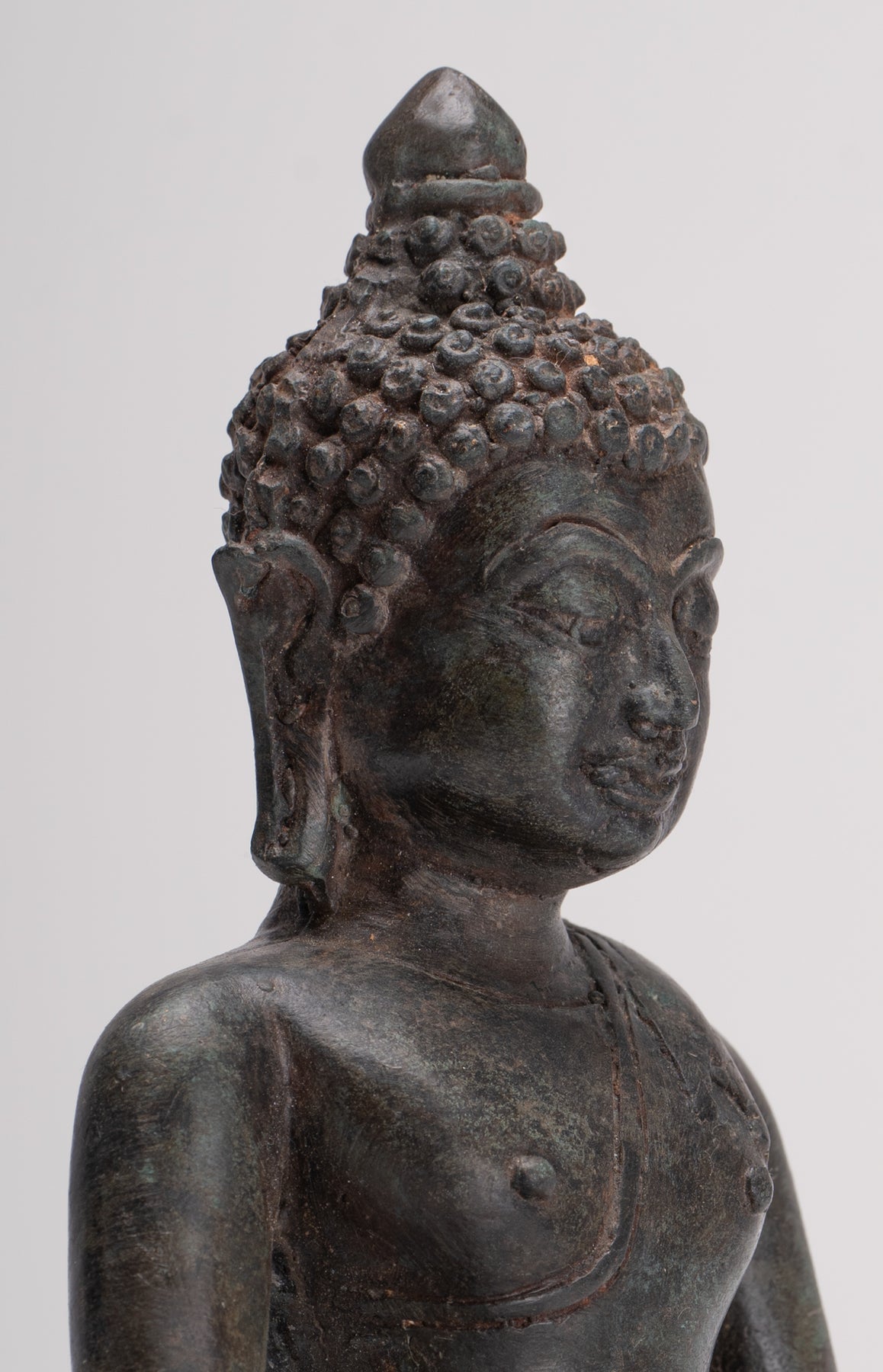 Bronze de style thaï antique Chiang Saen Lumières Statue de Bouddha - 23cm / 9 "