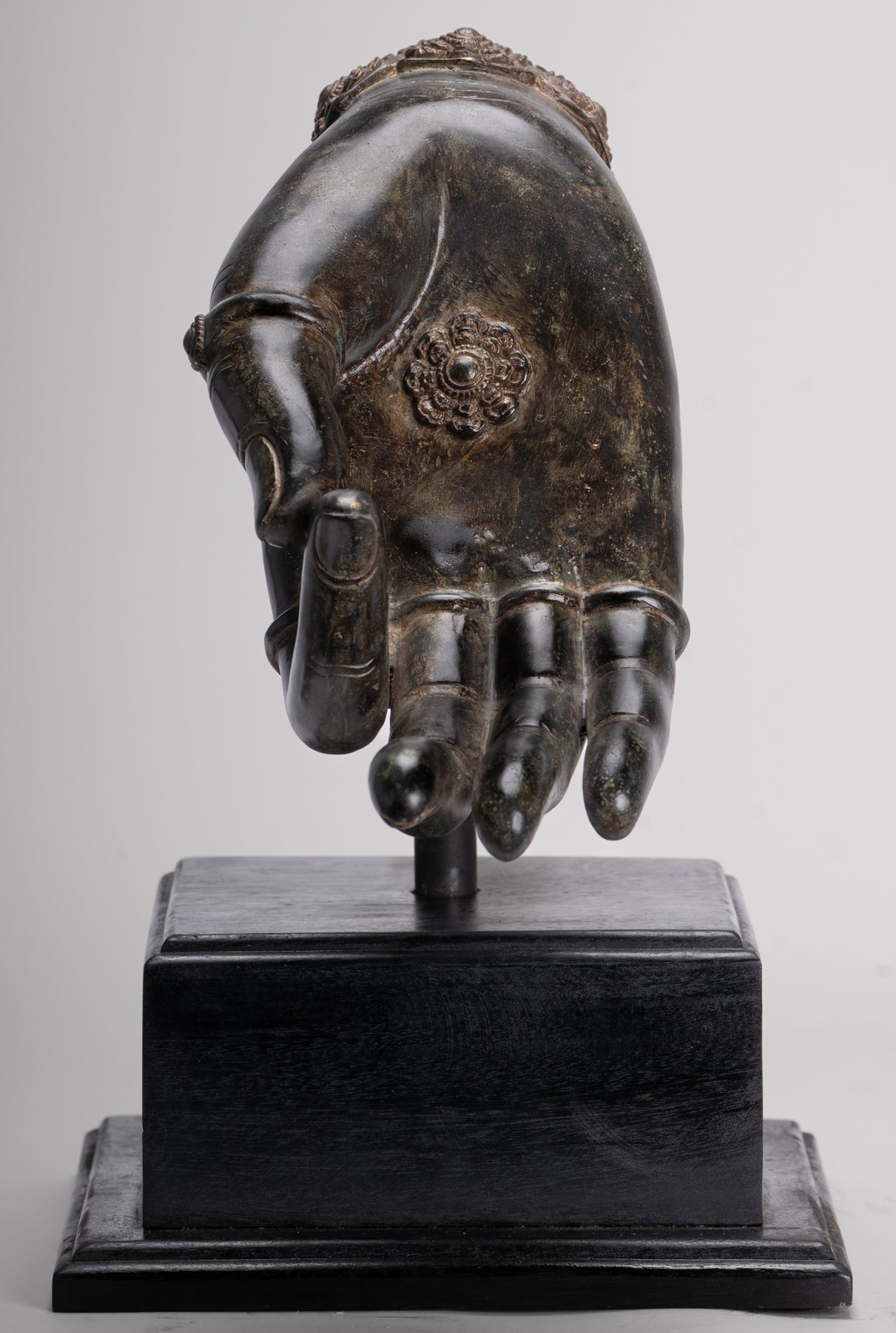 Mounted Antique Khmer Style Southeast Asia Bronze Teaching Hand - 37cm/15"