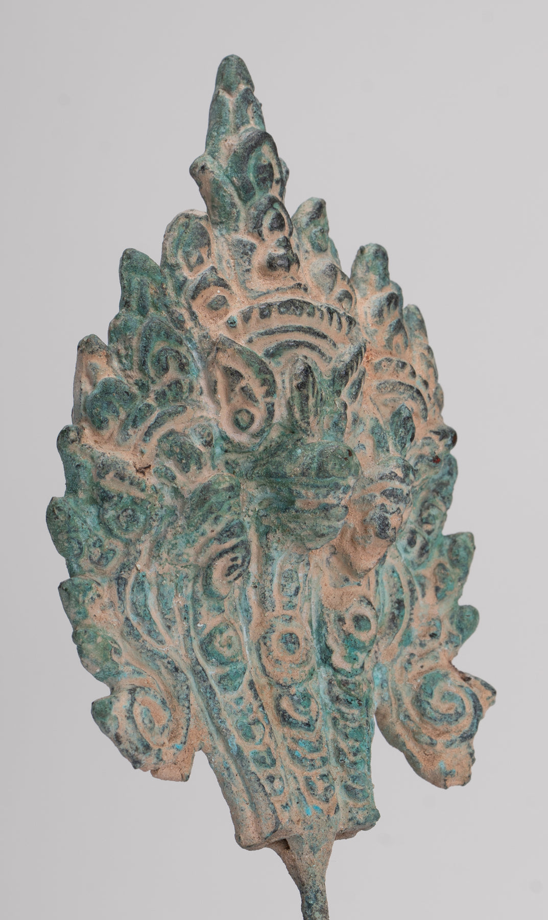 Statue protectrice de Naga, de serpent ou de serpent en bronze antique de style khmer - 15,5 cm/6"