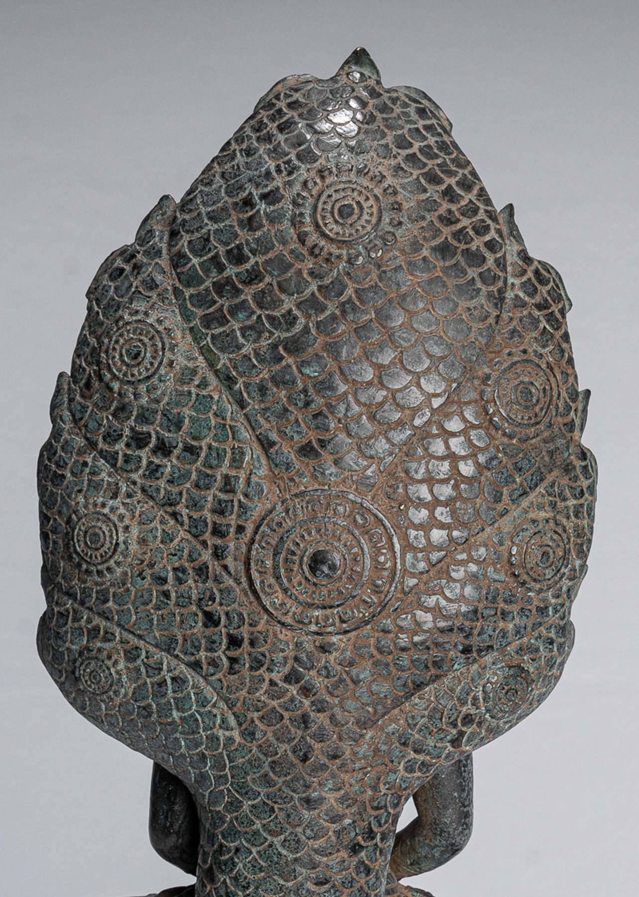 Antique Khmer Style Bronzo Meditazione seduta Meditazione Naga Buddha Statua - 46 cm/18 "