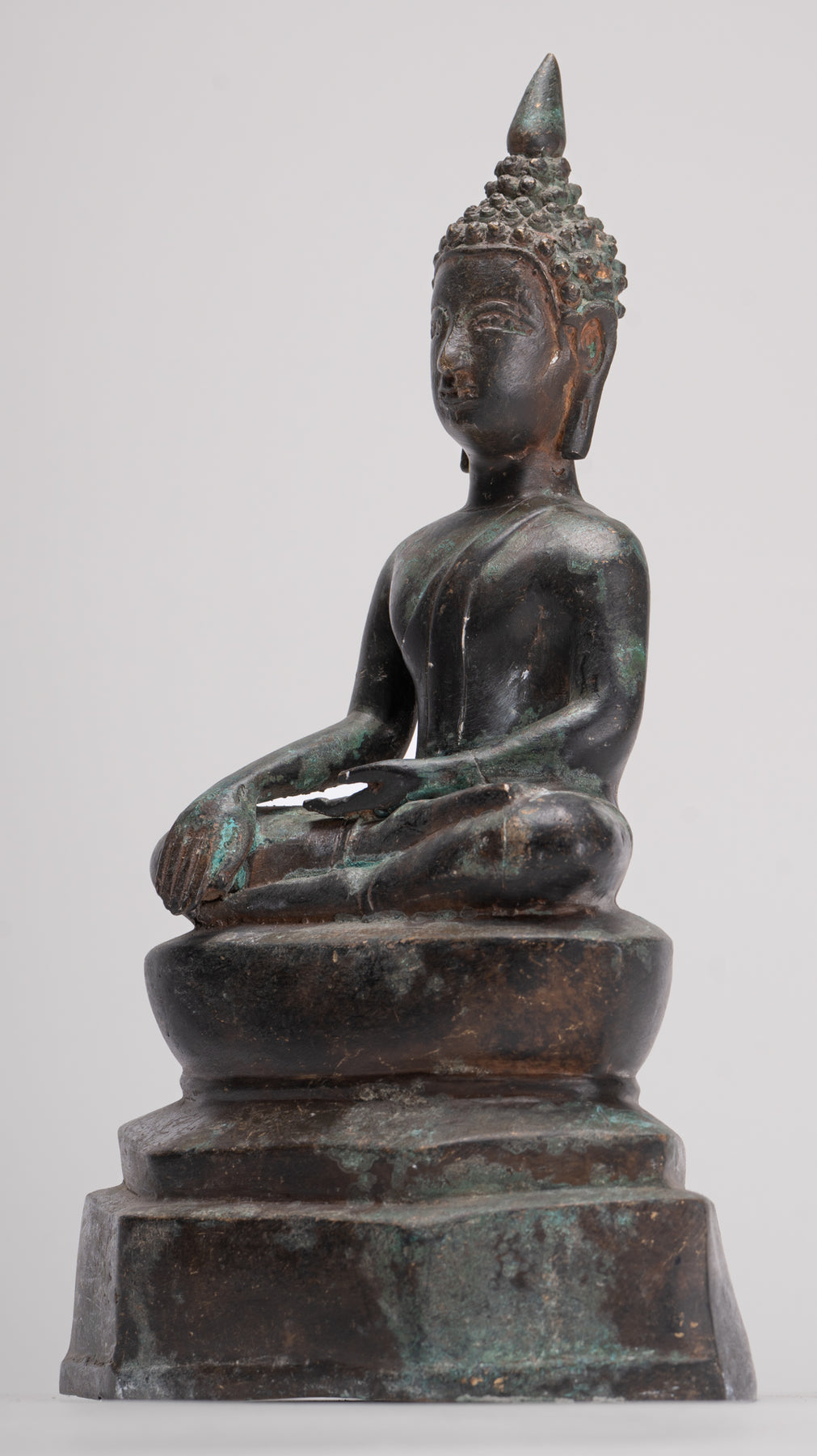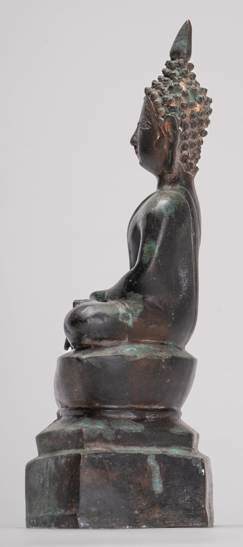Statua di Buddha - Statua di Buddha illuminato in bronzo antico in stile Laos - 29 cm/12"