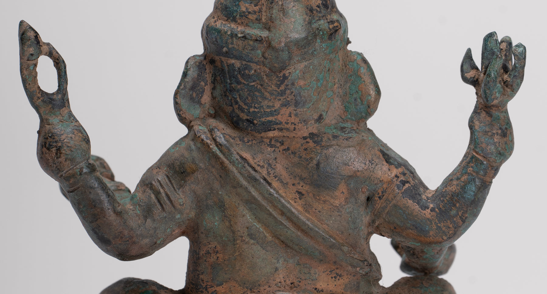 Statua di Ganesha a 4 bracci in bronzo antico in stile tailandese - 12 cm/5"