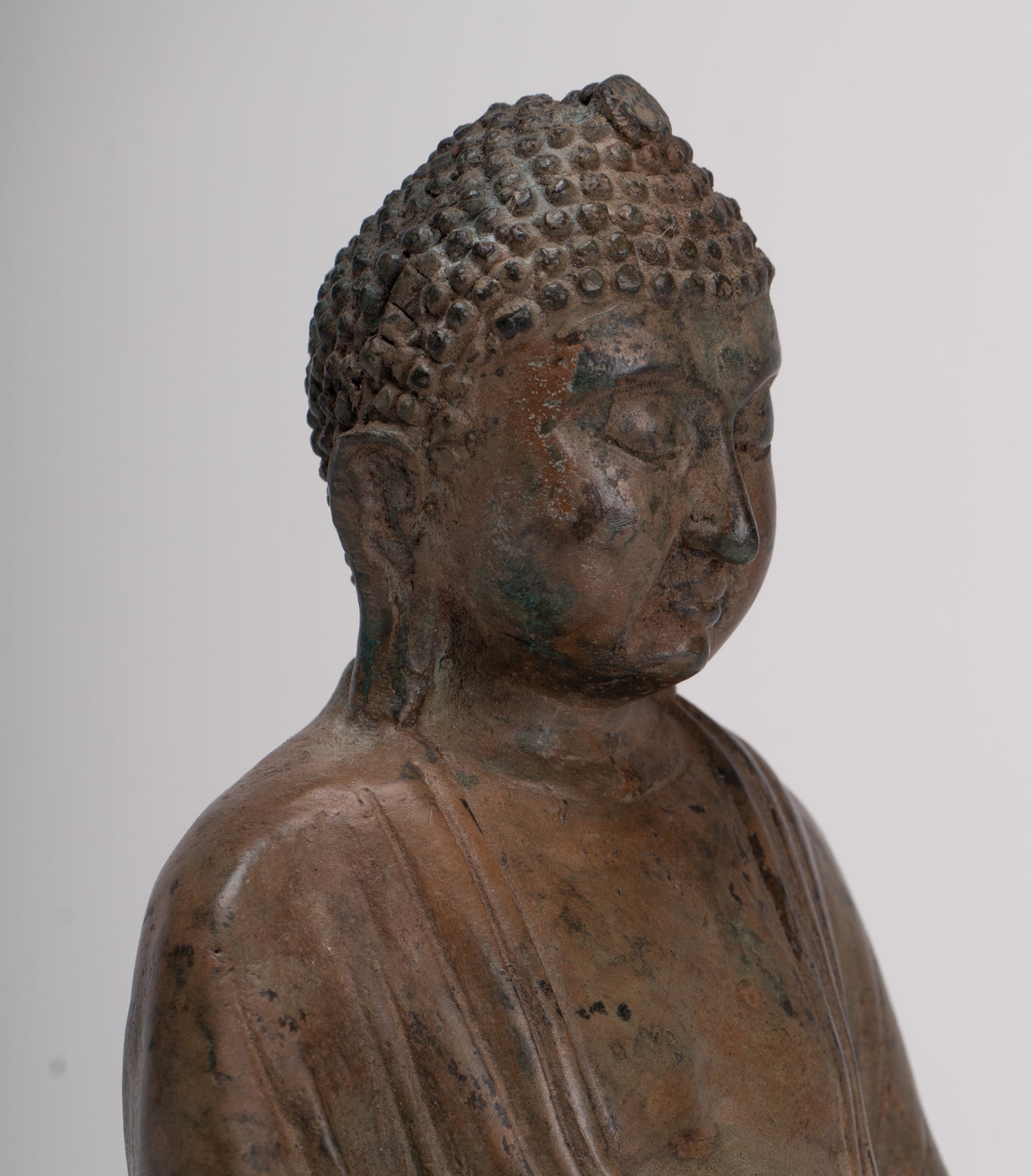La patina e i dettagli di questo pezzo sono particolarmente attraenti. La scultura fornisce il Buddha perfetto per portare serenità e stile senza tempo nella tua casa, ufficio o spazio sacro.