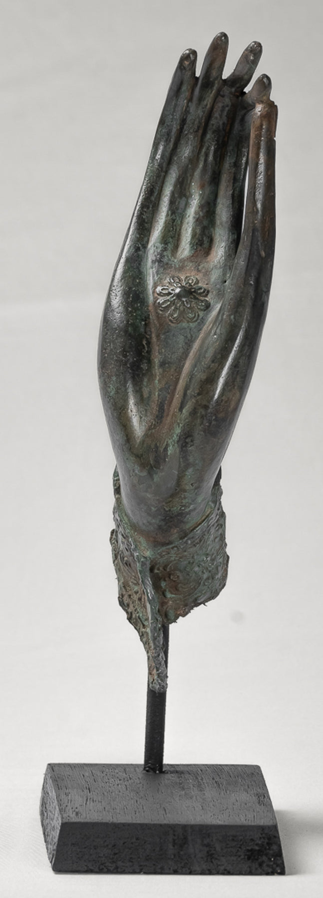 Antique Thai Thai Style Asia Southeast Bronzo Montato Thai Hand - 34 cm/14 "