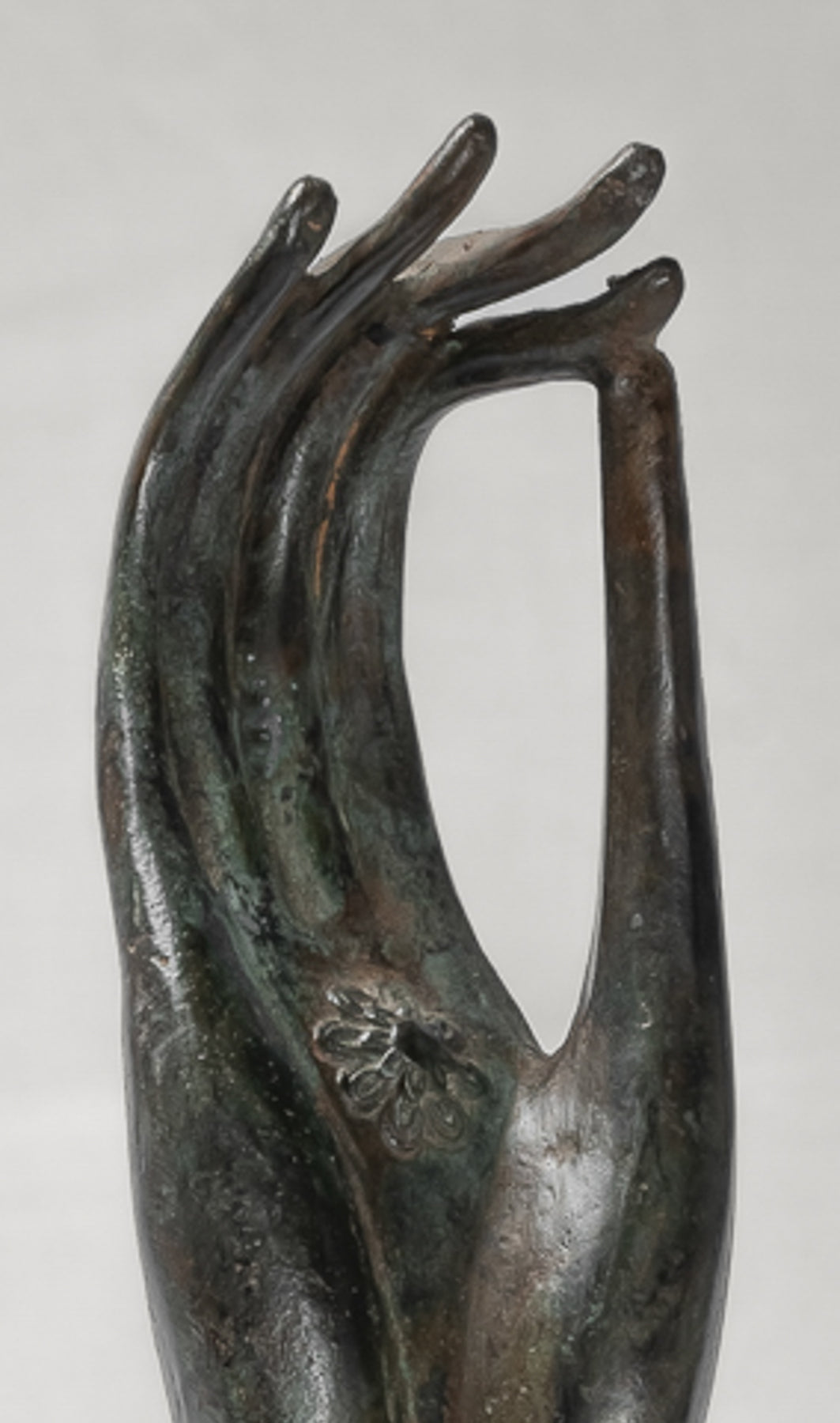 Una mano antica in stile tailandese dalla Thailandia. Le dita sono poste in un gesto di saggezza o insegnamento. Il dito e il pollice si sono tenuti insieme.