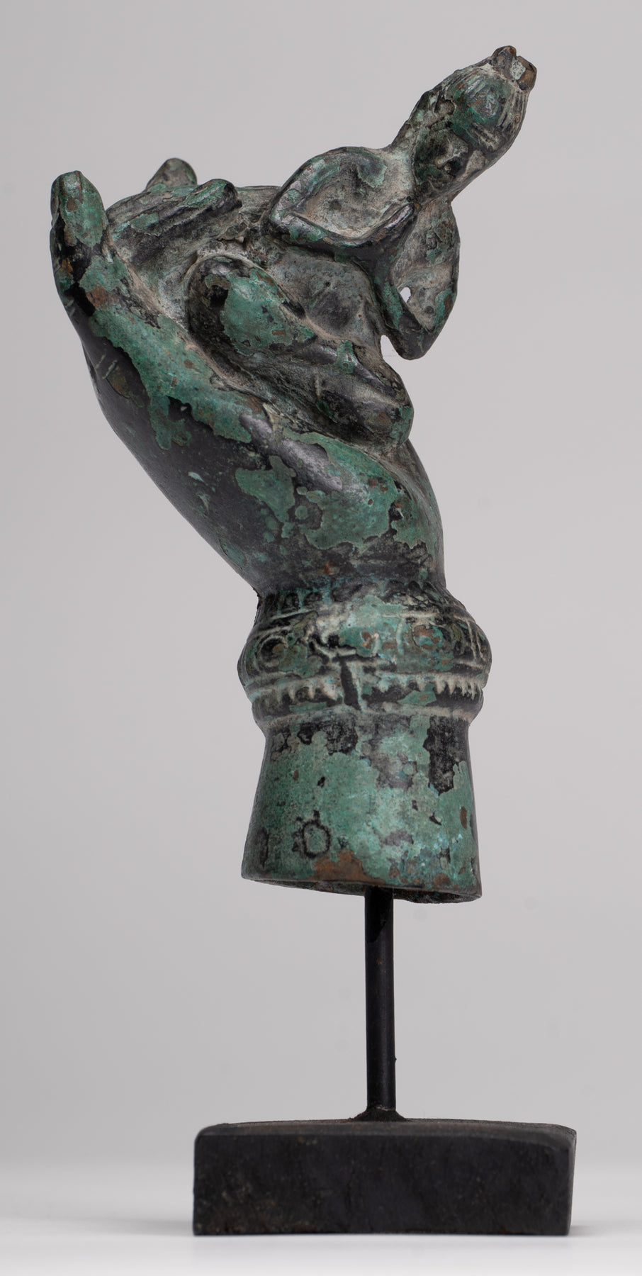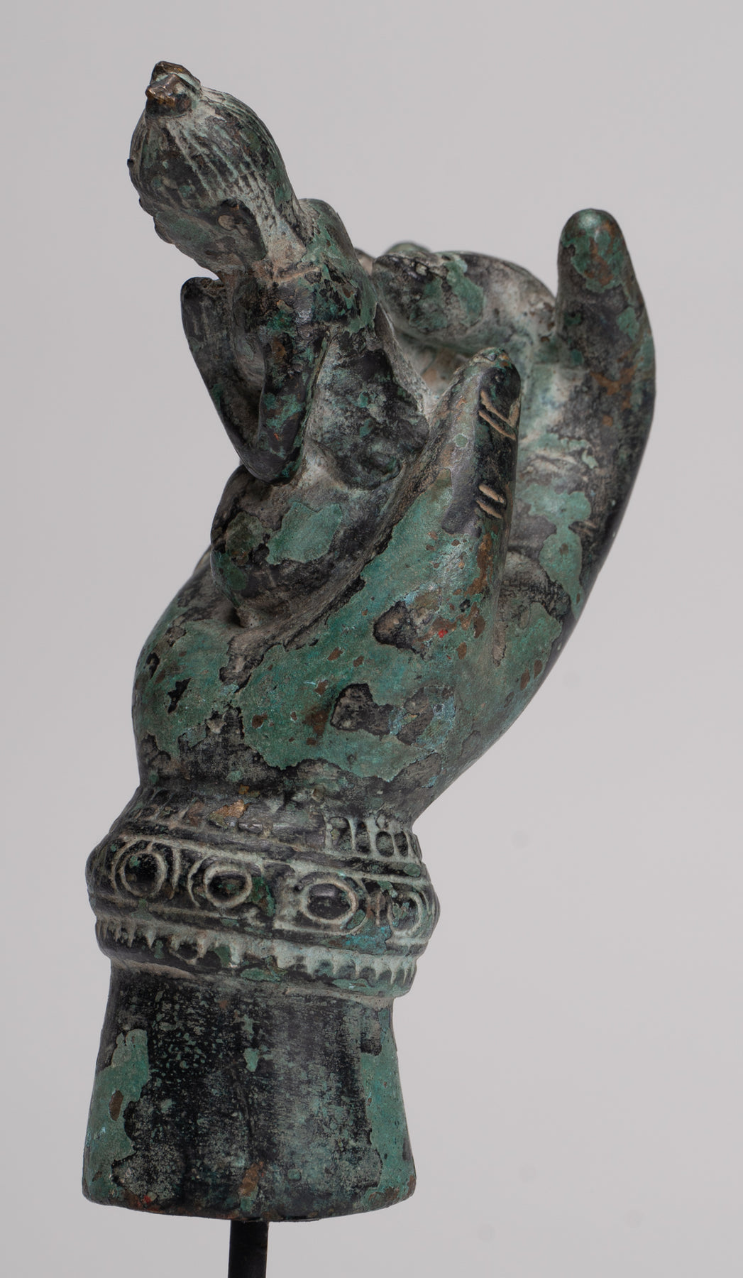 Una figura antica in stile khmer di Rishi, un uomo saggio, dalla Cambogia.Nel vasto arazzo della spiritualità indù, la figura del Rishi tiene un luogo di profondo significato. Questi saggi, veggenti e saggi svolgono un ruolo cruciale nel preservare e diffondere la conoscenza antica, incarnando la saggezza che forma il fondamento della filosofia indù.