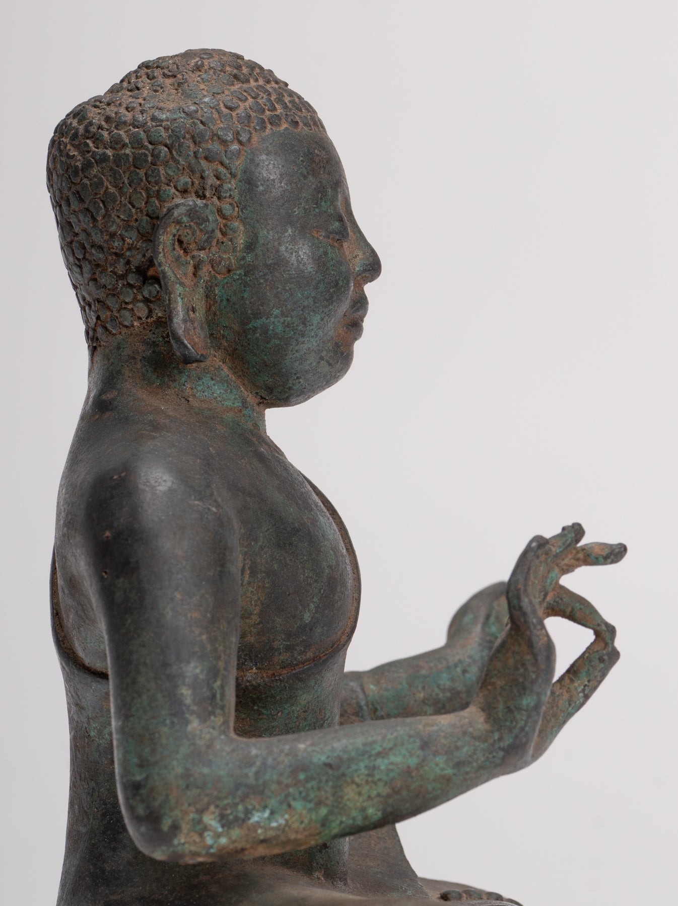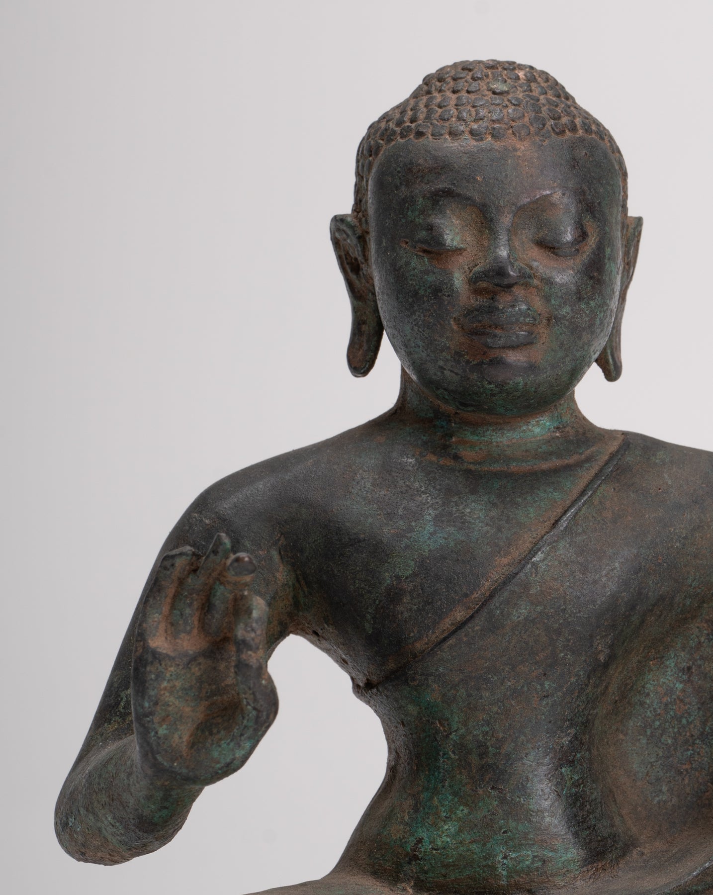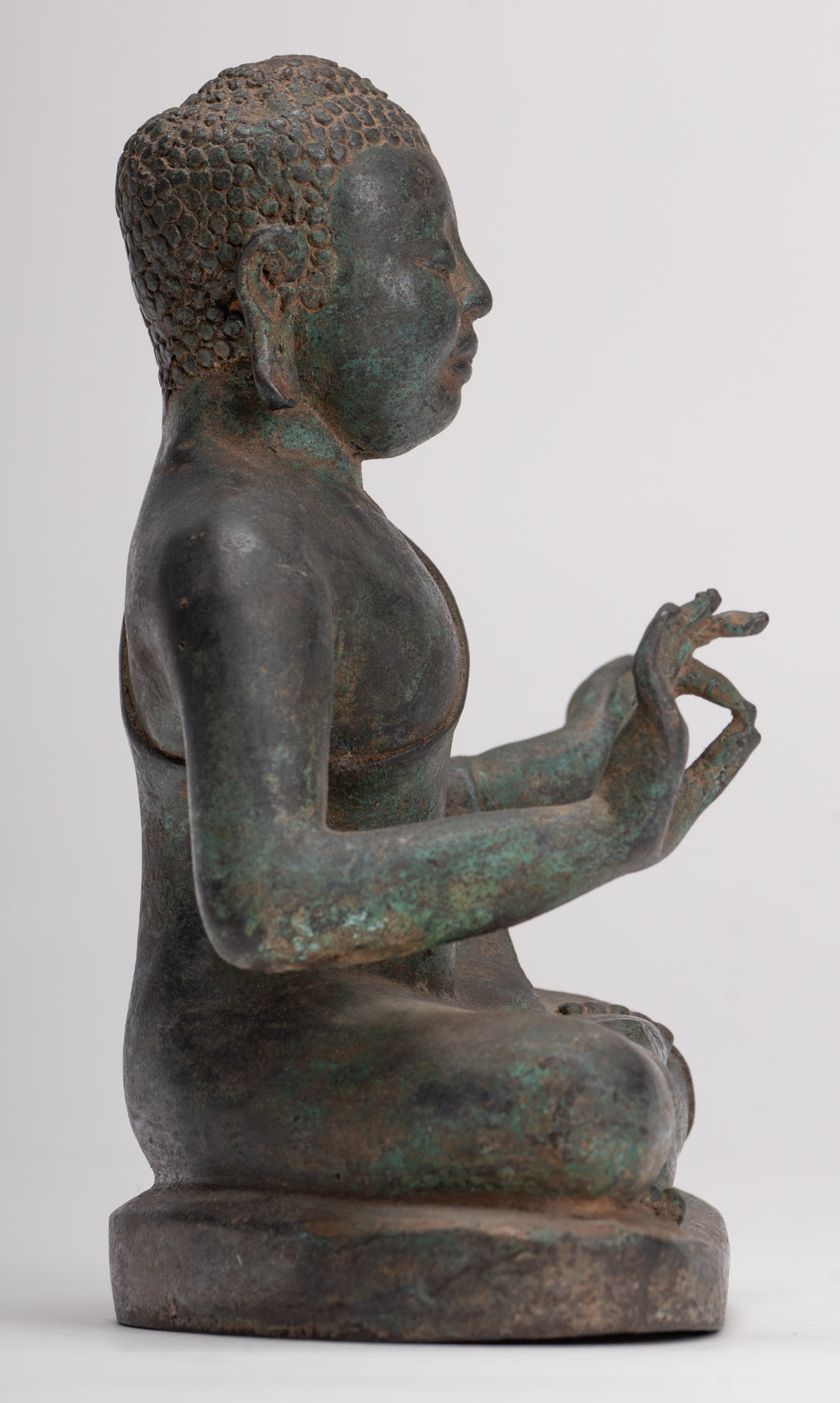 Buddha Statue - Antique Sri Lanka Style Seated Bronze Teaching Buddha Statue - 16cm/6"