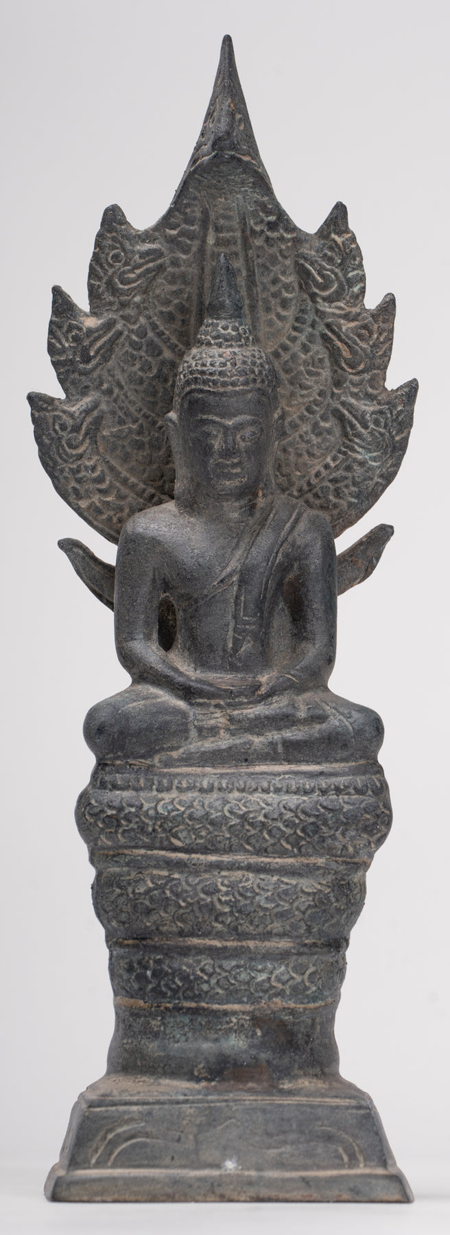 Statua antica di Buddha Naga in meditazione in bronzo in stile Sukhothai - 21 cm/8"
