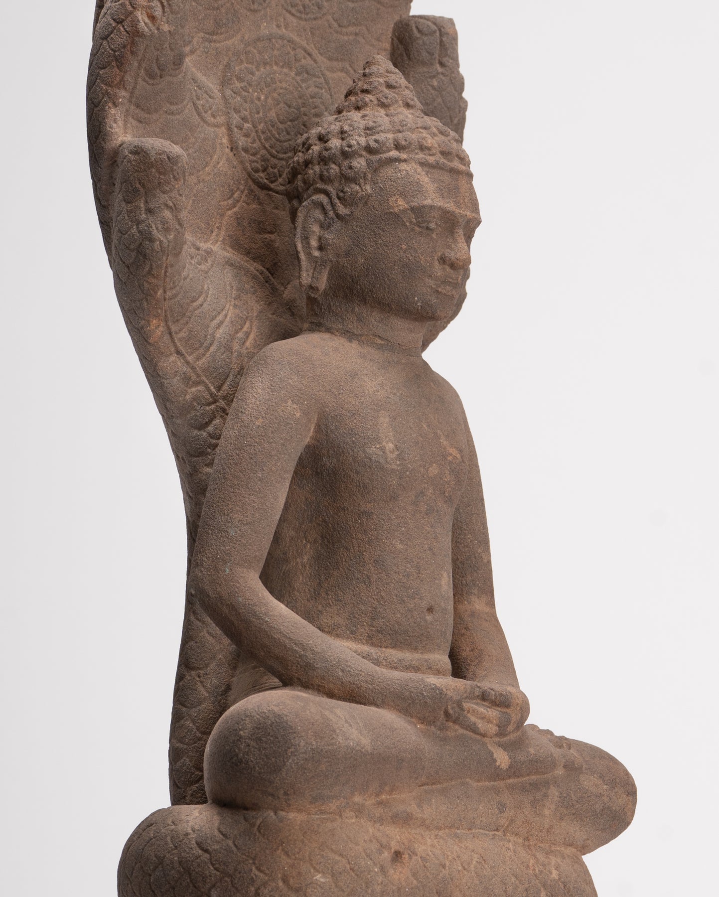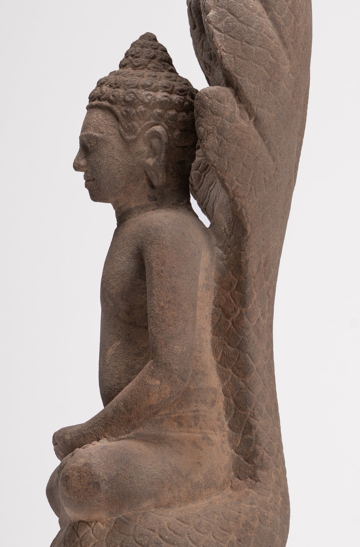 • Buddha da meditazione Naga in pietra tailandese antico in stile Dvaravati - 58 cm/23"