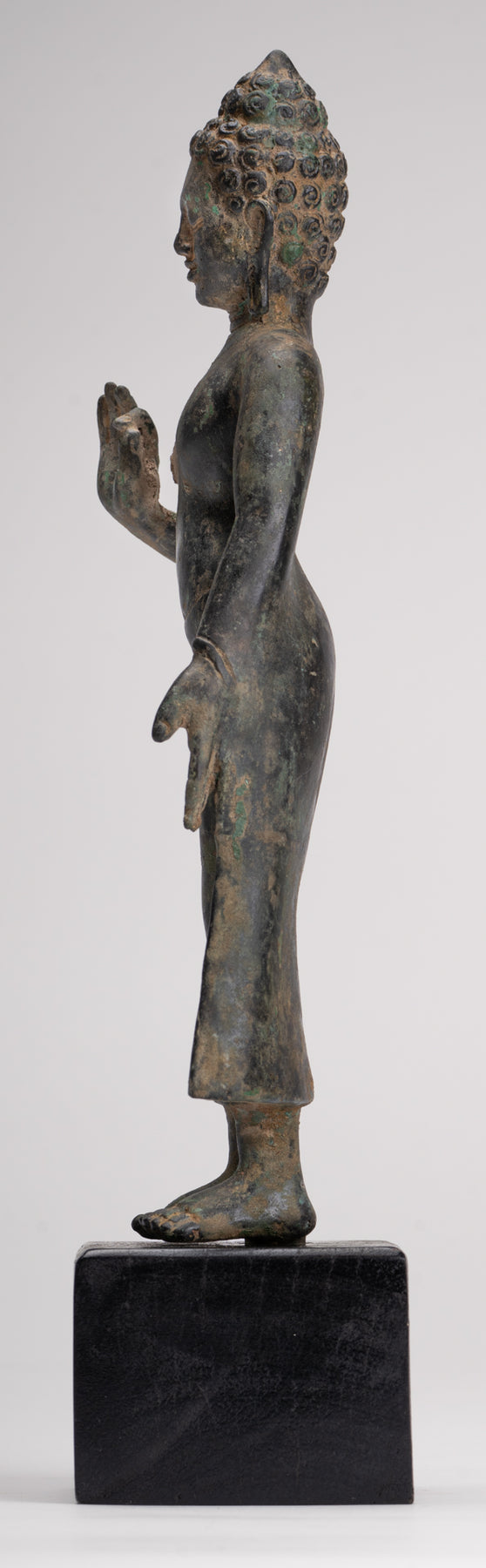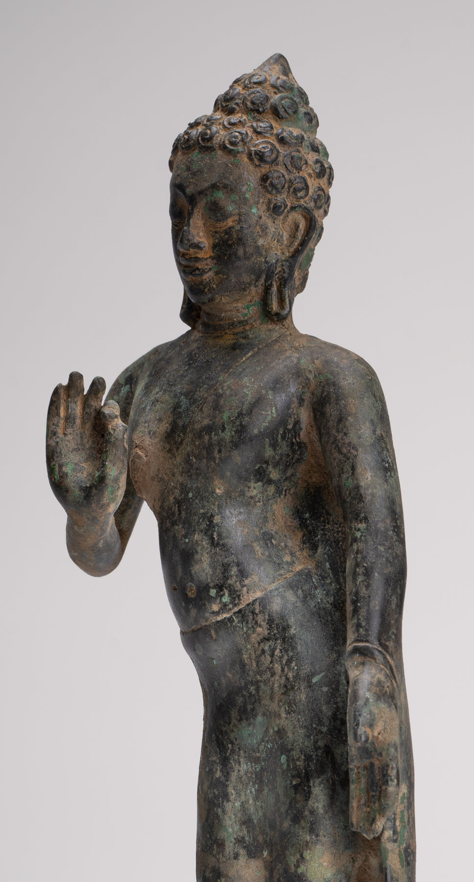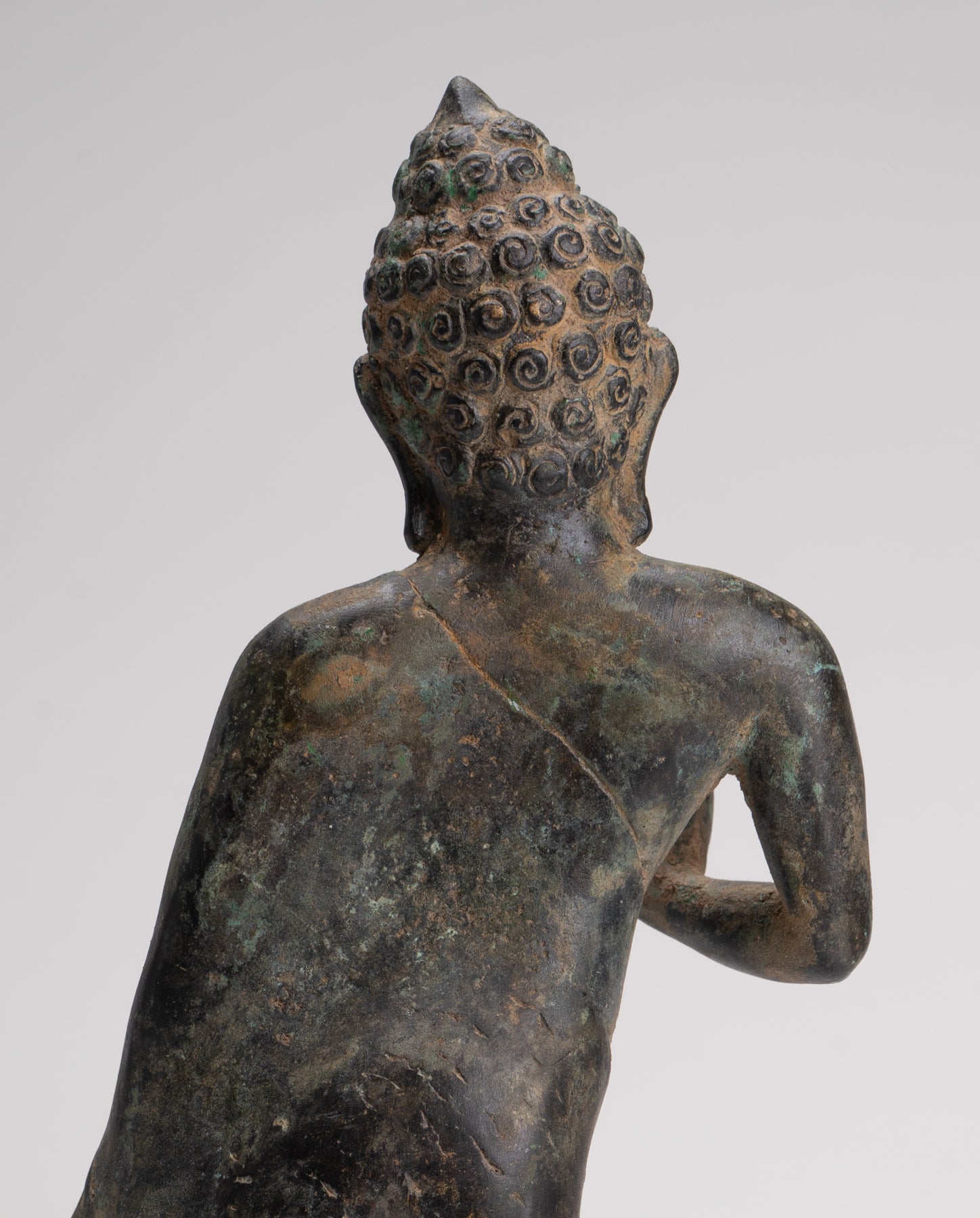 Statua di Buddha - Statua di Buddha in bronzo antico in stile tailandese Mon Dvaravati che insegna - 32 cm/13"