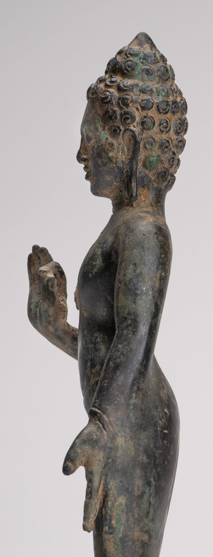 Un antico Mon Dvaravati in bronzo in stile tailandese, Buddha didattico in stile VIII secolo.