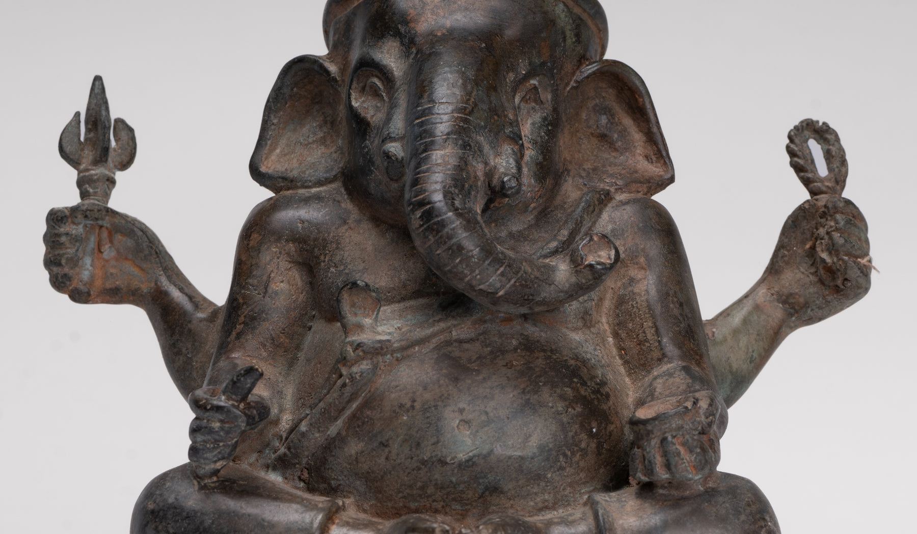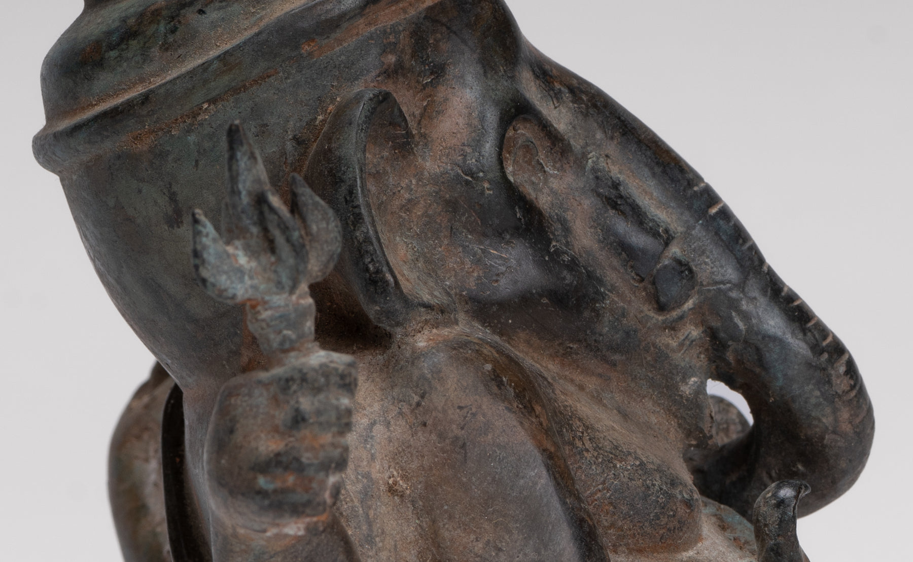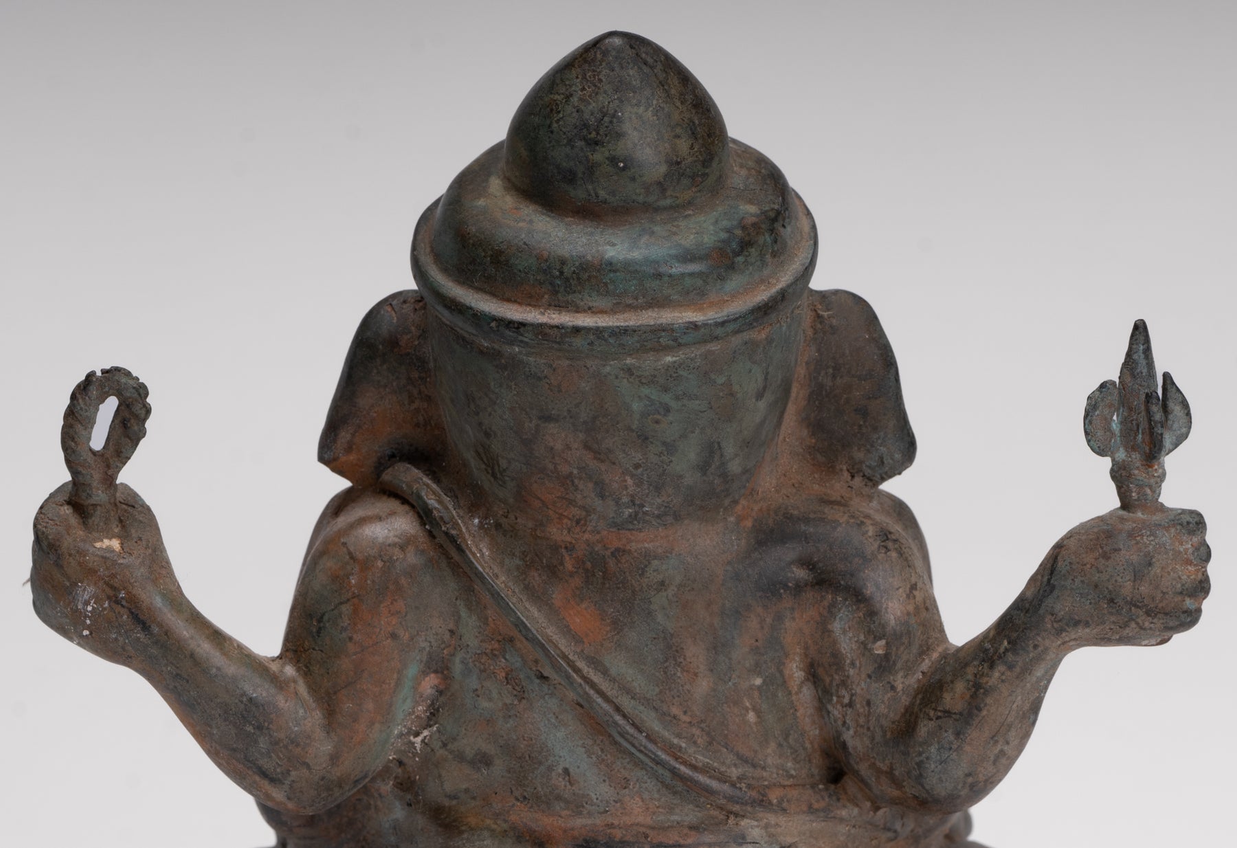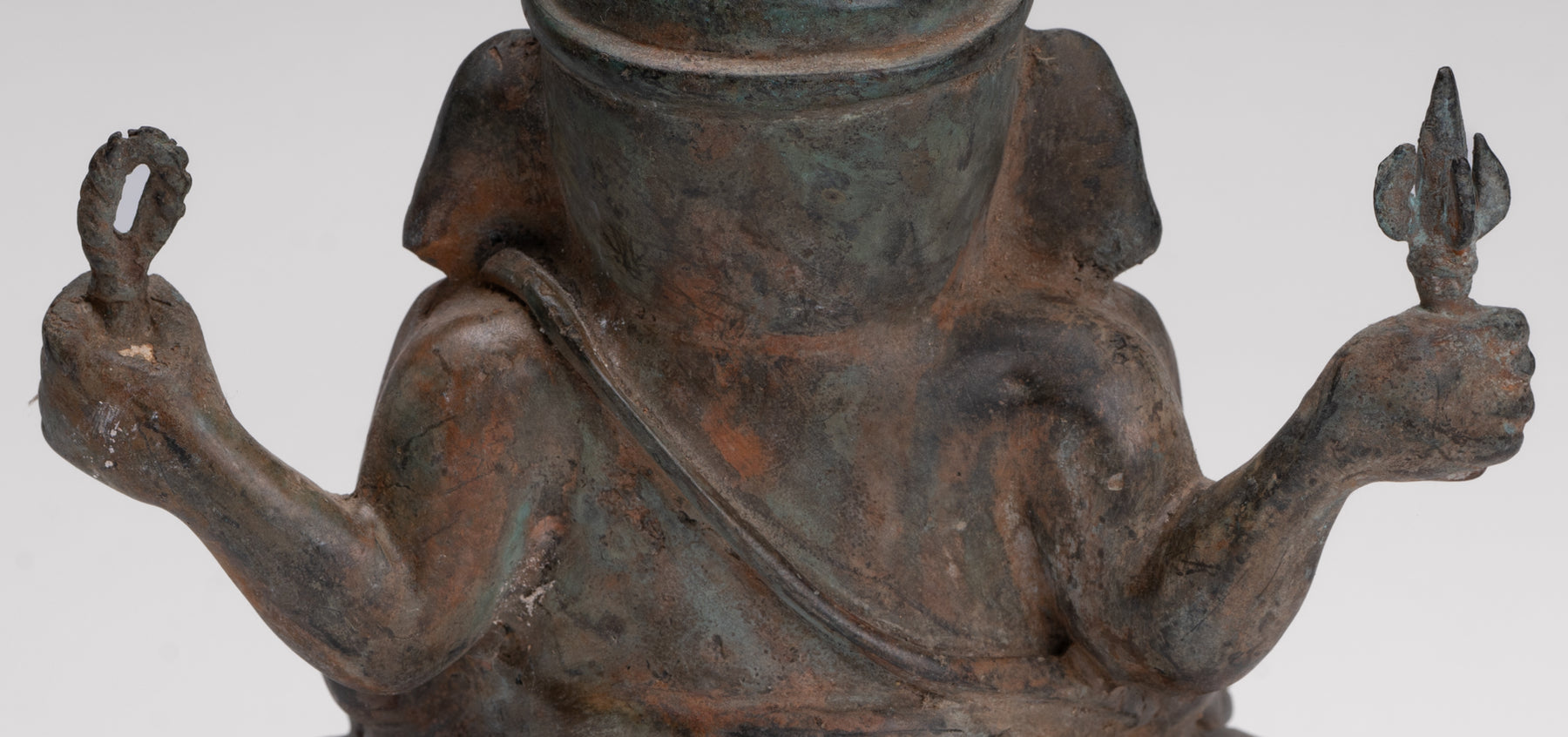 Un cast espressivo Ganesha a 4 bracci in bronzo antico in stile tailandese.