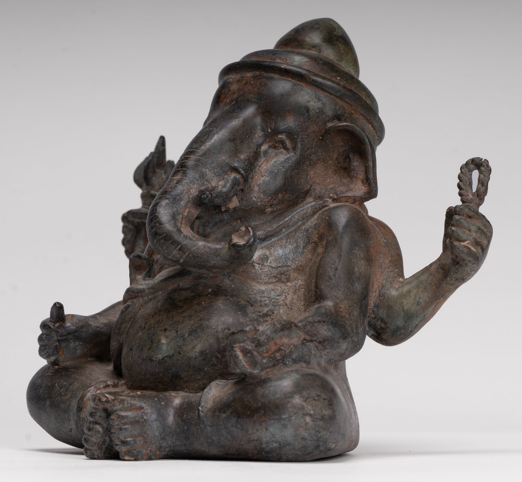 Statua di Ganesha a 4 bracci in bronzo antico in stile tailandese - 18 cm/7"