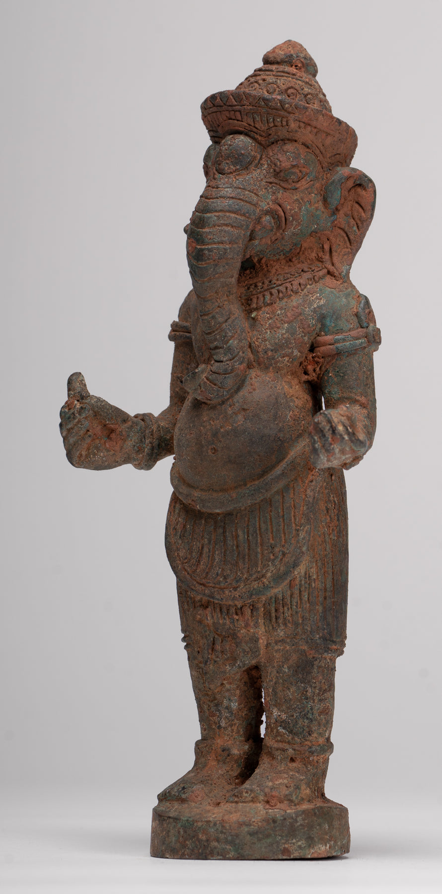 Un antico Ganesha in bronzo in stile tailandese. Tiene la zanna rotta in una mano.