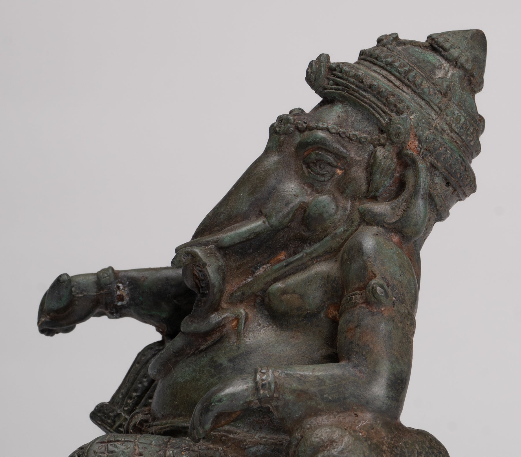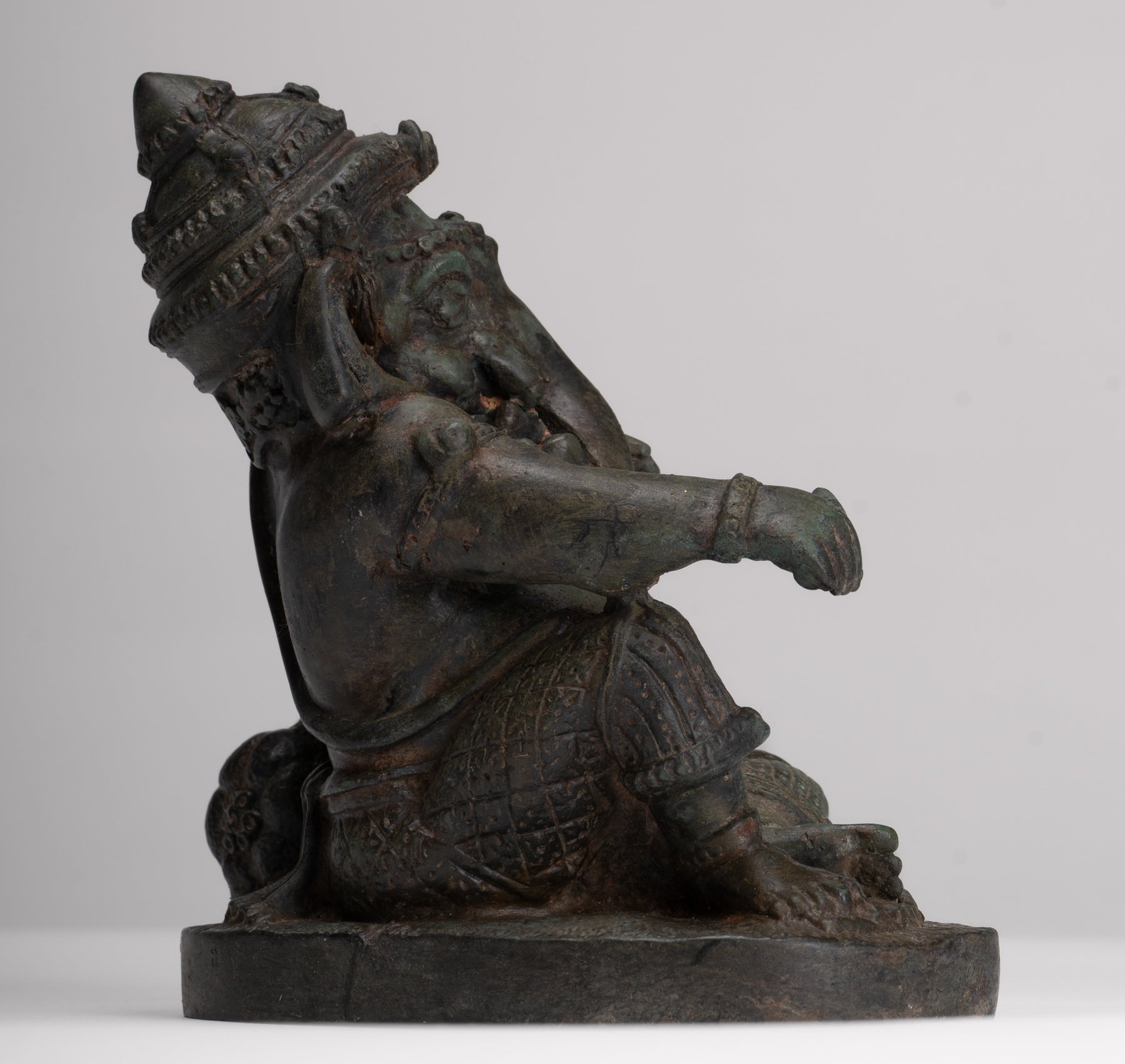 Un Ganesha reclinabile in bronzo antico in stile tailandese.