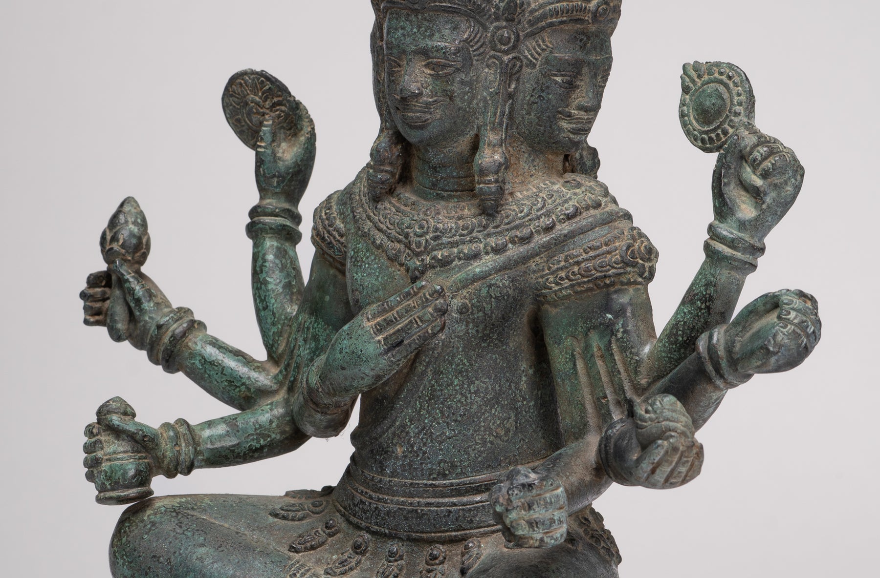 Antiker 8-armiger Bayon Brahma aus Bronze im Khmer-Stil – Schöpfung eines Hindu-Gottes – 76 cm/30 Zoll