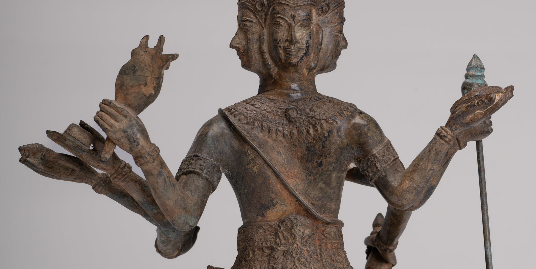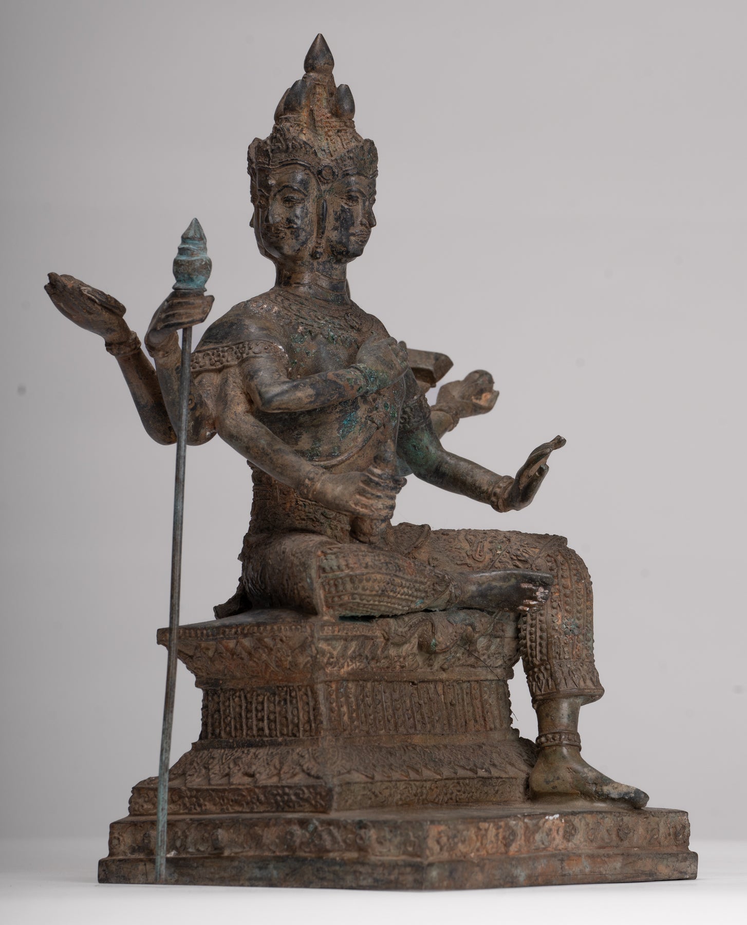 Brahma Statue - Antique Thai Style Bronze Brahma - Hindu God Creation - 27cm/11"