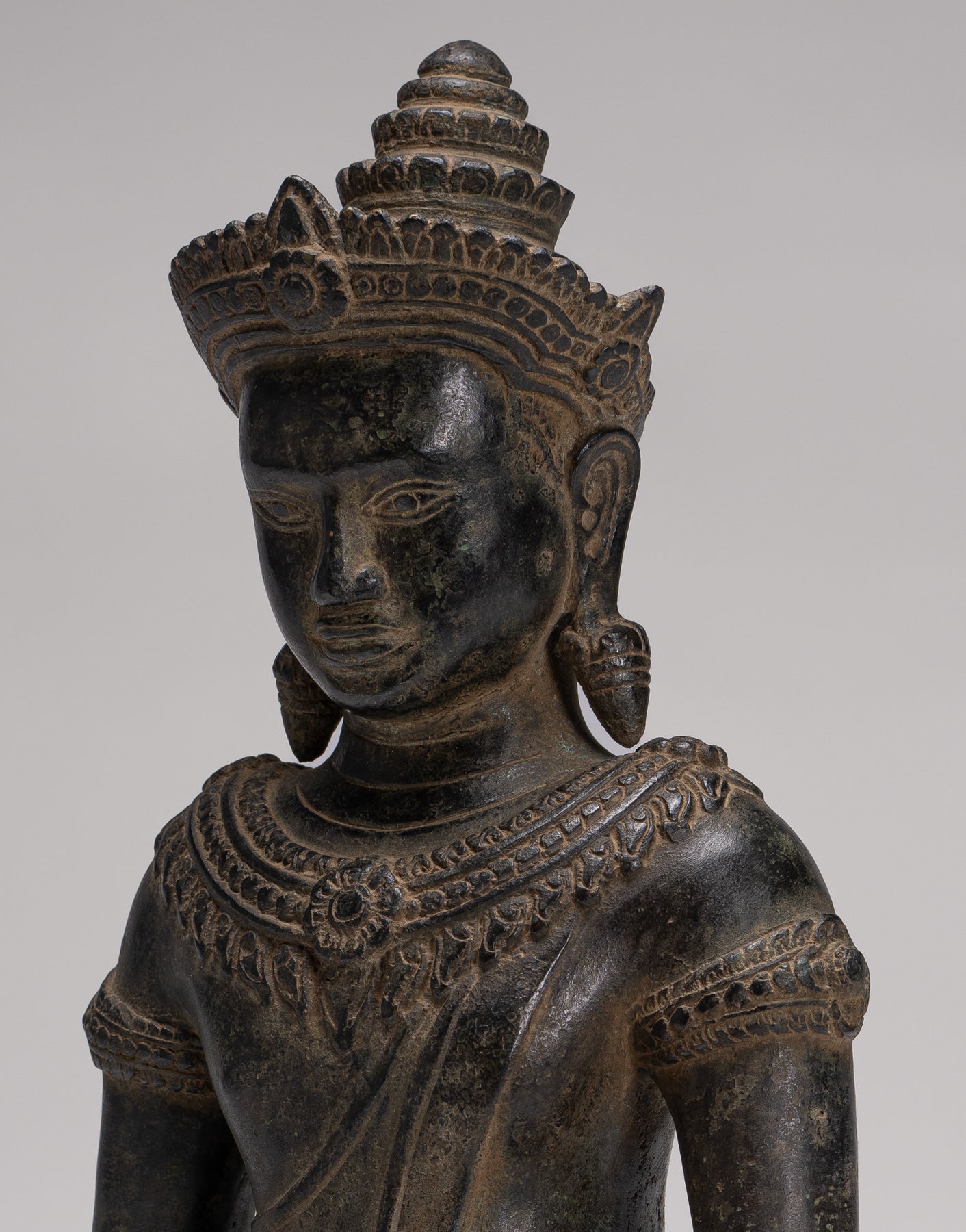 Buddha-Statue – Erleuchtungs-Bayon-Buddha-Statue aus Bronze im antiken Khmer-Stil – 37 cm
