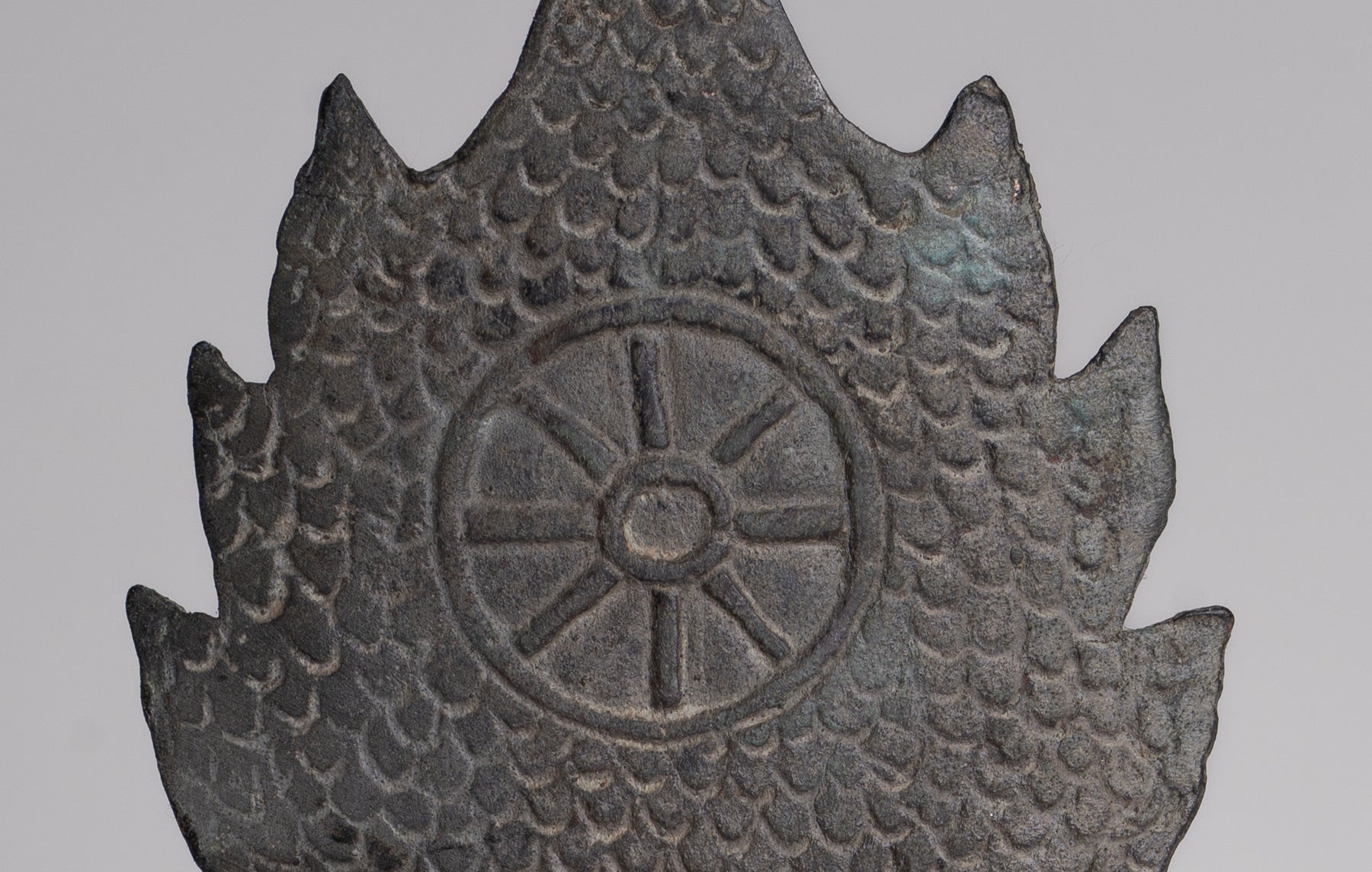 Auf der Rückseite der Kapuze der Naga, eine fein gravierte Mandala symbolisiert das Universum – Ordnung im Chaos, die kosmische Harmonie, die von der Erleuchtung ausgeht.