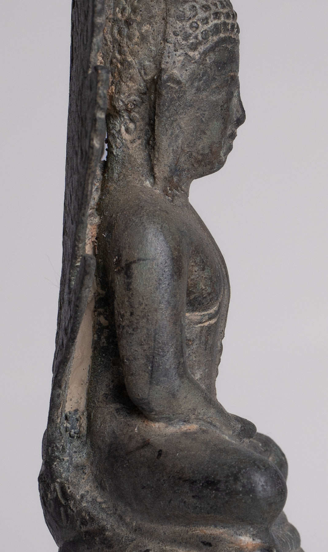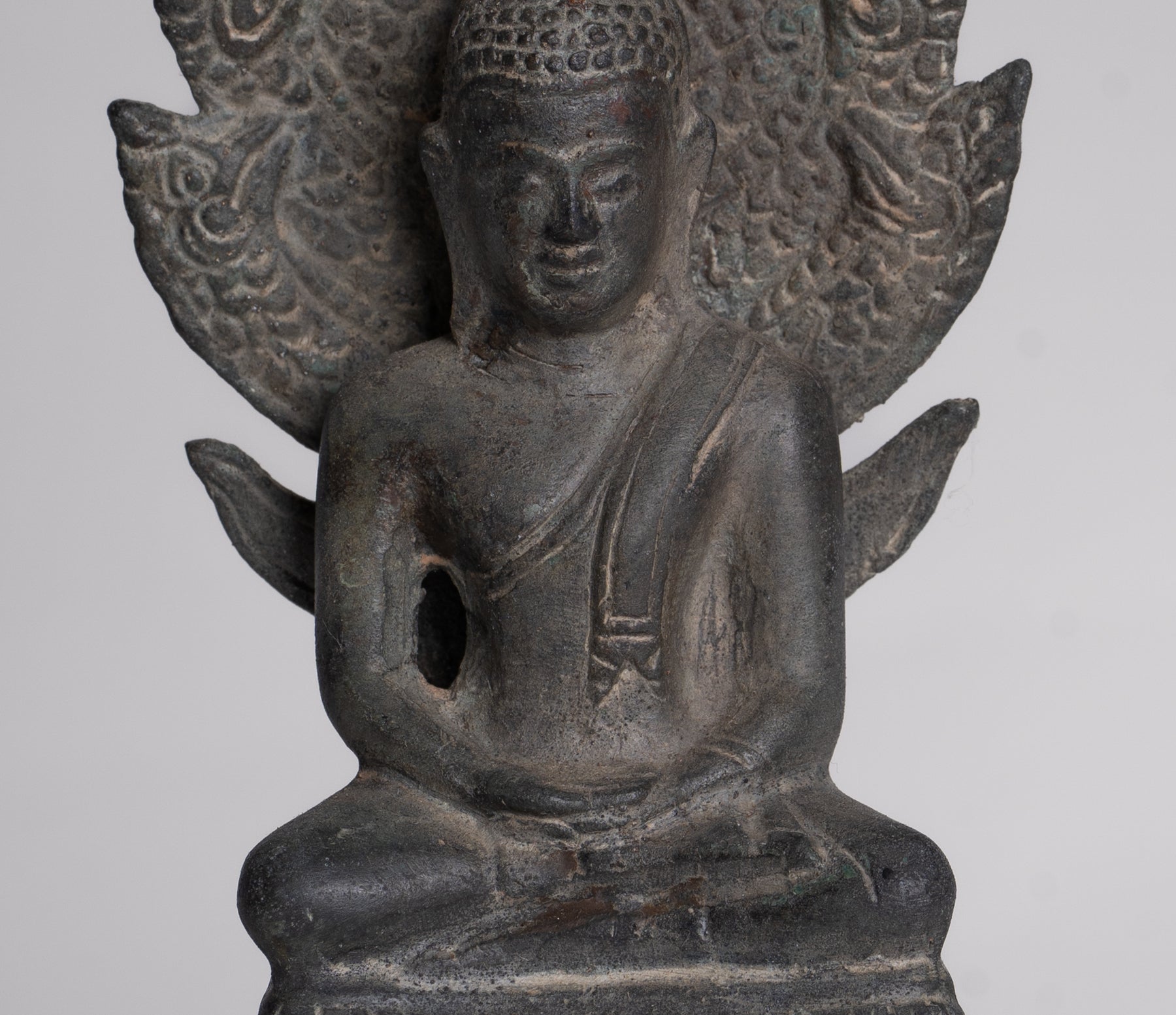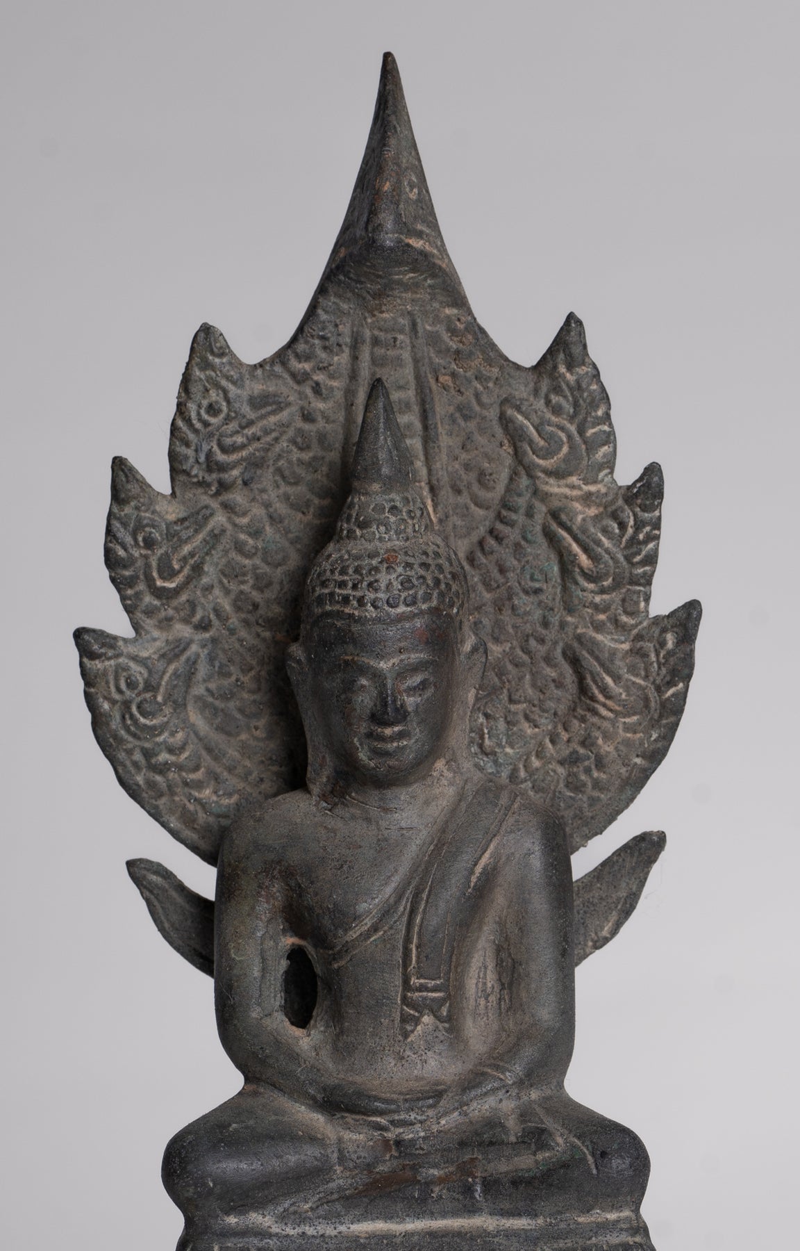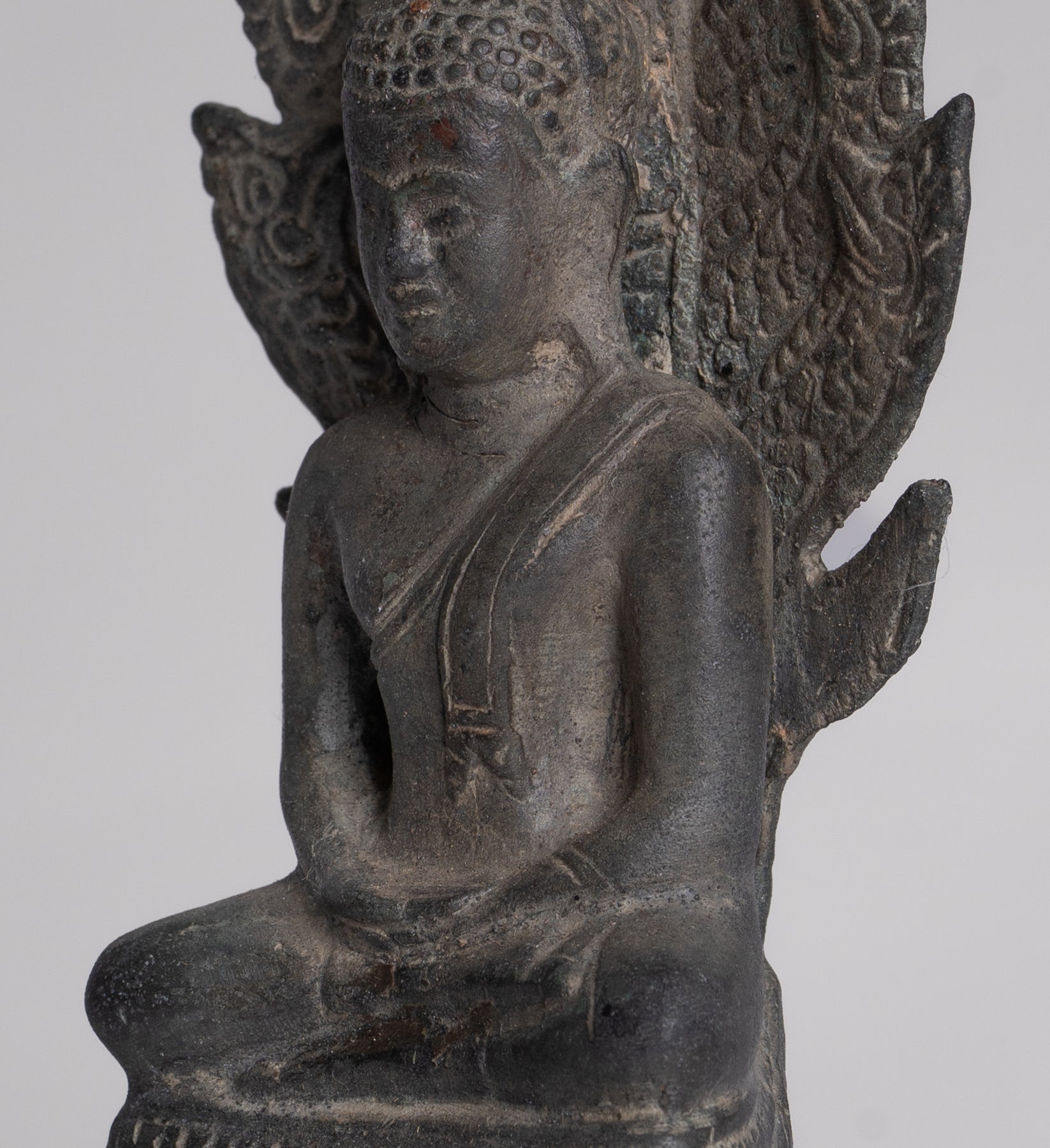 Buddha-Statue – Antike meditierende Naga-Buddha-Statue aus Bronze im Sukhothai-Stil – 21 cm