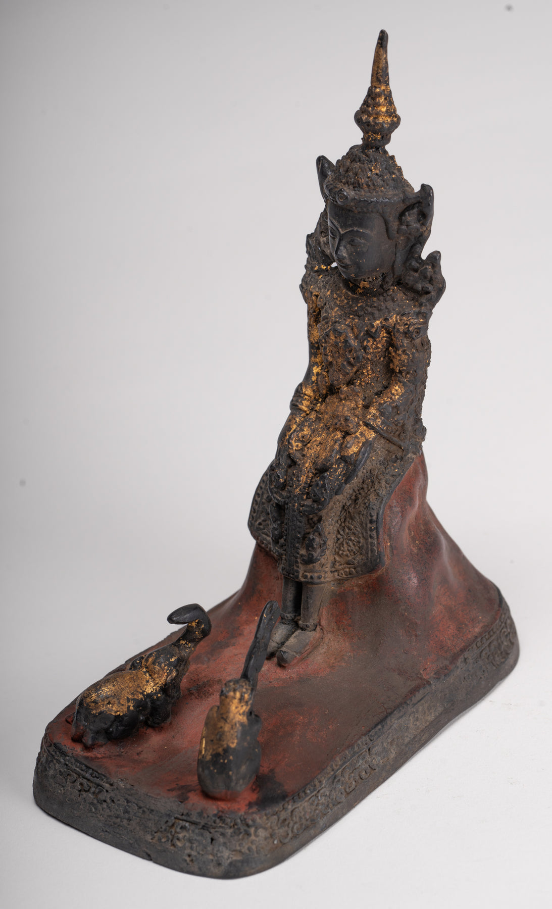 Eine der einzigartigen Merkmale des Mittwochabends Buddha im Buddhismus ist die Geschichte von a Affe und an Elefant dem Buddha Geschenke anbieten. Diese Geschichte wird oft in Tempelkunst und Bildern dargestellt, die mit dieser besonderen Form des Buddha verbunden sind. Während es viele Variationen dieser Geschichte gibt, bleiben die Grundelemente konsistent: Ein Affe und ein Elefant, wie hier zu sehen ist, präsentiert jeden ein Geschenk an den Buddha als Zeichen der Ehrfurcht und Dankbarkeit.